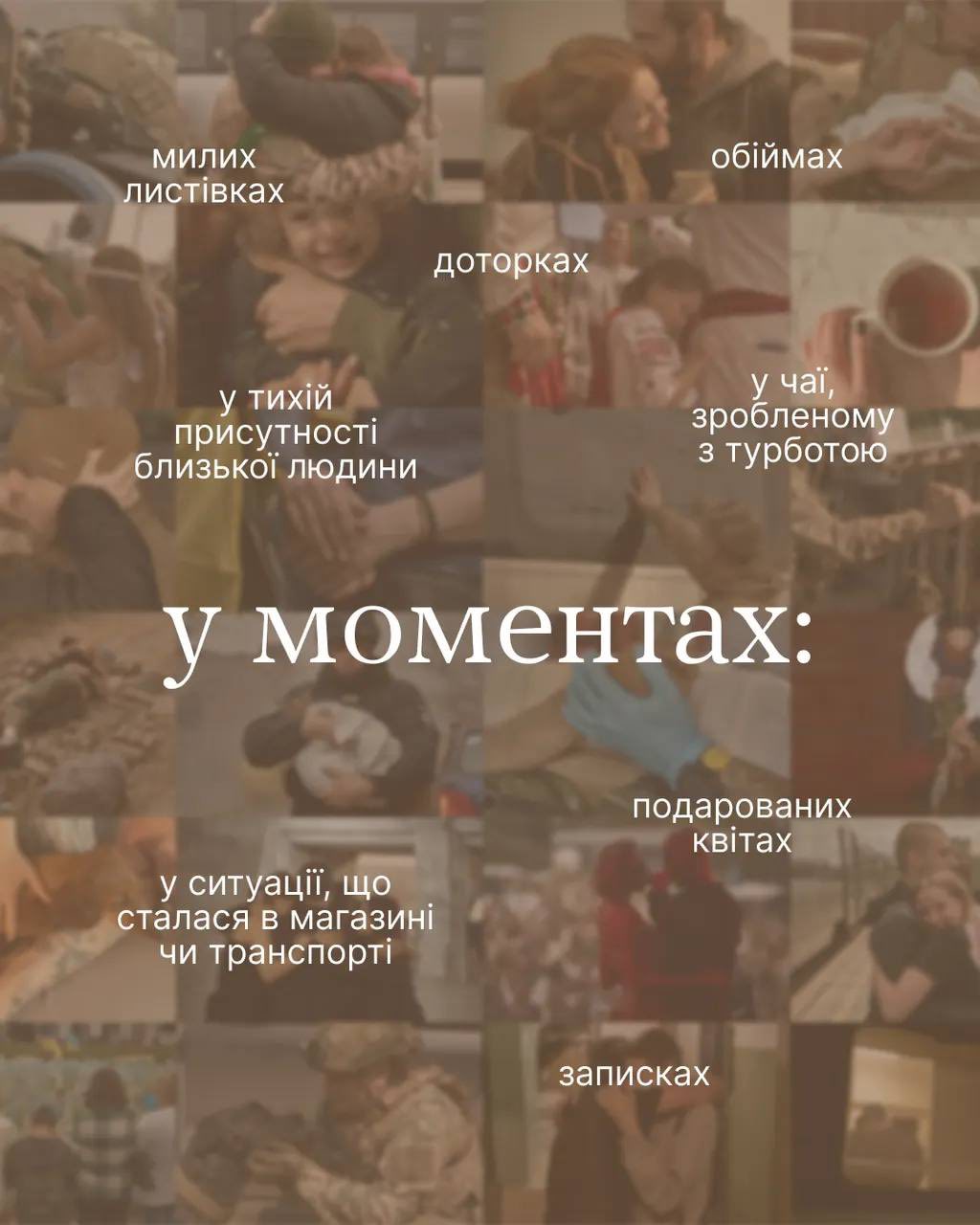 Вони у твоїх руках. Покажи іншим, що ти бачиш турботу в моментах. А ми покажемо їх і іншим, а інші — ще іншим… Щоб простягнути руки підтримки тим, кому вона потрібна зараз.