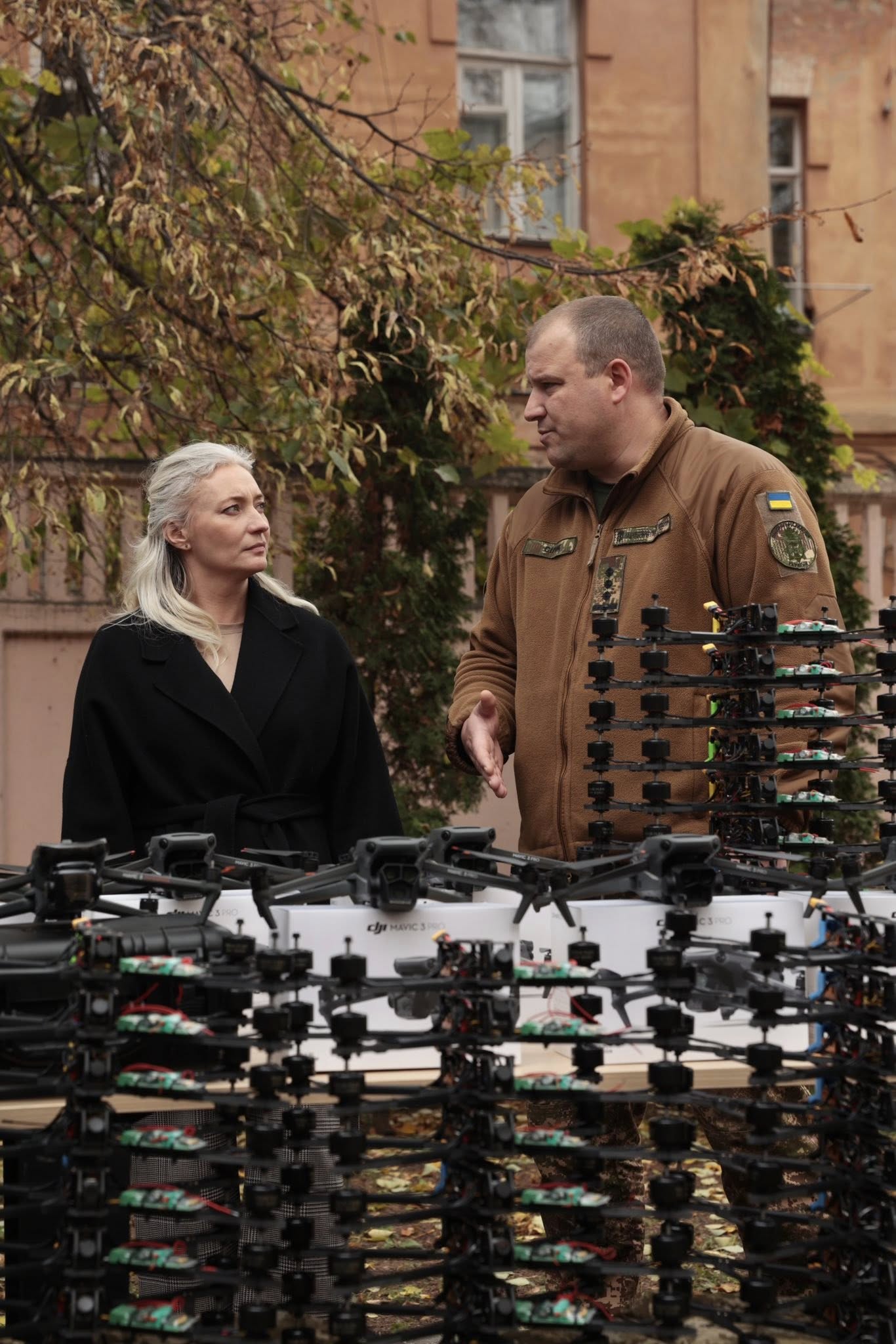Як повідомила Перша заступниця начальника ОВА Наталя Заболотна, воїнам 40-го полку Національної гвардії України передали безпілотники FPV 10, DJI Mavic 3 Thermal, DJI Mavic 3 Pro, а також антитепловізійні плащі.