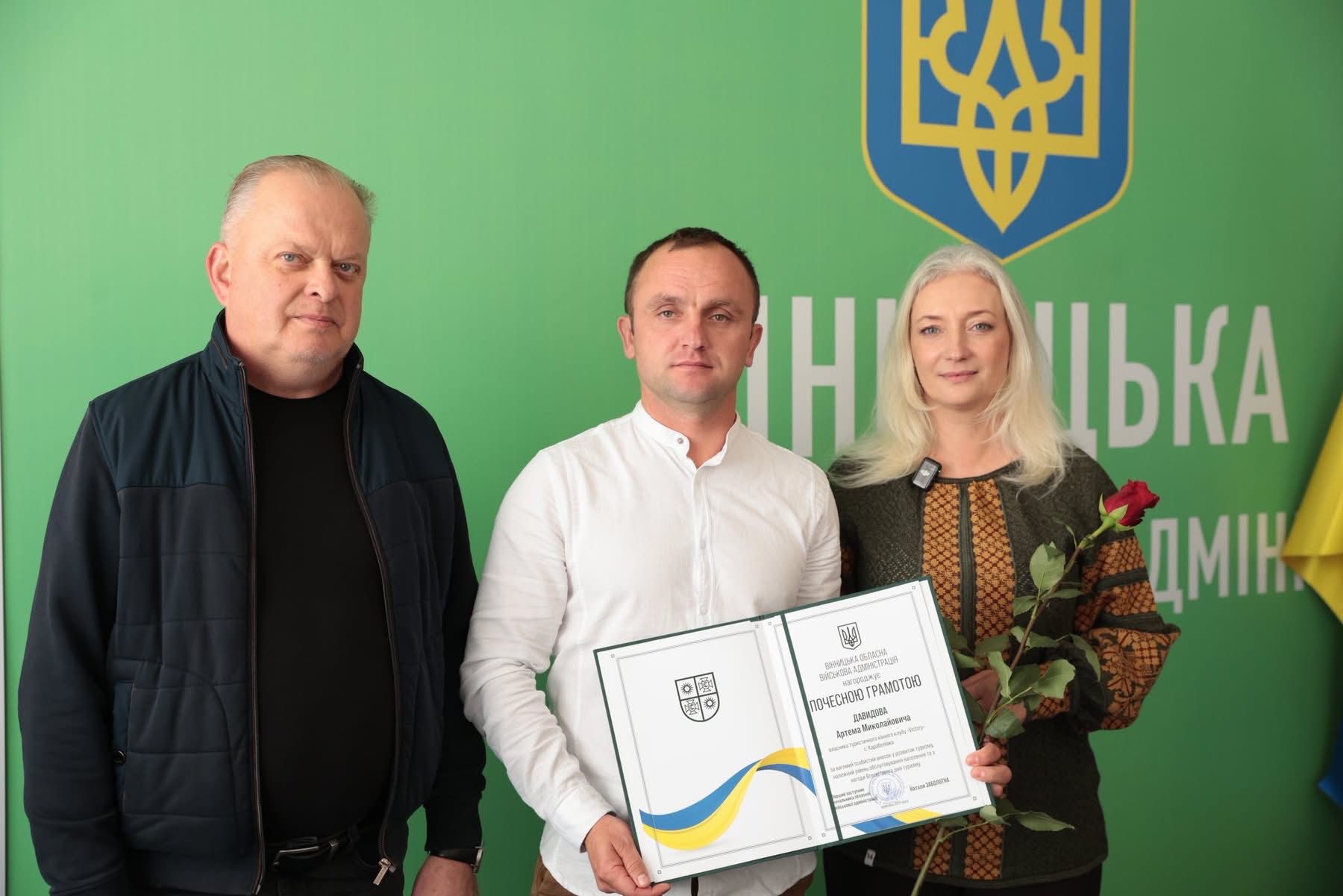 Перша заступниця начальника ОВА Наталя Заболотна та заступник начальника ОВА Сергій Здітовецький вручили Почесні грамоти обласної військової адміністрації кращим фахівцям у сфері туризму.