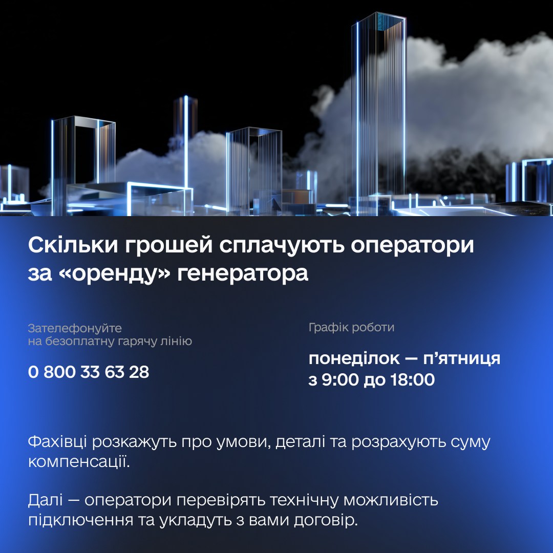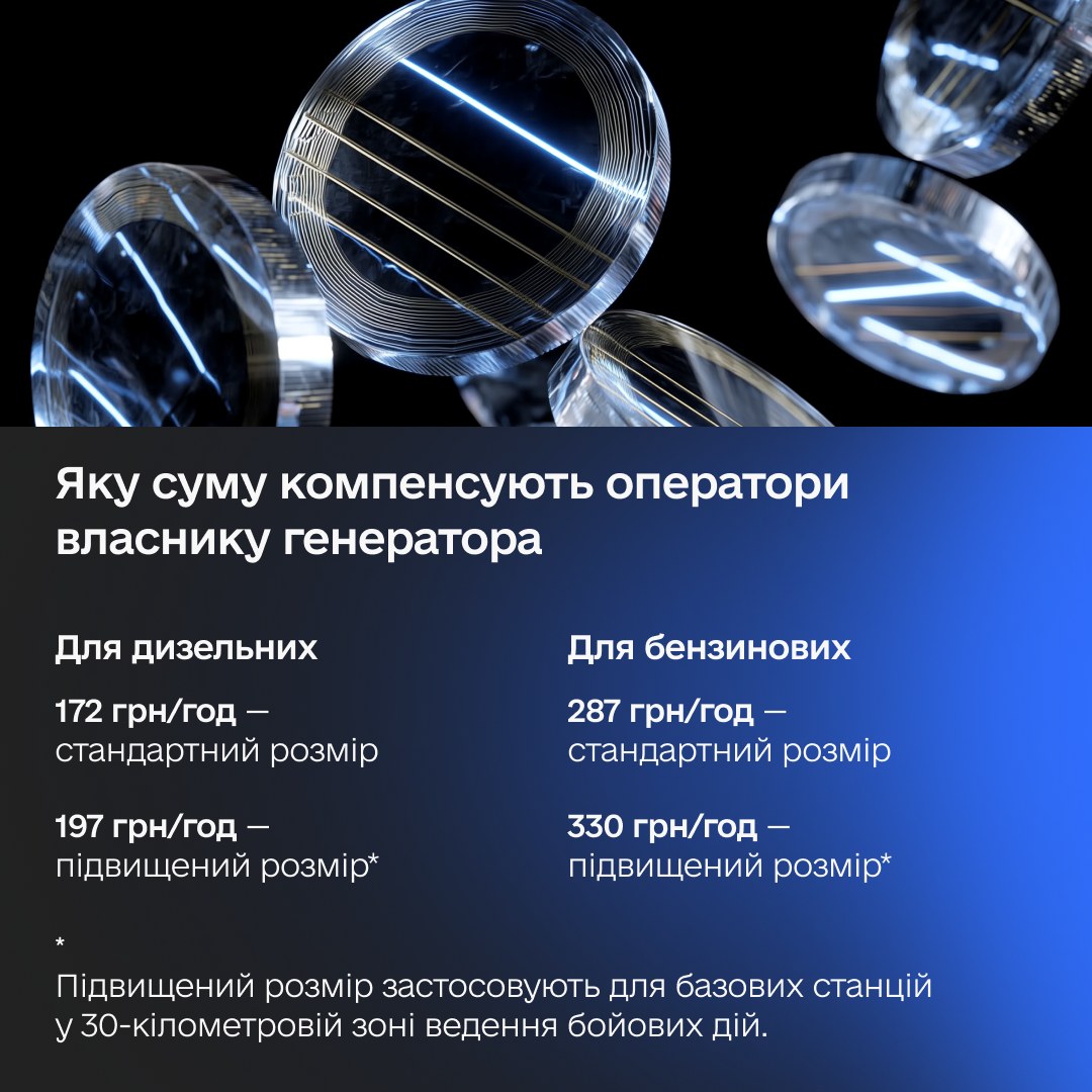 - ввели підвищений тариф для генераторів, які живитимуть базові станції в 30-кілометровій зоні бойових дій.