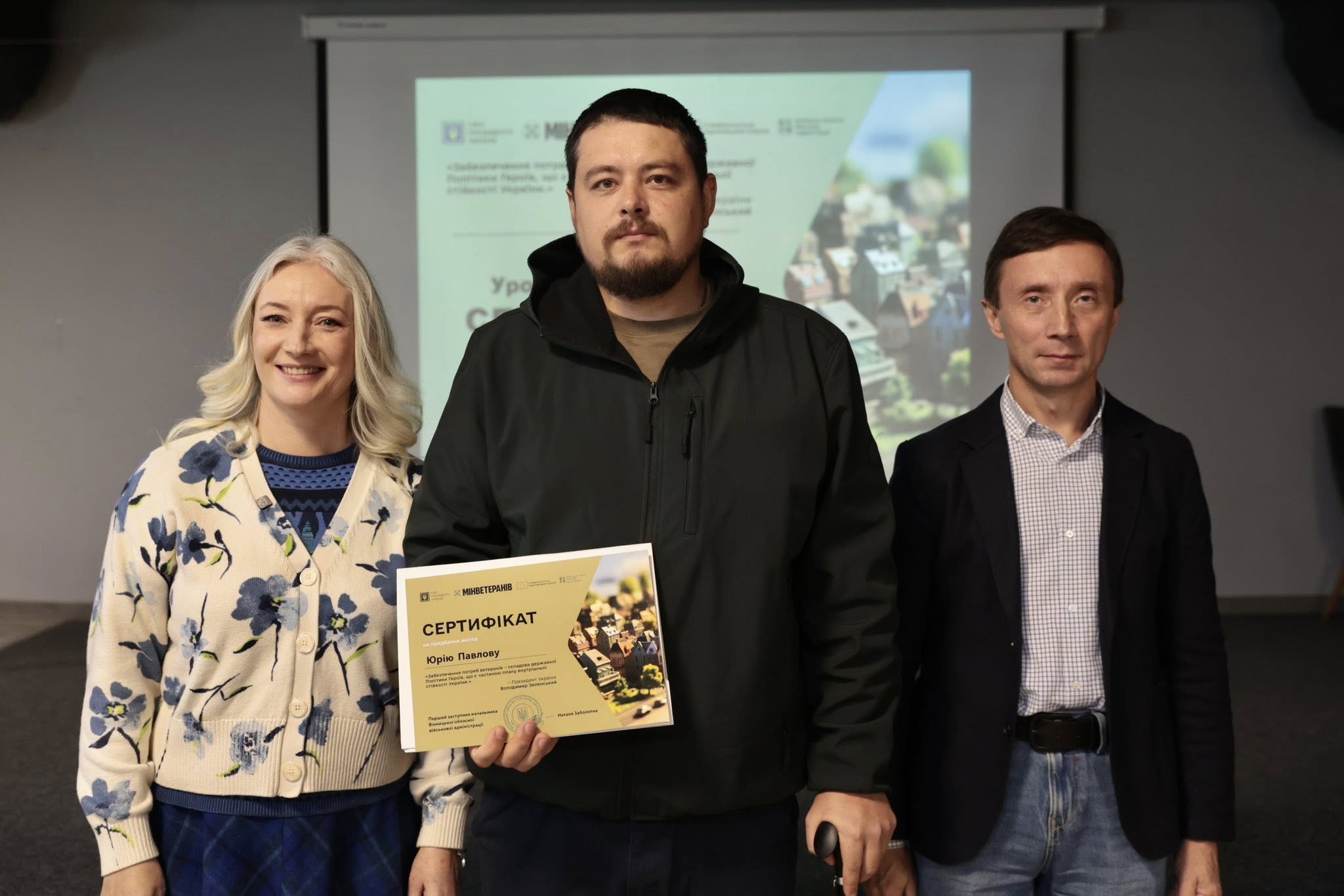 Вручення сертифікатів на житло стало можливим завдяки Президенту України Володимиру Зеленському, Кабінету Міністрів України, Мінветеранів за фінансової підтримки Європейського Союзу в рамках реалізації інструменту Ukraine Facility European Union in Ukraine.