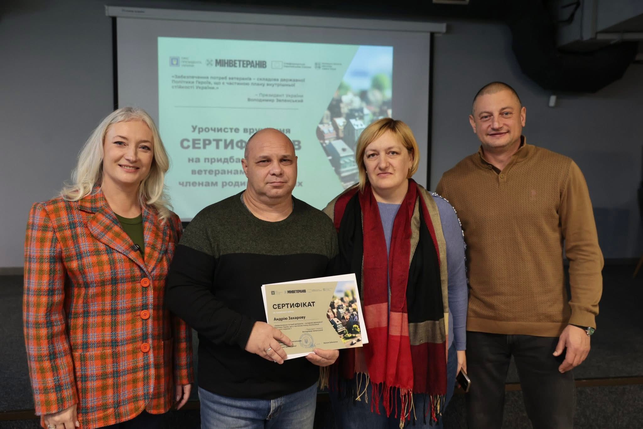 Вручення сертифікатів стало можливим завдяки Президенту України Володимиру Зеленському, Кабінету Міністрів України, Міністерству у справах ветеранів та фінансовій підтримці Європейського Союзу в межах інструменту Ukraine Facility.