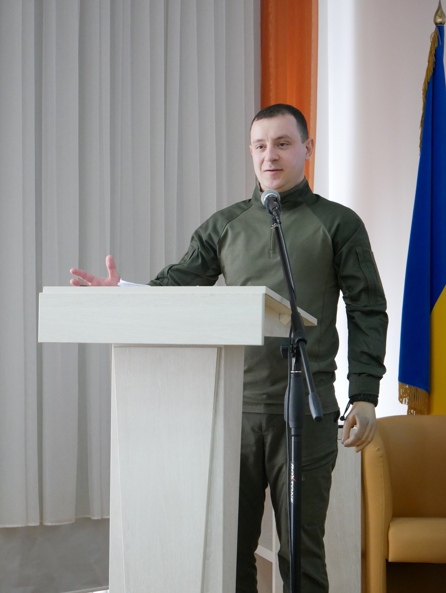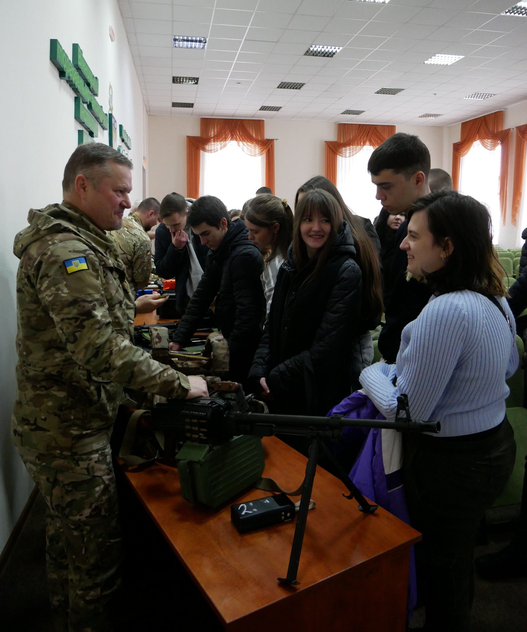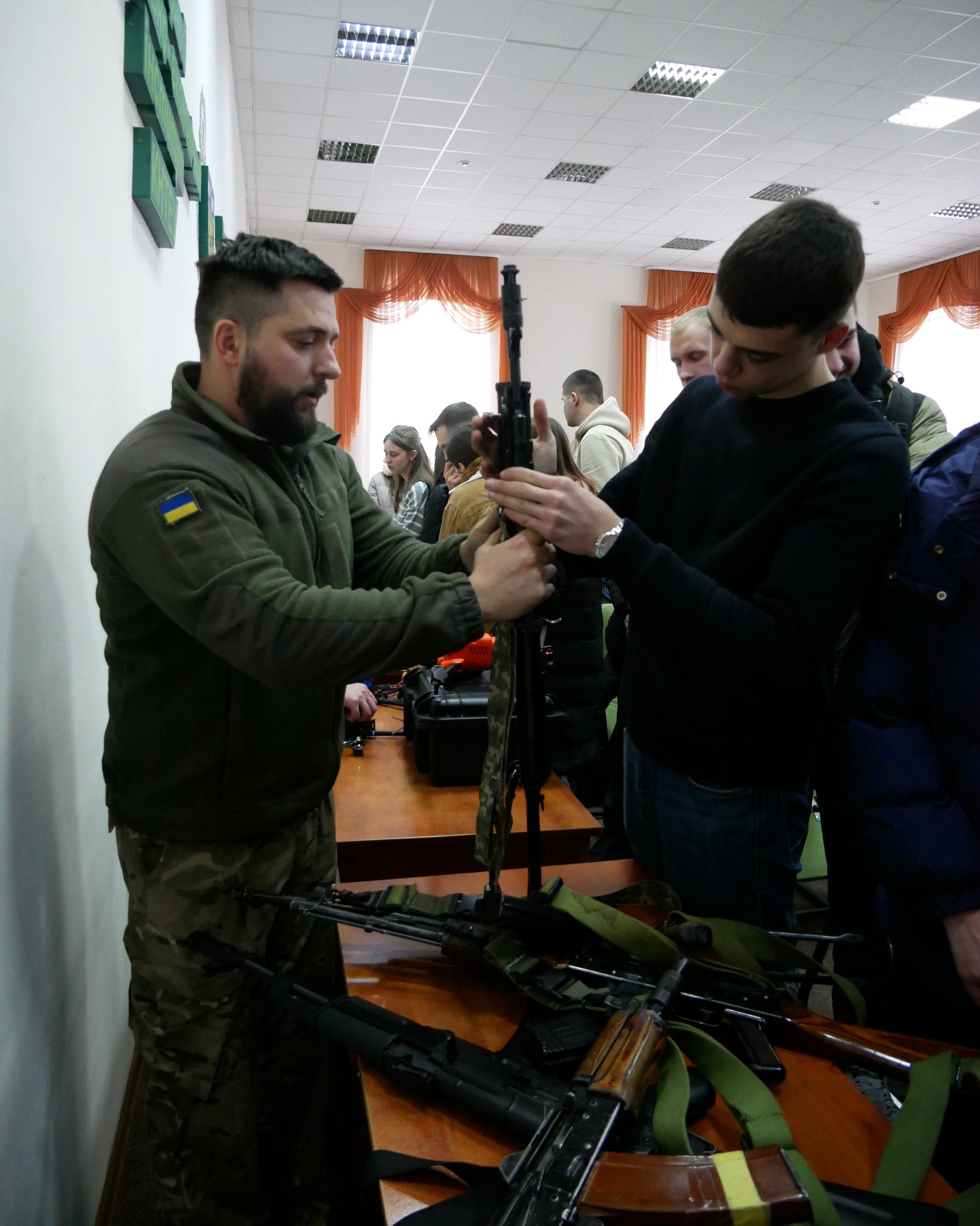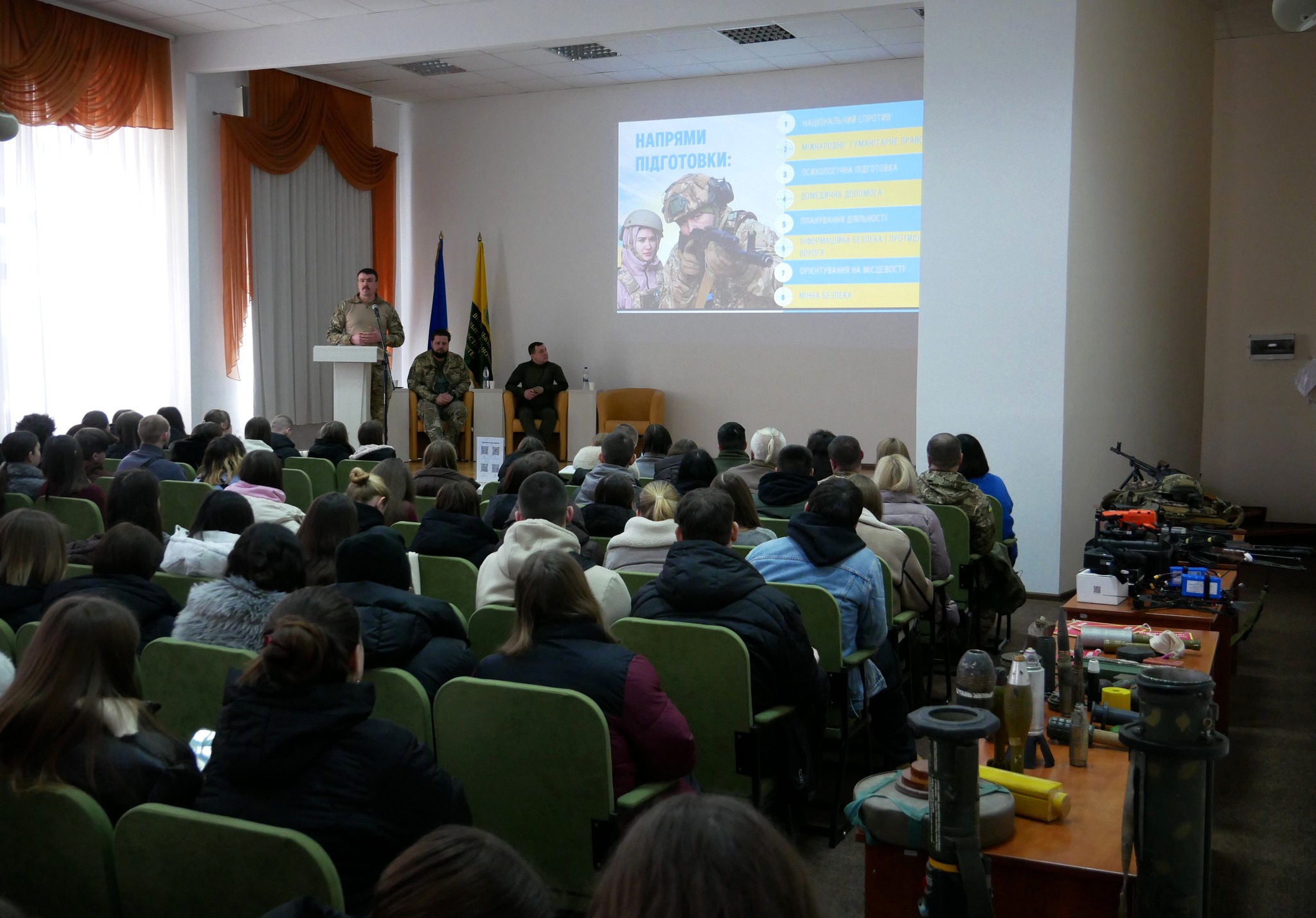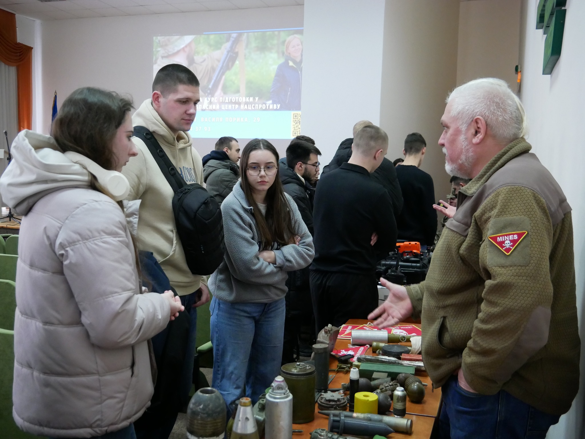 Очільник установи Микола Баланчук разом із командою інструкторів ознайомив студентів із напрямами діяльності Центру та детально представив програму підготовки до національного спротиву.