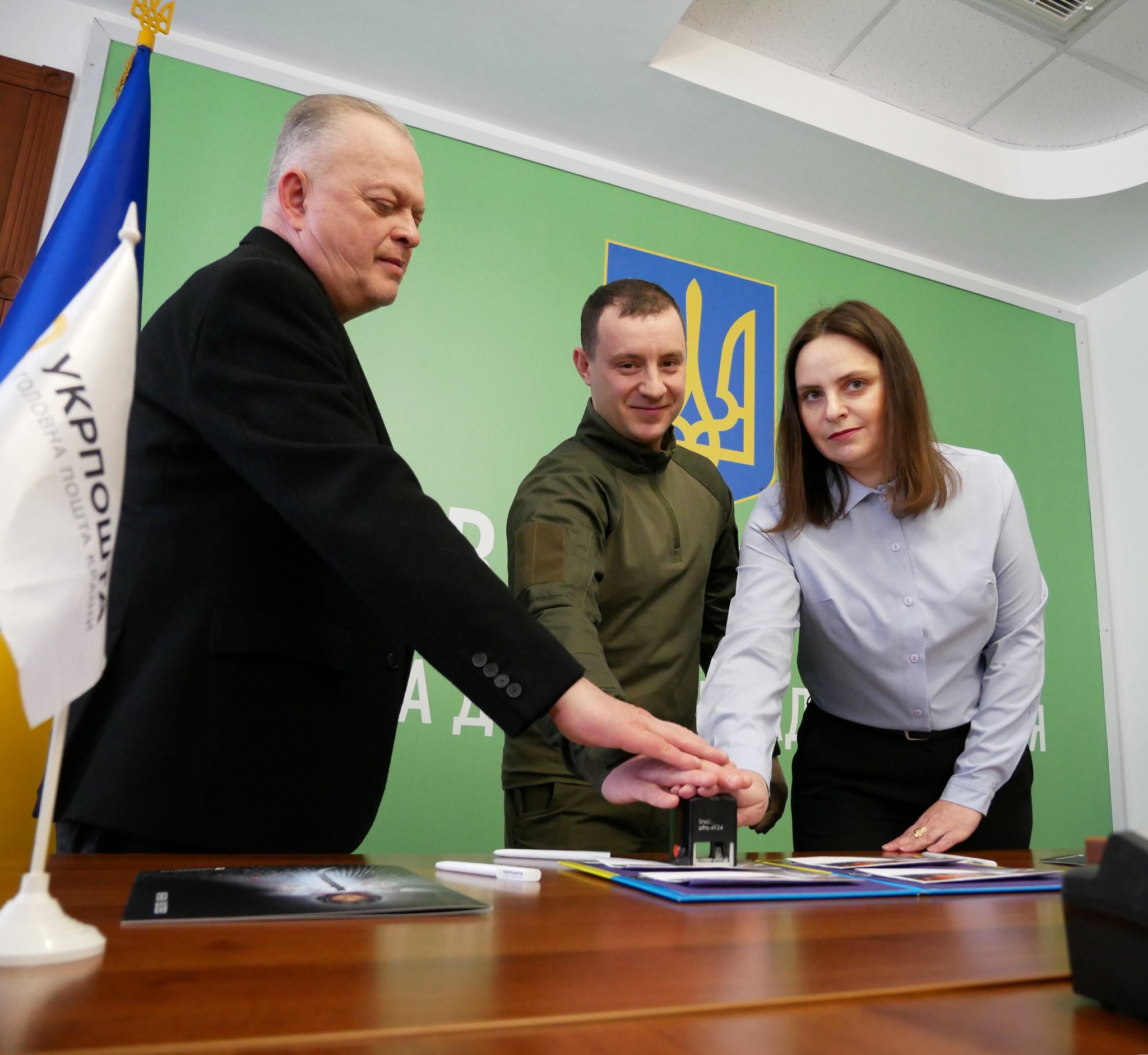 Символічно, що саме цього дня Укрпошта презентувала поштовий блок «Мечем і волею», присвячений річниці великої війни та незламному українському спротиву, який мужньо триває з 2014 року.
