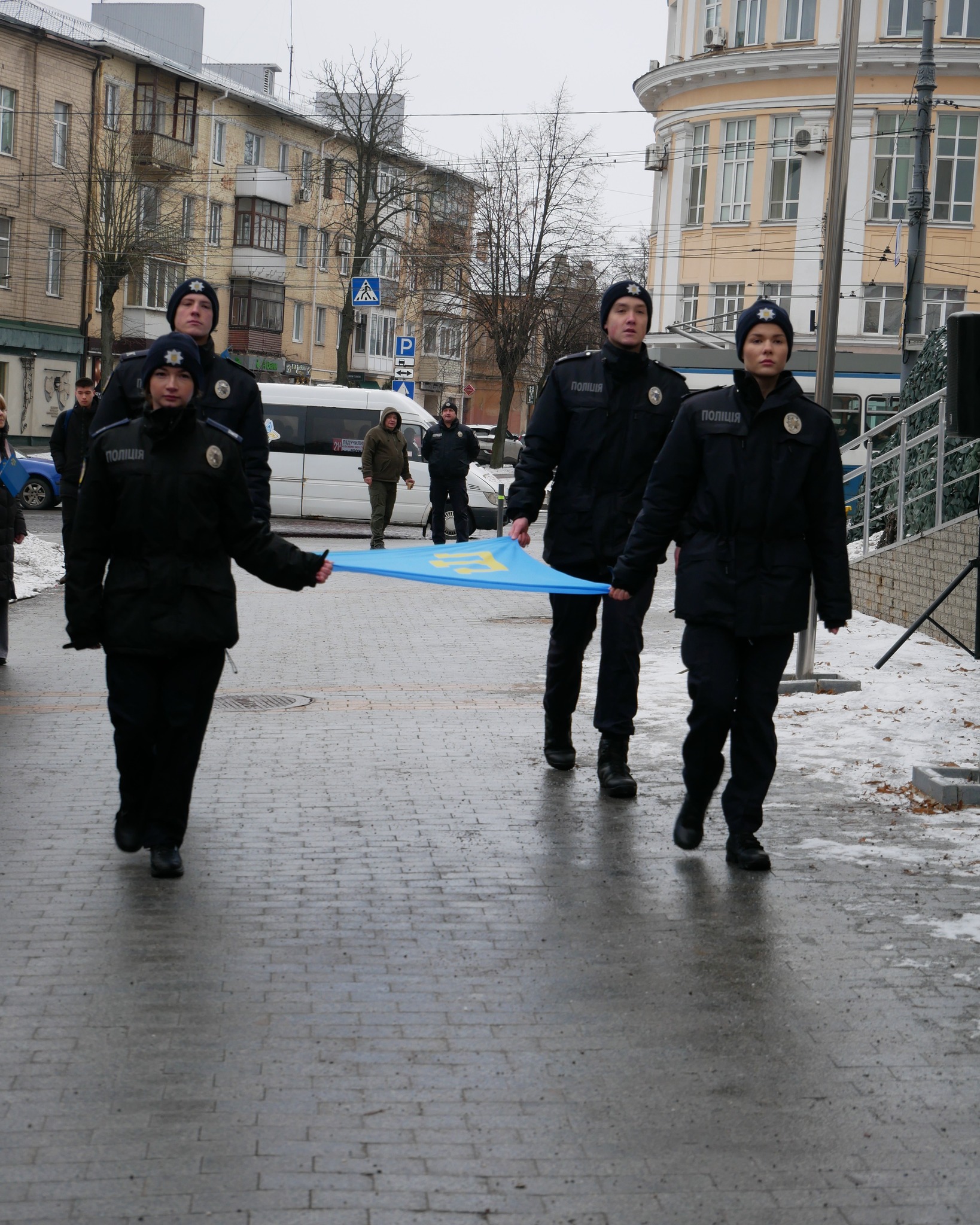 На знак підтримки у спільній боротьбі за права і свободу, біля приміщення обласної військової адміністрації підняли національний прапор кримськотатарського народу.