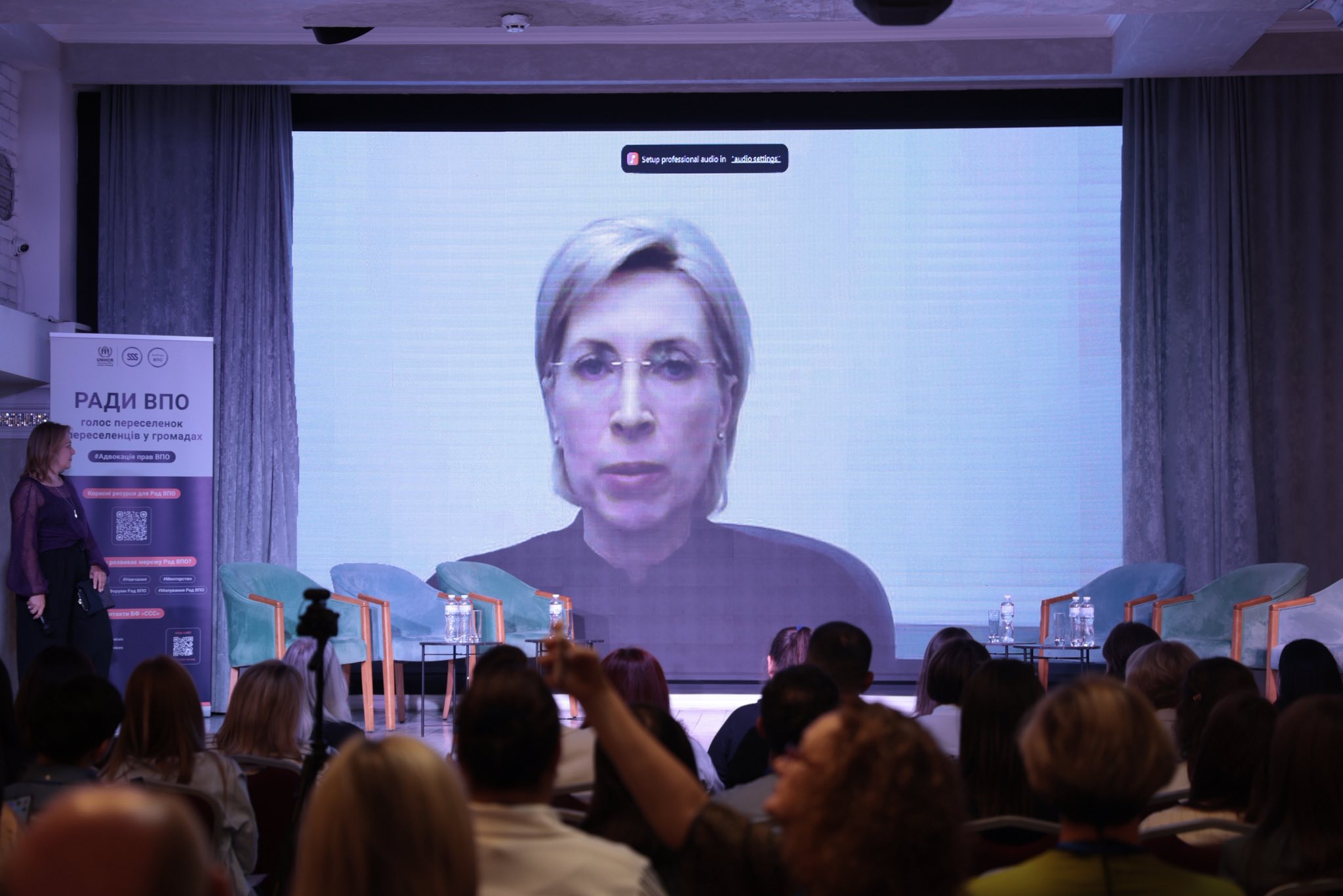 У онлайн-форматі до форуму долучилася заступник Керівника Офісу Президента України Ірина Верещук. Вона наголосила, що роль Ради ВПО – захищати права та інтереси внутрішньо переміщених осіб, вести діалог з владою про конкретні і досяжні речі.