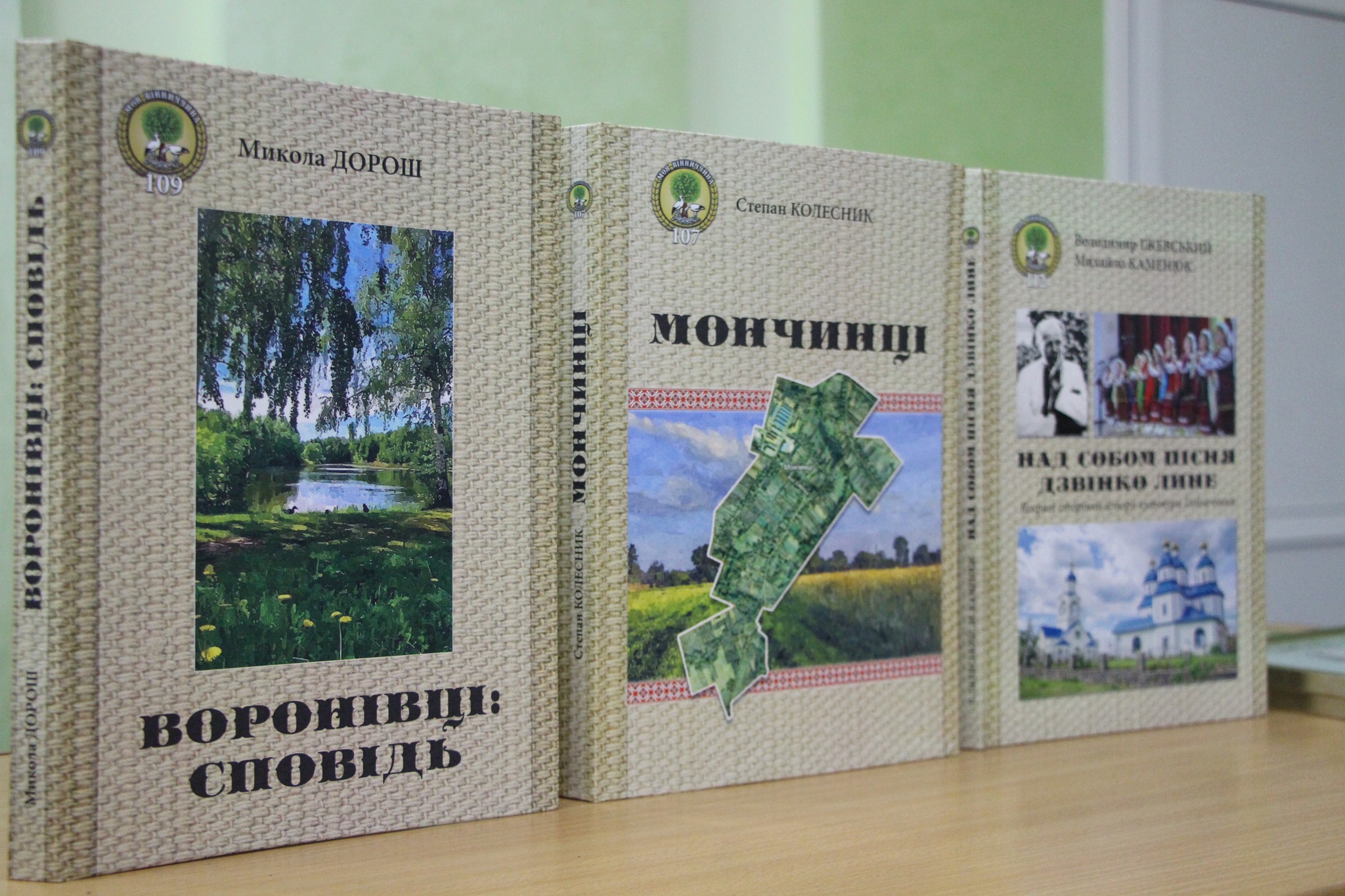 Серед них книги авторів: Миколи Дороша «Воронівці: сповідь», Степана Колесника «Мончинці», Володимира Іжевського та Михайла Каменюка «Над Собом пісня дзвінко лине».