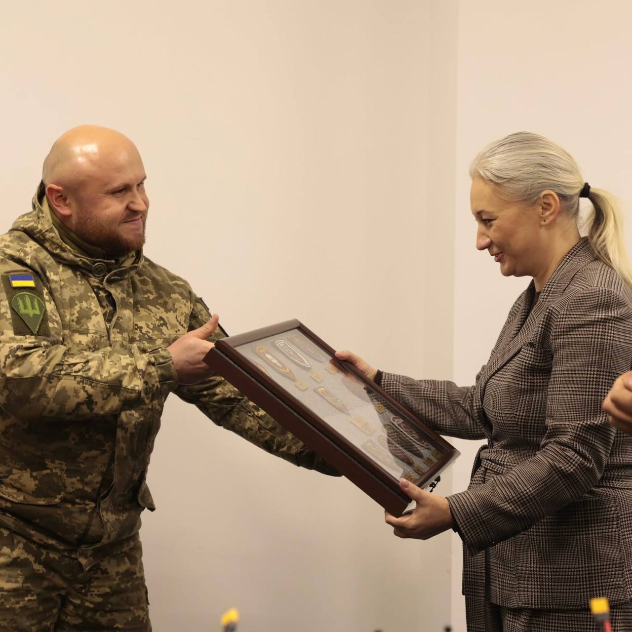 Перша заступниця начальника ОВА Наталя Заболотна та заступник голови обласної Ради Володимир Кістіон передали дрони воїнам 77 окремої аеромобільної Наддніпрянської бригади.