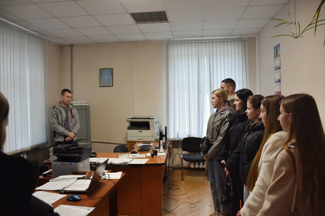 Під час зустрічі студенти ознайомилися зі структурою та особливостями роботи адміністрації, дізналися про щоденну діяльність підрозділів, основні напрямки роботи та ключові завдання у період воєнного стану.