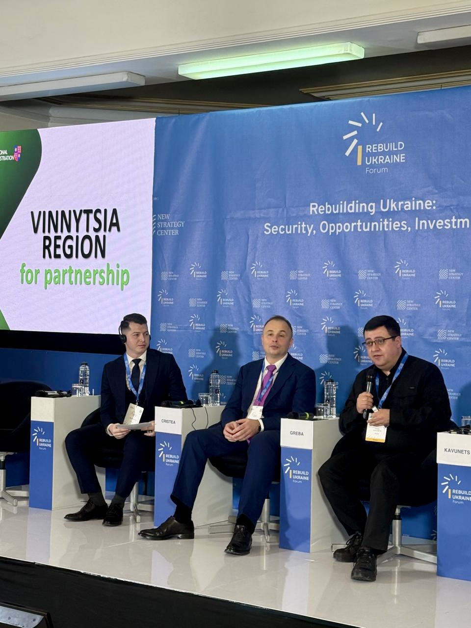 Андрій Кавунець представив потенціал Вінниччини, акцентувавши на наявних інвестиційних можливостях регіону, а також підкреслив його важливу роль у зміцненні транскордонного співробітництва. У своєму виступі він представив пріоритетні напрями потенційних інвестицій та налагодження співробітництва, такі як сільське господарство та переробка продукції АПК, логістика, будівництво, зелена енергетика та сфера ІТ.