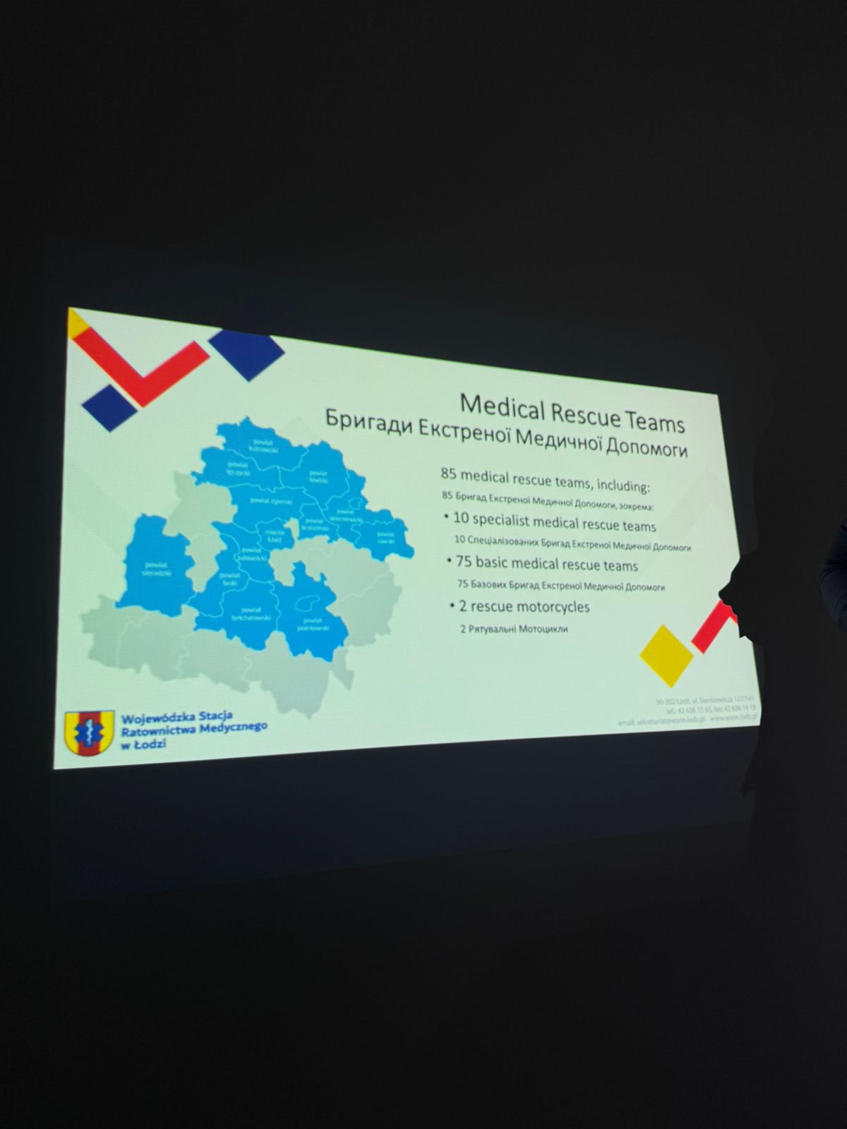 Воєводська станція швидкої медичної допомоги у Лодзі – одна з найбільших в Польщі, має 85 бригад швидкої медичної допомоги, з яких 75 парамедичних та 10 спеціалізованих, що мають у складі лікаря. Члени делегації відвідали головний офіс установи та воєводську спеціалізовану лікарню ім. Марії Склодовської-Кюрі у м. Згеж, де ознайомилися з умовами роботи рятувальних бригад, автопарком екстреної медичної допомоги, аптечним забезпеченням і ремонтною базою.