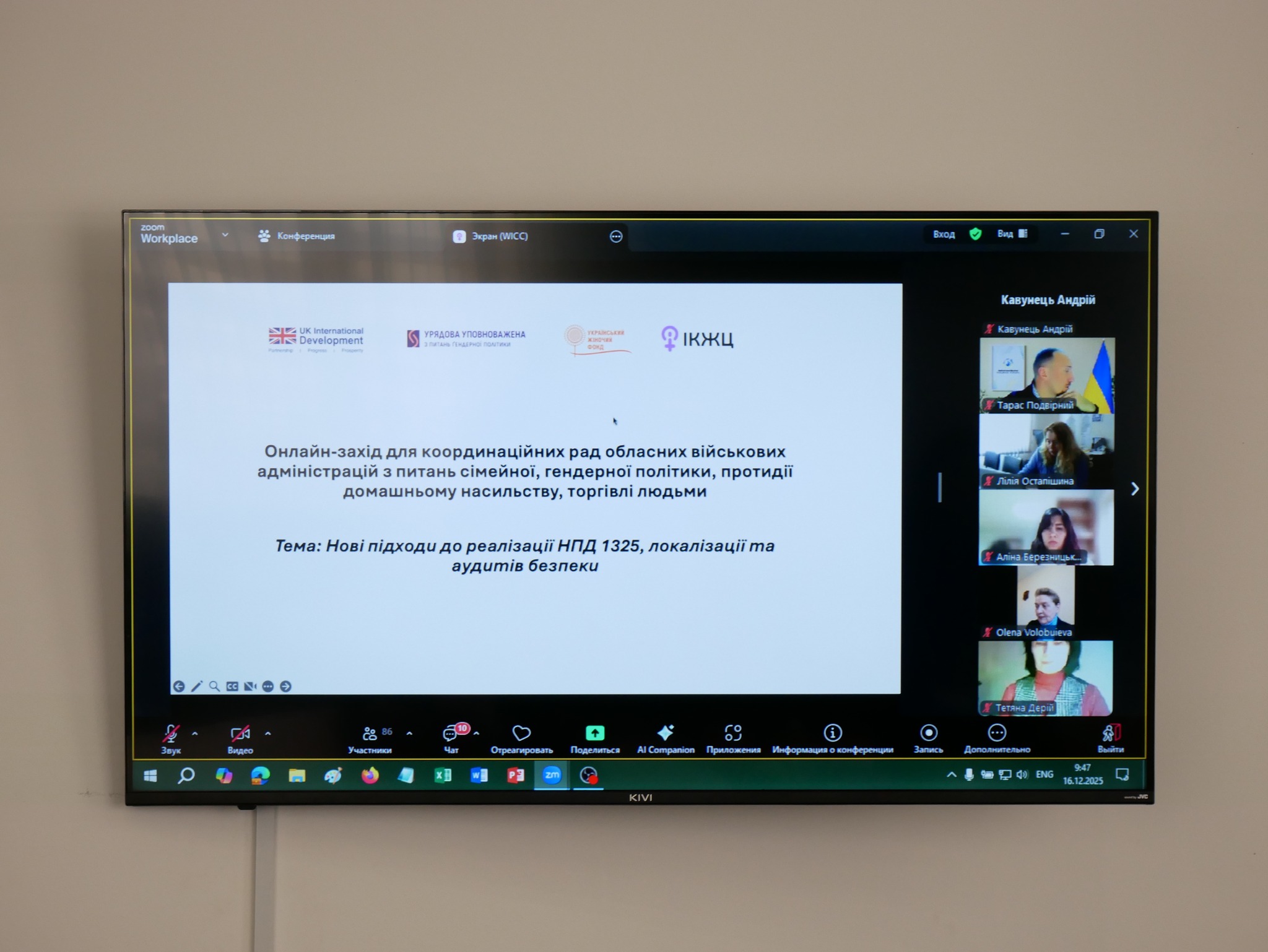 У ході наради учасники обговорили актуальні виклики та напрацювання регіонів щодо реалізації заходів у сфері забезпечення рівних прав і можливостей жінок і чоловіків, а також посилення ролі жінок у процесах безпеки, відновлення та миру. Зокрема, розглянули нові підходи виявлення безпекових викликів, а саме проведення аудитів безпеки територій, укриттів, транспорту з урахуванням потреб різних категорій жінок і чоловіків.