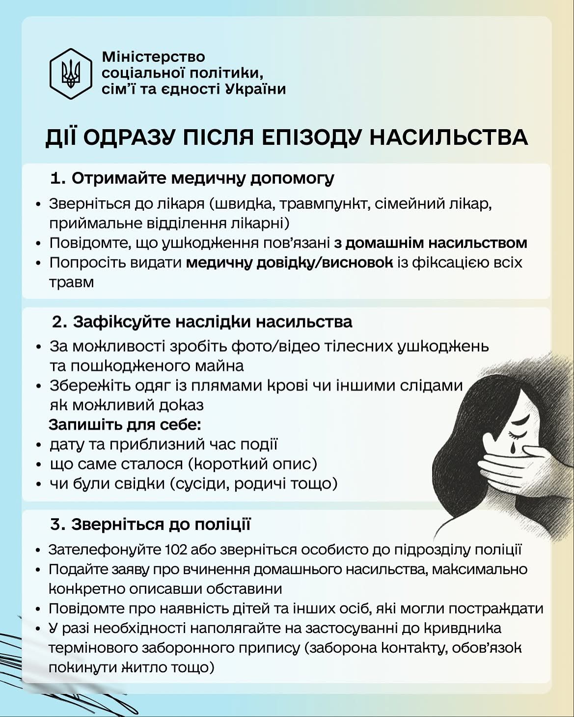 До Міжнародного дня боротьби за ліквідацію насильства над жінками ми підготували покроковий чек-лист — що робити в екстреній ситуації, які документи мати під рукою, як скласти план безпеки та куди звертатися по допомогу.