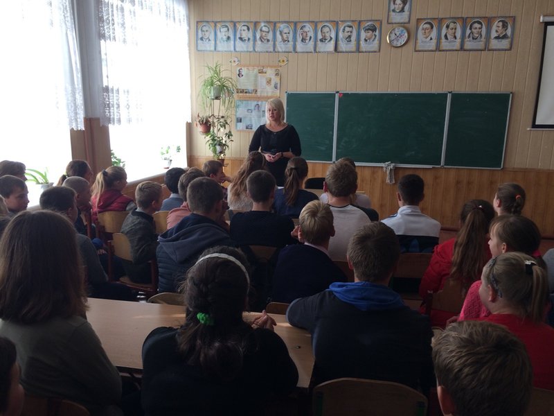 Начальник служби у справах дітей райдержадміністрації Юлія Кучер познайомила дітей з різновидами здійснення торгі́влі людьми́ з метою експлуатації вербування, перевезення, передачі, приховування або одержання людей шляхом погрози силою, її застосування або інших форм примусу, викрадення, шахрайства, обману, зловживання владою, вразливістю положення або шляхом підкупу у вигляді платежів або вигод, для отримання згоди особи, що контролює іншу особу. (Протокол про попередження та припинення торгівлі людьми, особливо жінками й дітьми, і покарання за неї, котрий доповнює Конвенцію ООН проти транснаціональної організованої злочинності.)