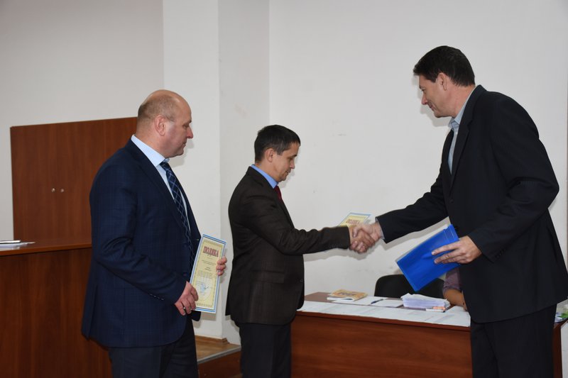 Голова Вінницької районної організації профспілки працівників освіти і науки Михайло П’ятак вручив подяки президії Вінницької обласної організації профспілки працівників освіти і науки голові районної державної адміністрації Михайлу Демченку та голові районної ради Сергію Сітарському за активну громадську позицію та плідну співпрацю з Профспілкою освітян по створенню належних умов праці працівникам освітянської галузі району та з нагоди 100-річчя з дня створення обласної організації профспілки освітян та подяки президії районної організації профспілки працівників освіти депутатам районної ради Тетяні Закревській, Юрію Парфенюку та редактору регіональної газети «Подільська зоря» Федору Бежнару.