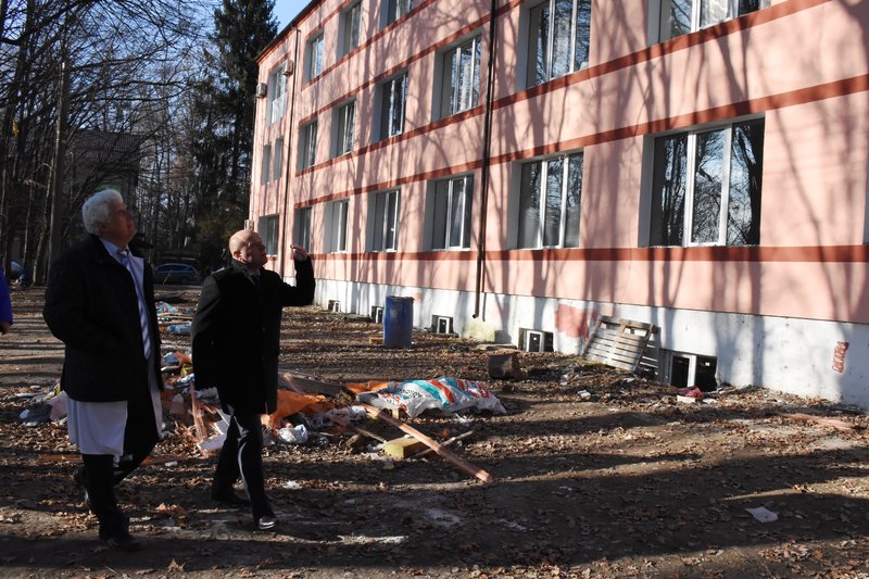 Також оглянули зовнішню частину лікувального корпусу, де проходить утеплення фасаду та перекриття даху металочерепицею. Перекриття даху лікувального корпусу здійснюється в 3 етапи: 1 етап – гінекологічне відділення, 2 етап – отоларингологічного і неврологічне відділення, 3 етап – терапевтичне відділення. Загальна площа становить 3,5 тис.м². На ці ремонтні роботи з державного бюджету виділено - 2,957 млн.грн., з районного – 88,72 тис.грн.