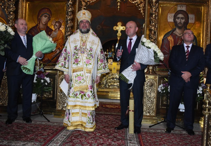 З вітальни словом звернувся до Митрополита Симеона голова Вінницької районної державної адміністрації Михайло Демченко: «Доброго дня шановні присутні, шановний, вельмиповажний Владико Симеон. Вітаю Вас з прекрасним ювілеєм - 55-річчям. Саме ті справи, які ви робите і те богослужіння, яке Ви проводите на благо наших простих українців є дуже важливим. Знаєте, коли Ви приїжджаєте в будь-який куточок населеного пункту району, там завжди – свято. Тому що для людей побачити Вас, почути Вашу проповідь про Господа Бога, Ісуса Христа є надзвичайно важливим. Бажаю Вам міцного здоров’я, процвітання і нехай Господь Бог оберігає і надихає Вас на всі добрі справи, які ви творите на благо наших людей».