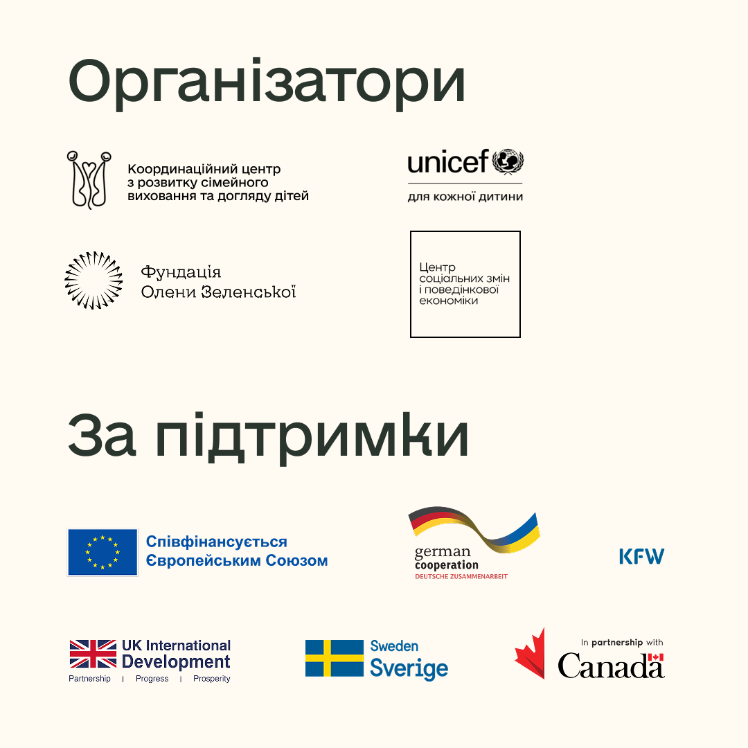 Кампанія «Родина для кожної дитини. Better Care Awards» реалізується Координаційним центром з розвитку сімейного виховання та догляду дітей, Фундацією Олени Зеленської, Центром соціальних змін і поведінкової економіки разом з ЮНІСЕФ в Україні за фінансової підтримки Європейського Союзу, Федерального міністерства економічного співробітництва і розвитку Німеччини (BMZ) через державний банк розвитку KfW та урядів Канади, Швеції та Великої Британії.