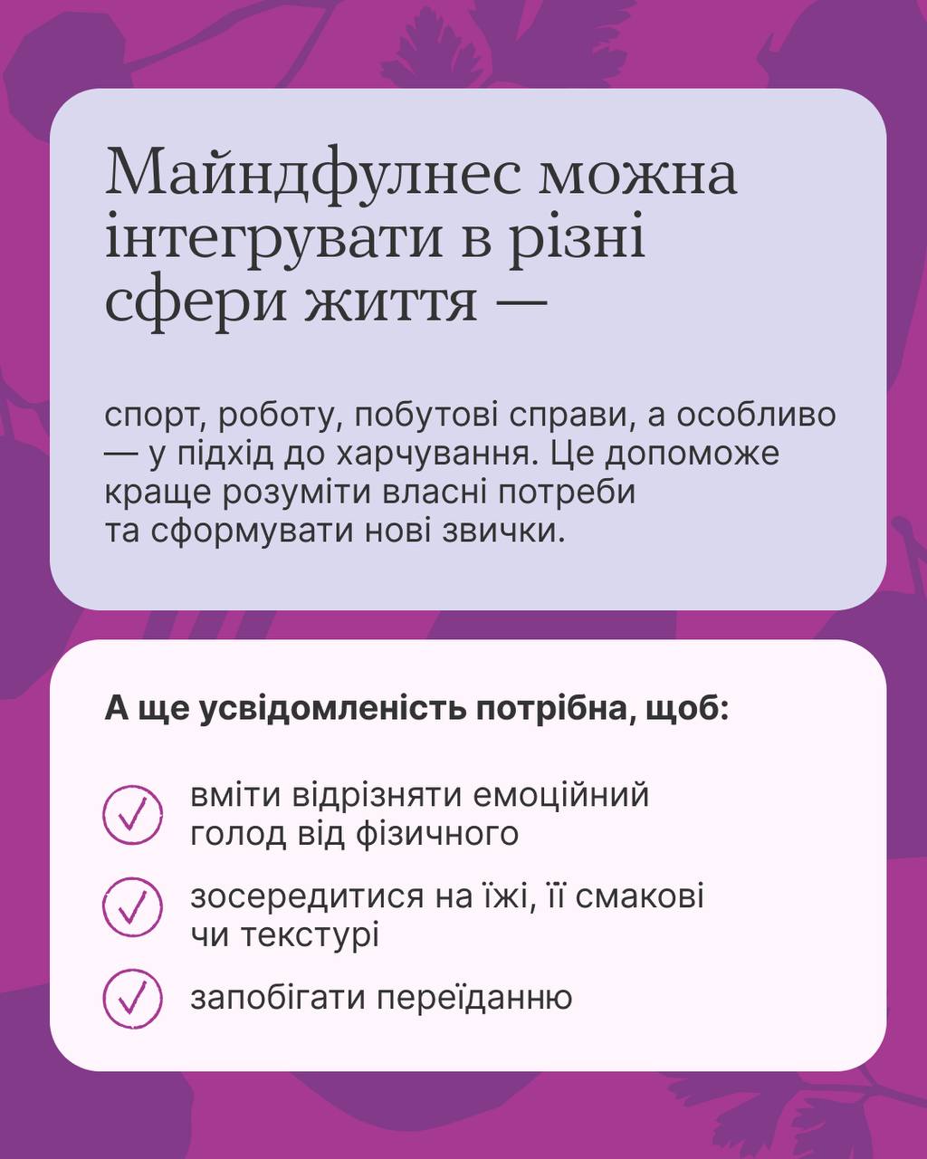 Адже усвідомленість добре поєднується з усіма сферами нашого життя і навіть із будь-якими стравами на столі.