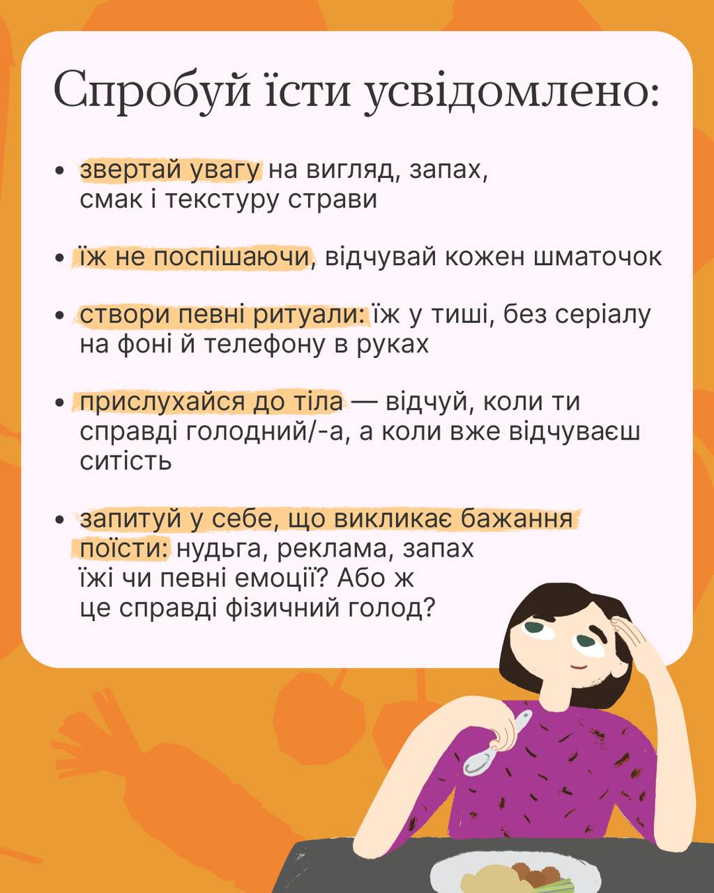 Ці рекомендації та уважність можуть стати першим кроком до здорових стосунків з їжею.