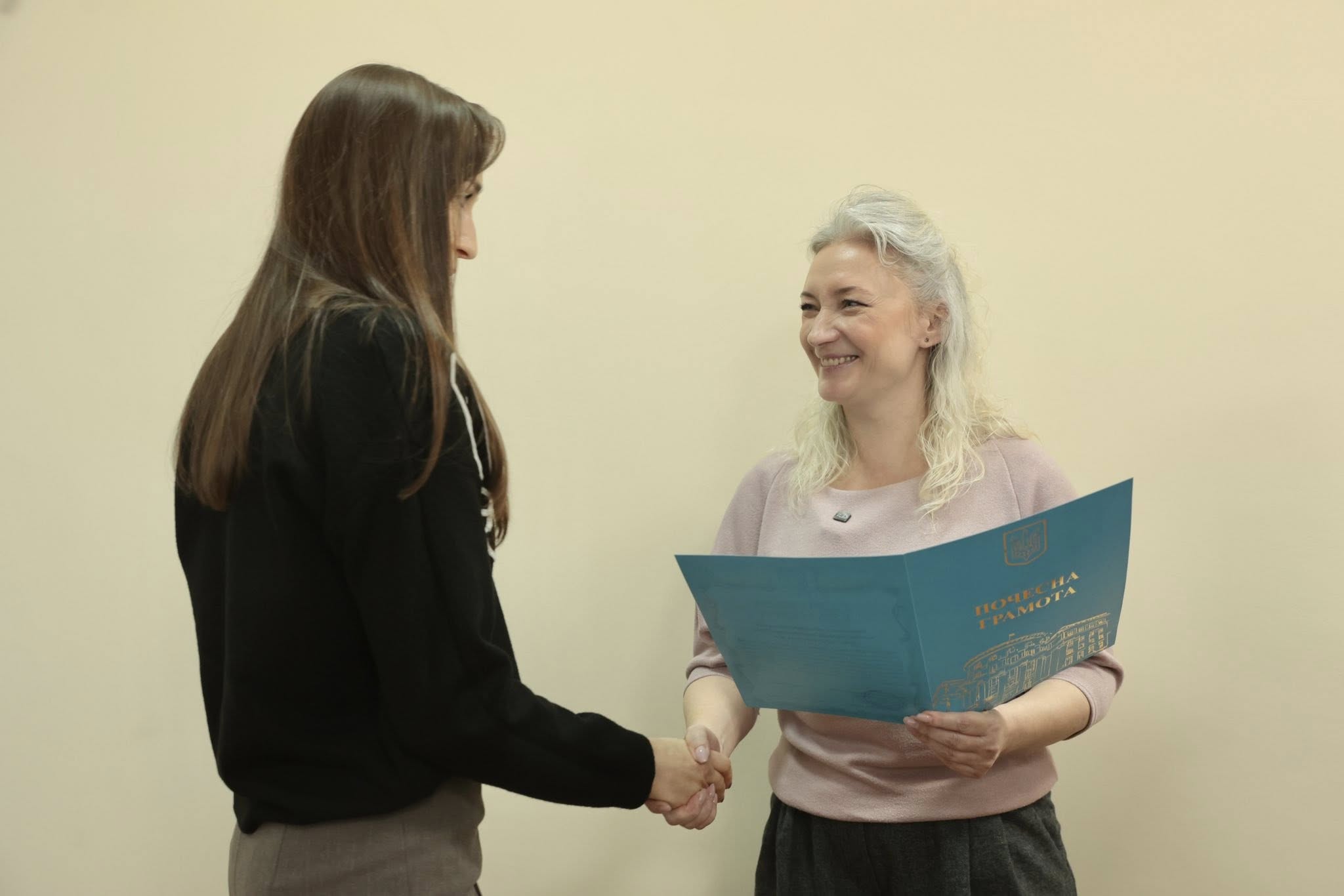 У ході заходу начальниця ОВА Наталя Заболотна разом з головою обласної Ради Вячеславом Соколовим відзначили кращих фахівців Управління.