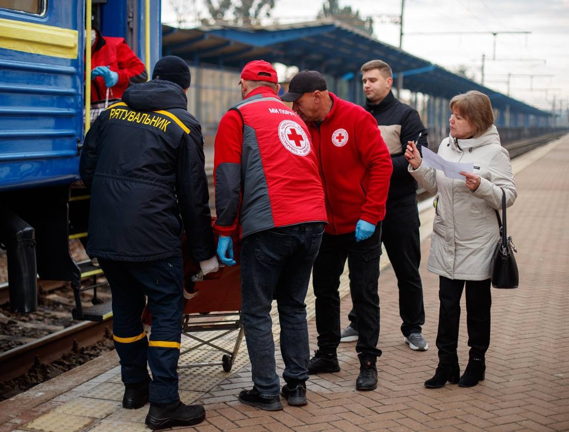 На залізничному вокзалі людям надали підтримку рятувальники ГУ ДСНС, медики, представники обласної влади та Червоного Хреста. Маломобільних пасажирів одразу передали бригадам екстреної медичної допомоги.