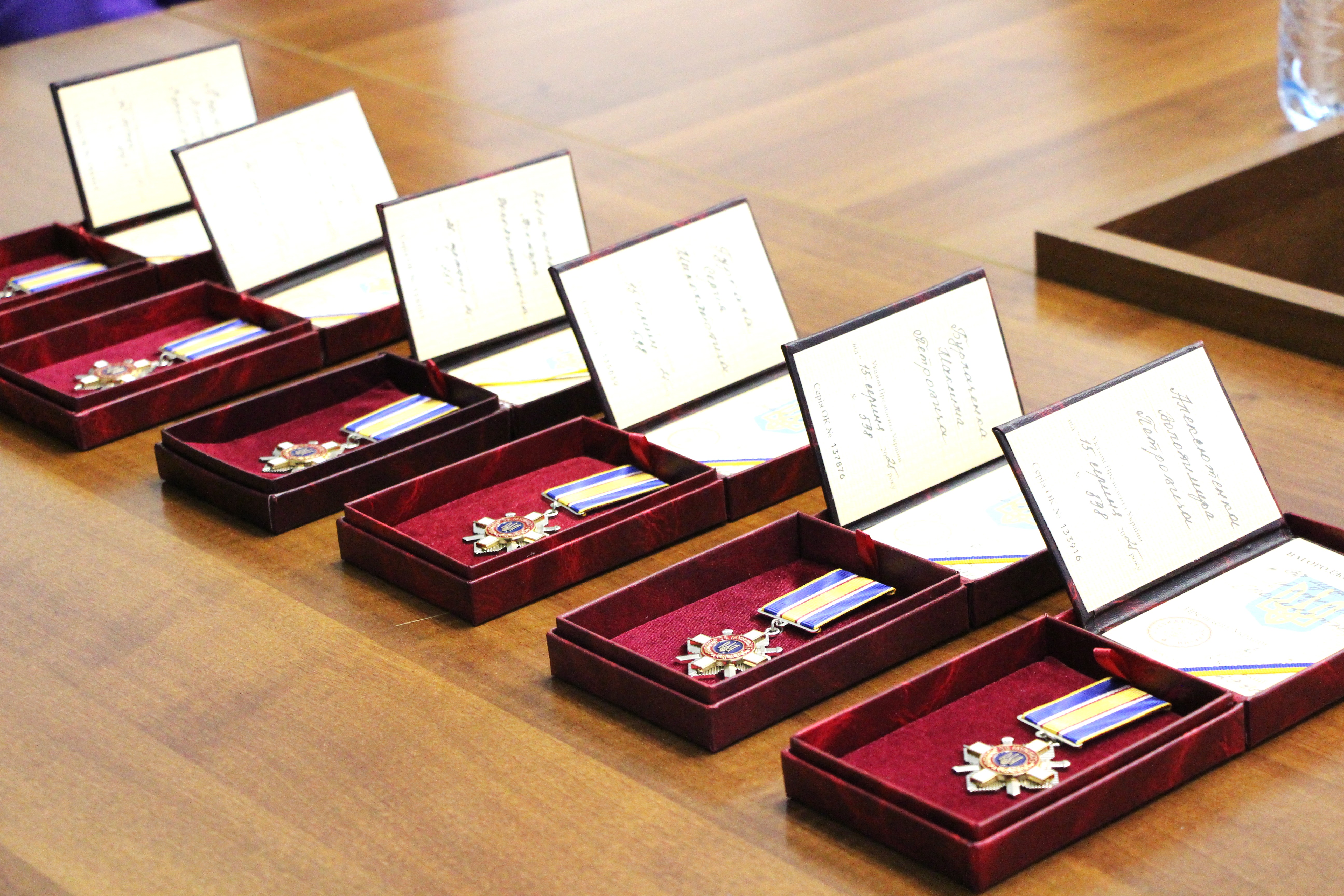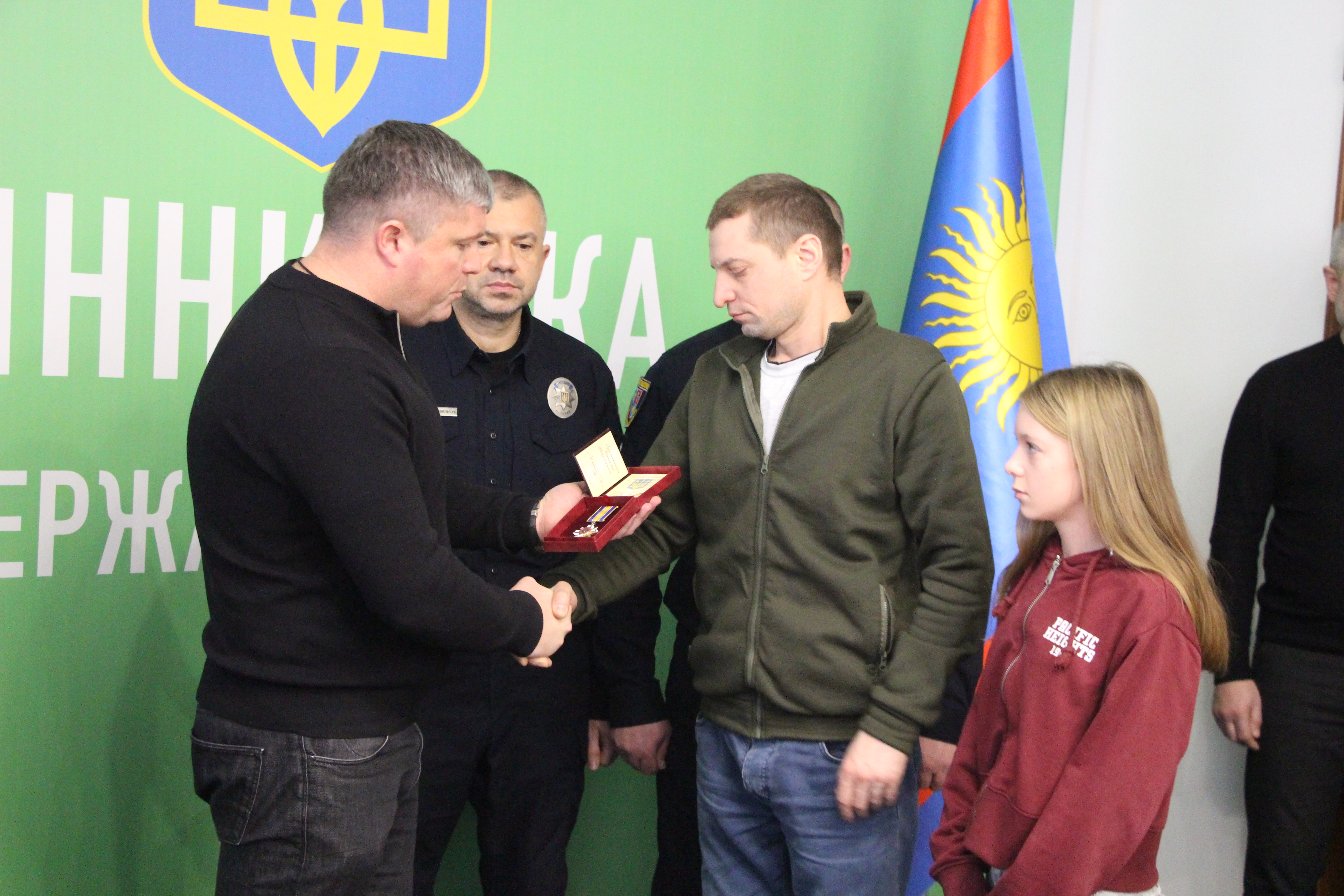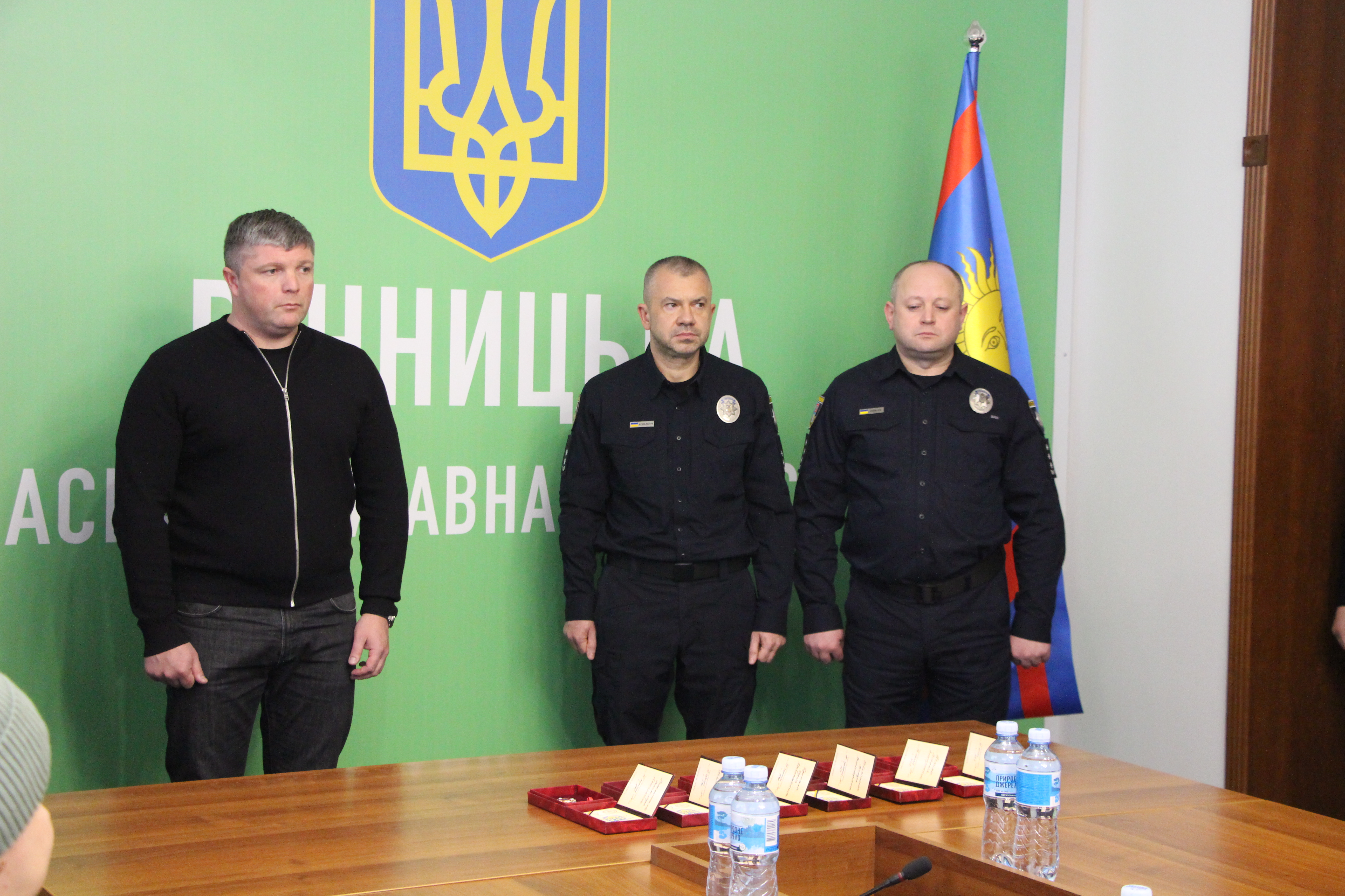 Сьогодні заступник начальника ОВА Олександр Піщик, заступник начальника ГУНП України у Вінницькій області Володимир Олексюк та командир в/ч НГУ 3008 Валентин Сірак вручили посмертні державні нагороди рідним полеглих Героїв, які віддали свої життя за незалежність Батьківщини.