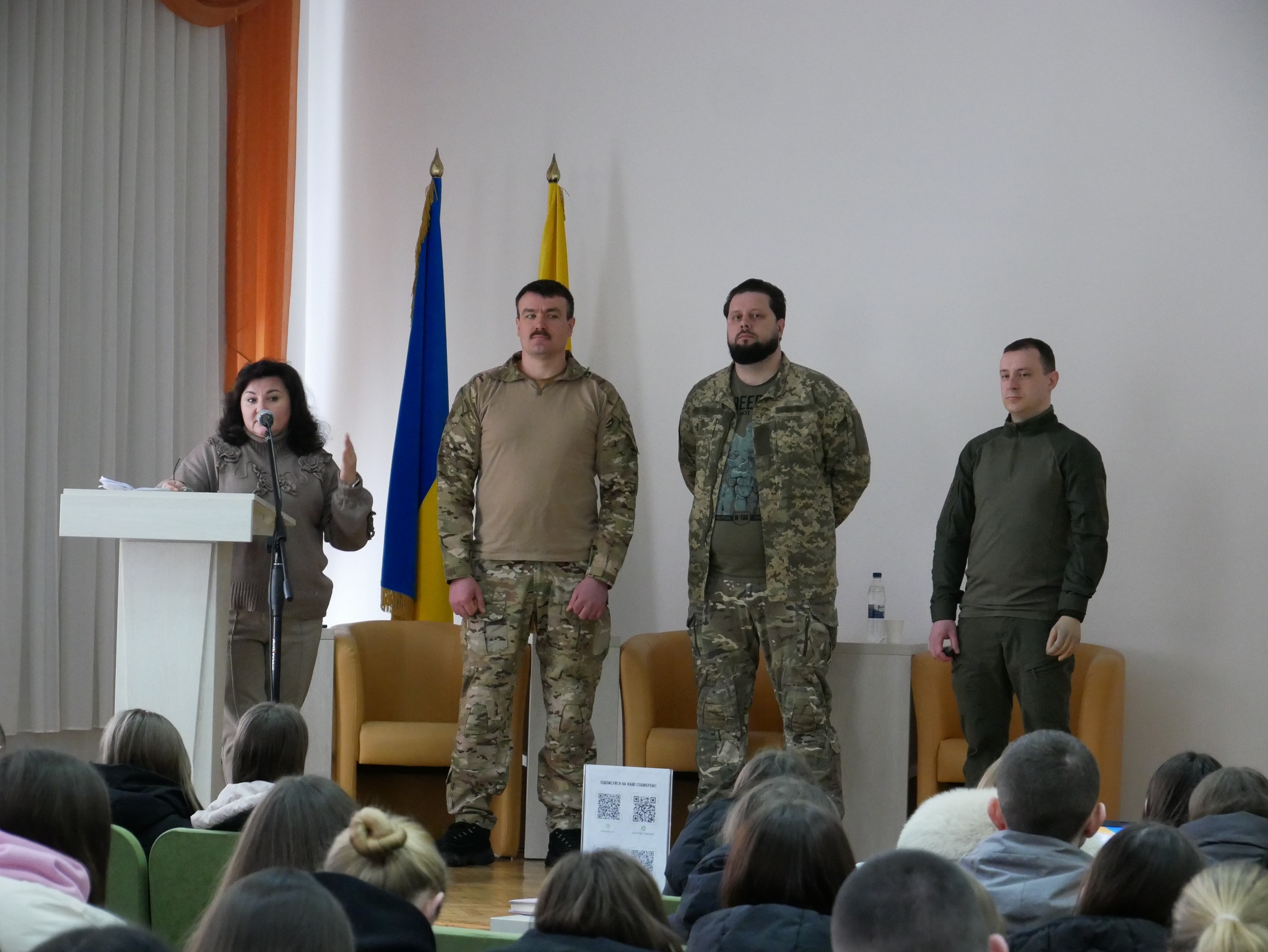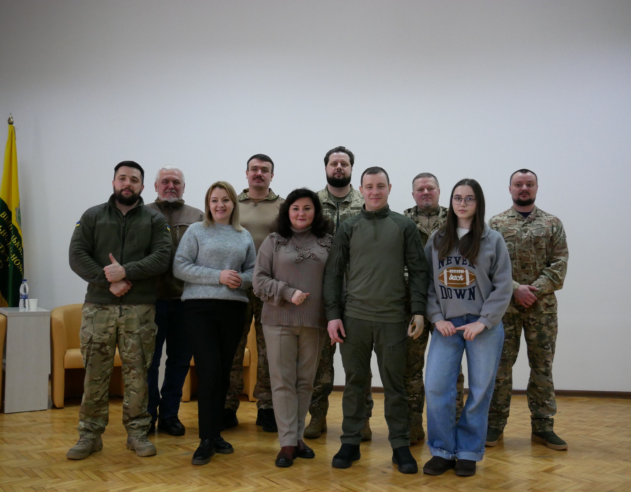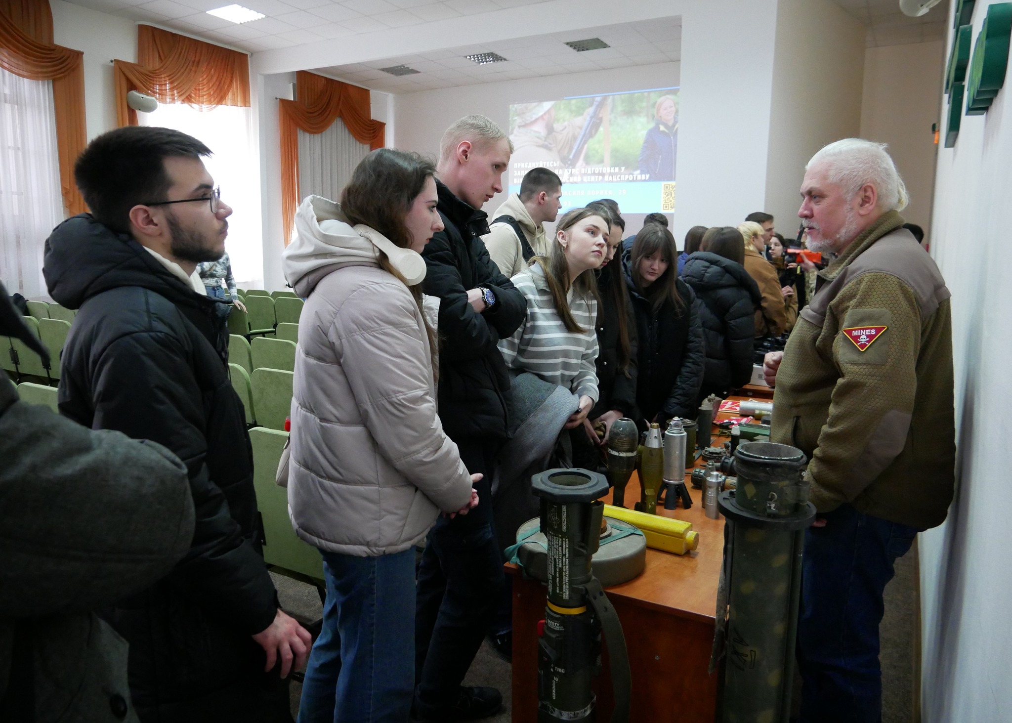 Очільник установи Микола Баланчук разом із командою інструкторів ознайомив студентів із напрямами діяльності Центру та детально представив програму підготовки до національного спротиву.