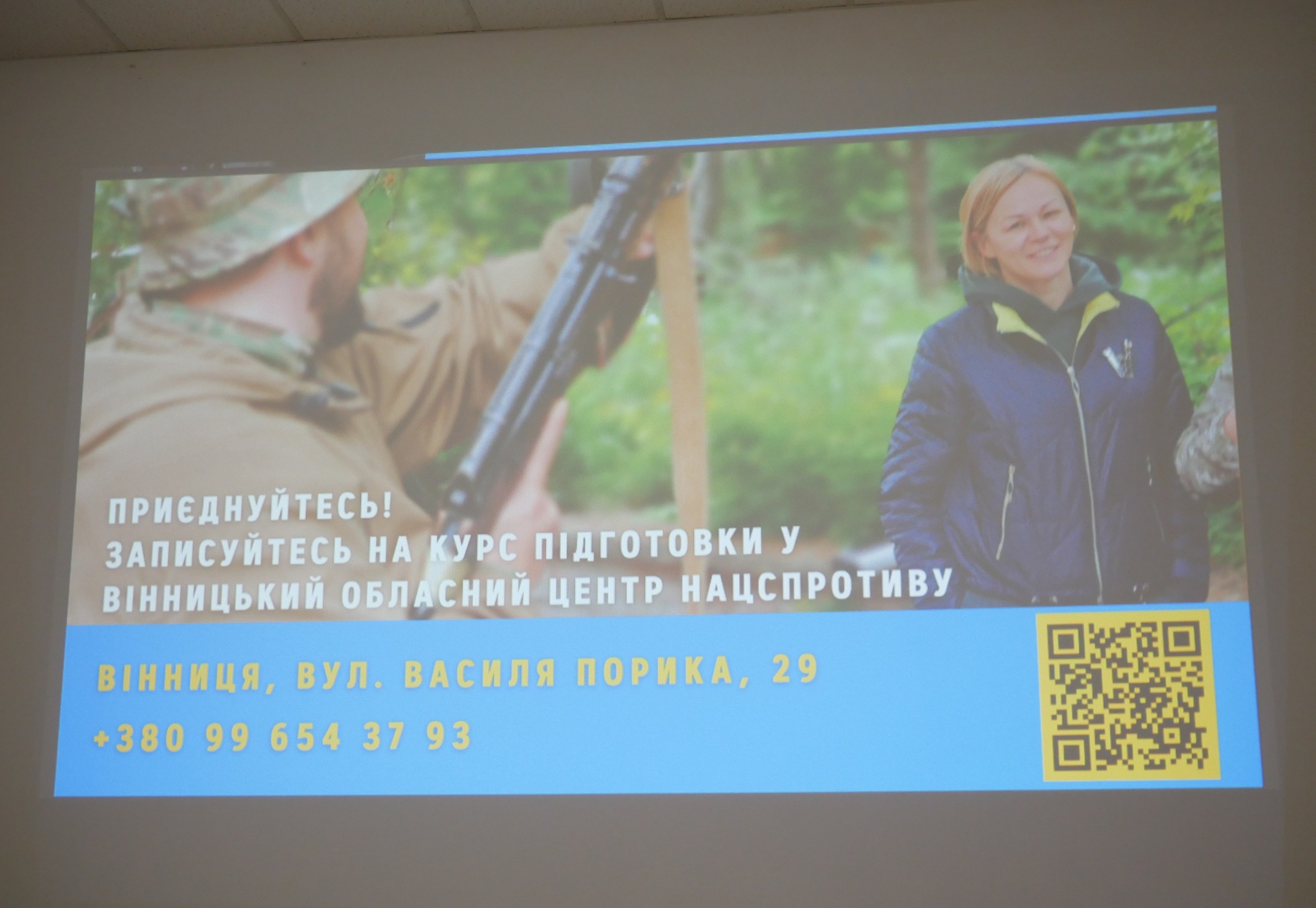 Вінницький обласний центр підготовки громадян до національного спротиву продовжує системну співпрацю із закладами вищої освіти регіону. Представники Центру провели чергову презентацію курсу у Вінницькому торговельно-економічному інституті Київського національного торговельно-економічного університету.