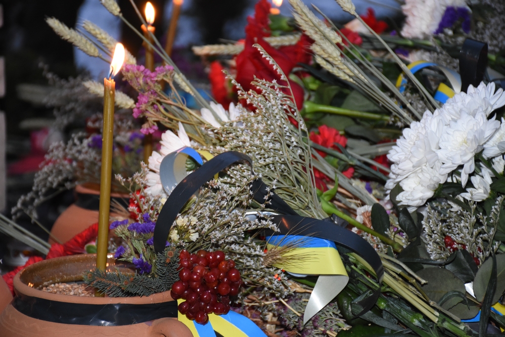 Задля збереження та вшанування пам’яті про невинно загиблих синів та дочок українського народу усі присутні на скорботному мітингу запалити свічки пам’яті, поклали композиції з колосків, квіти та лампадки до Пам’ятного знаку жертвам голодоморів.
