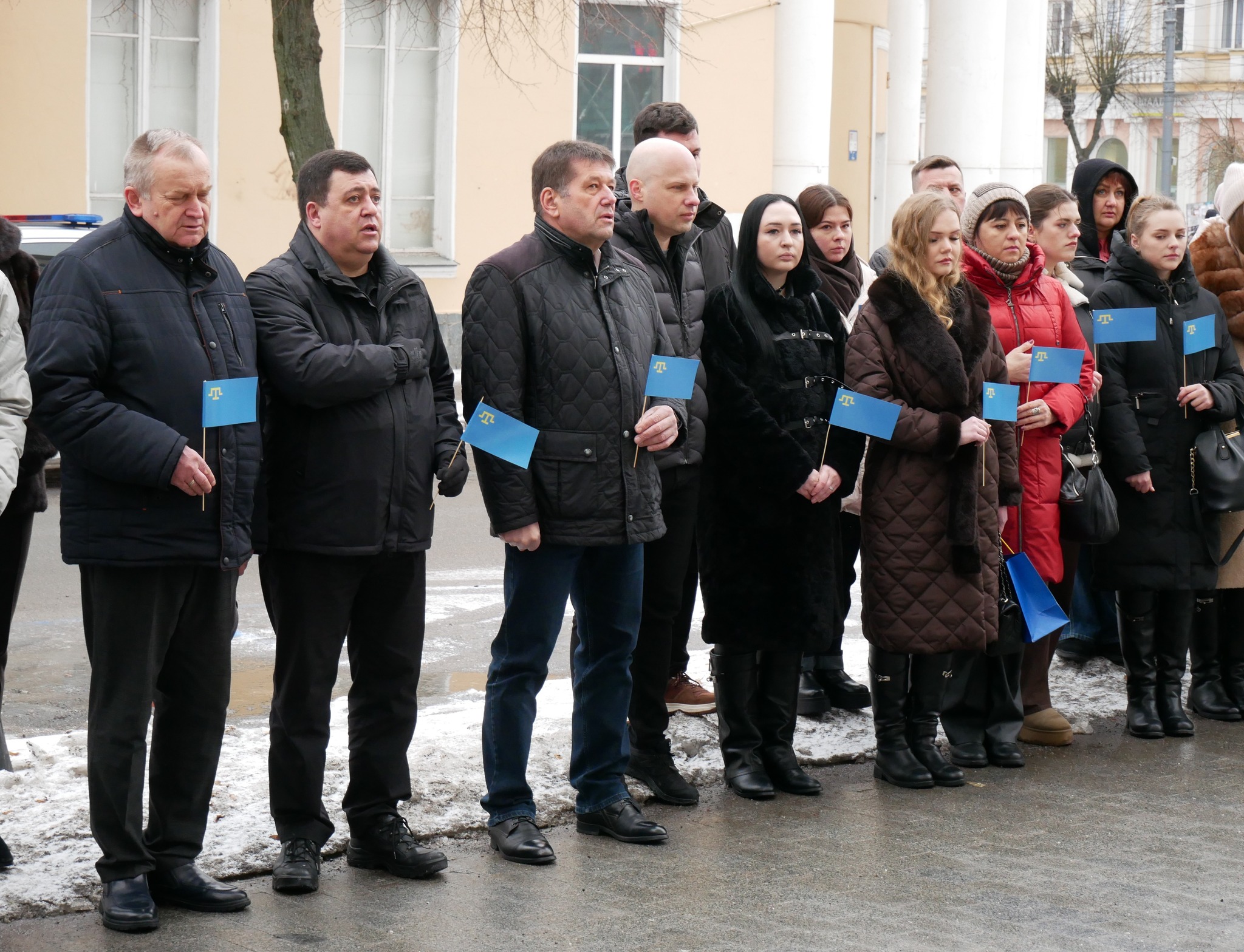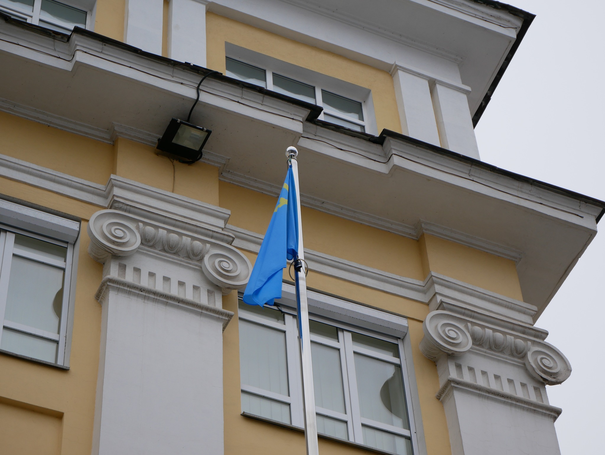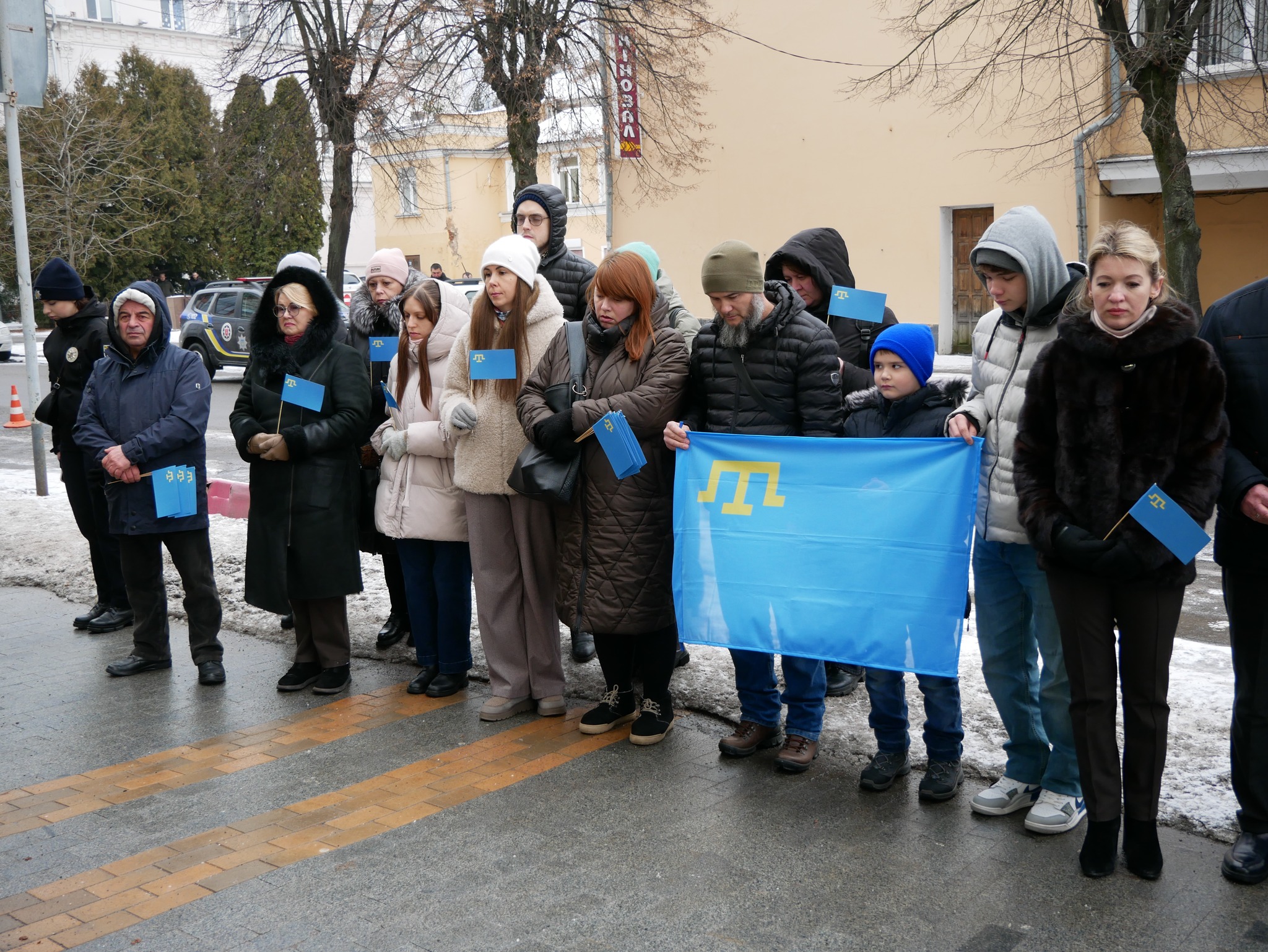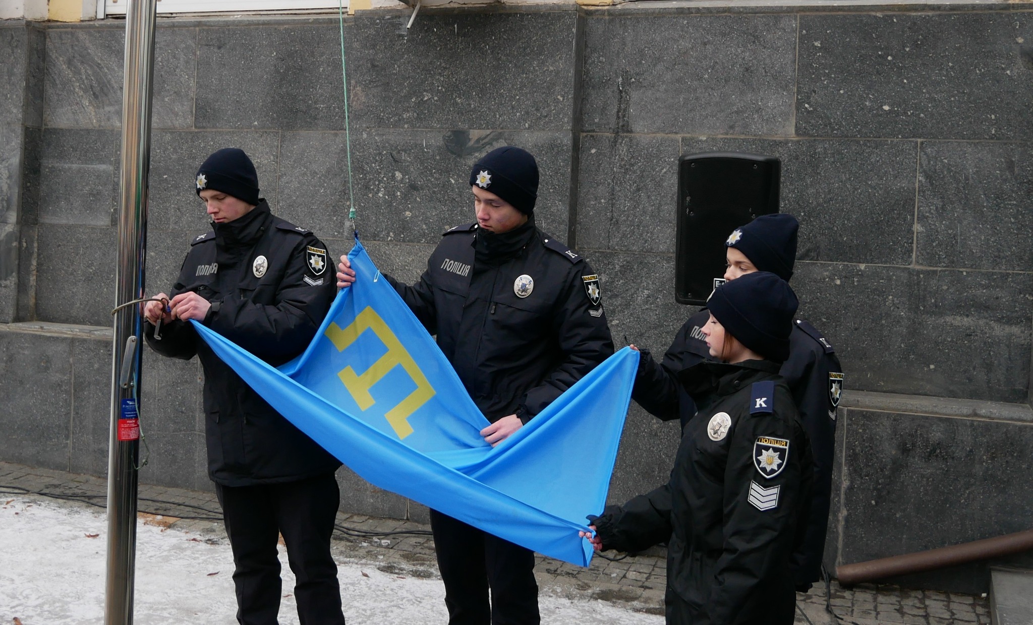 На знак підтримки у спільній боротьбі за права і свободу, біля приміщення обласної військової адміністрації підняли національний прапор кримськотатарського народу.