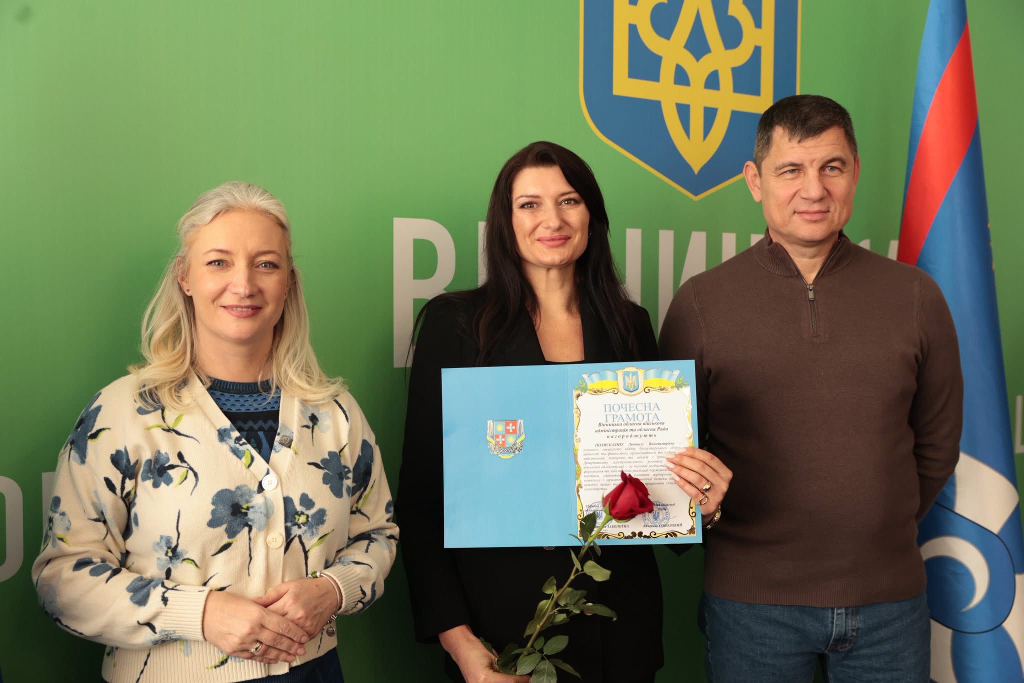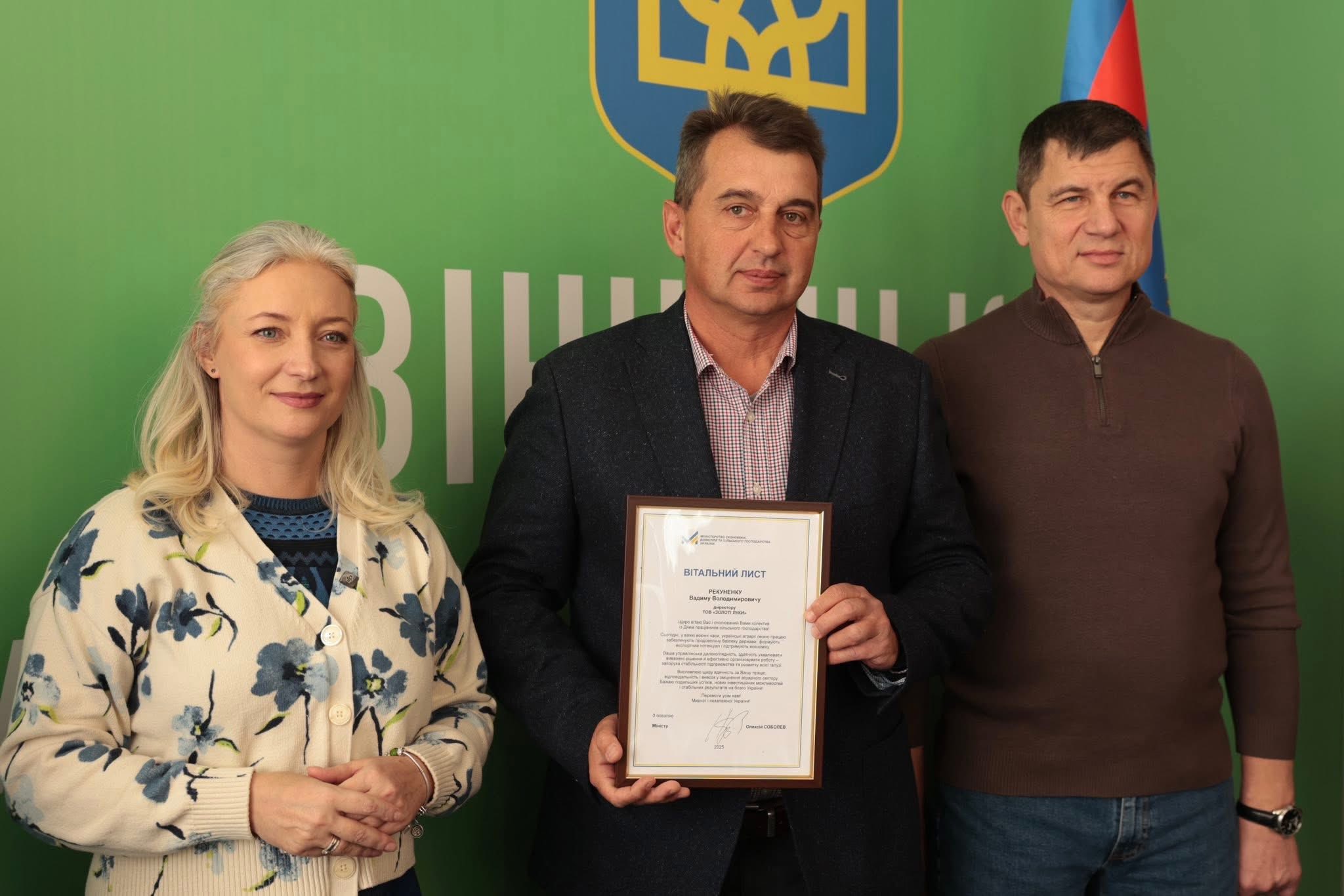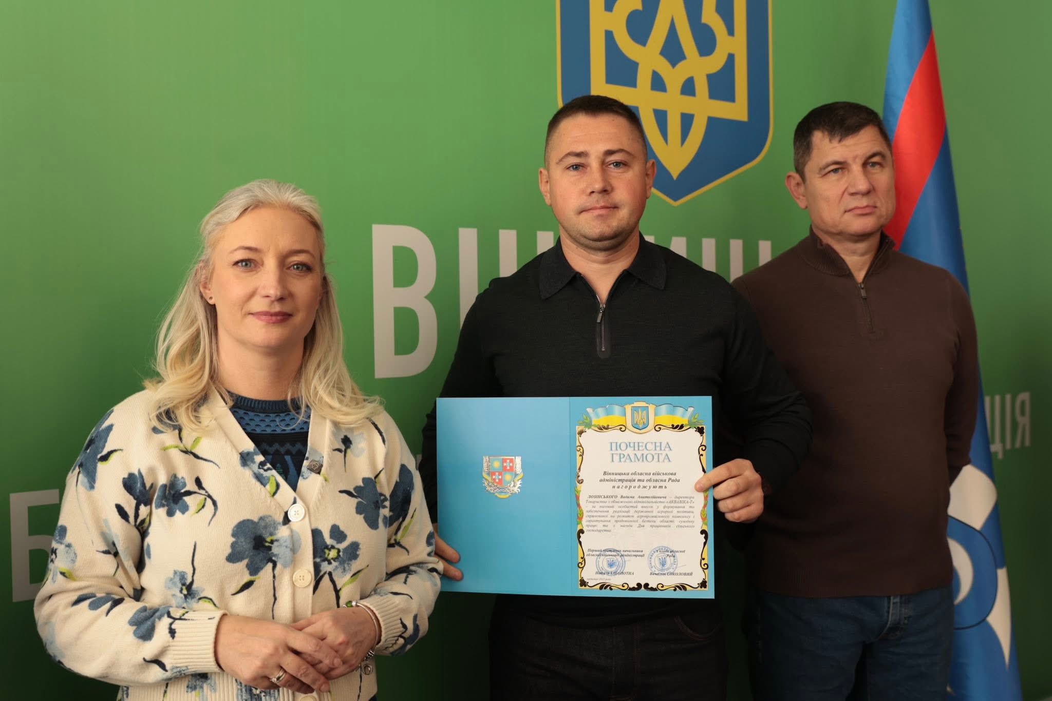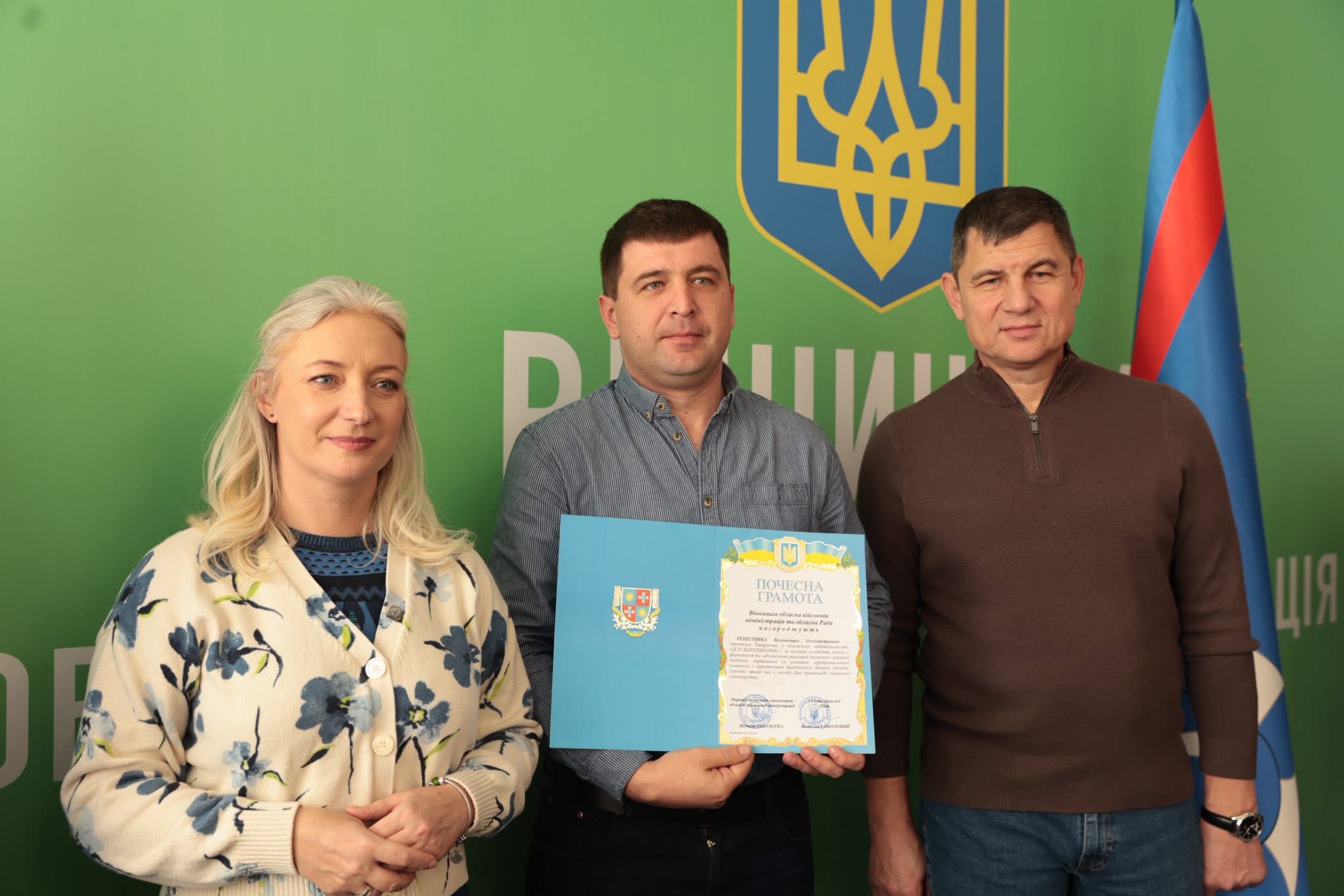 Щорічно у третю неділю листопада в Україні відзначають День працівників сільського господарства. З цієї нагоди Перша заступниця начальника ОВА Наталя Заболотна та заступник голови обласної Ради Анатолій Ткач вітальними листами Міністерства економіки, довкілля та сільського господарства України, а також почесними грамотами Вінницької обласної військової адміністрації та Вінницької обласної Ради нагородили сільськогосподарські колективи області. Також до заходу долучився заступник начальника ОВА Сергій Здітовецький.