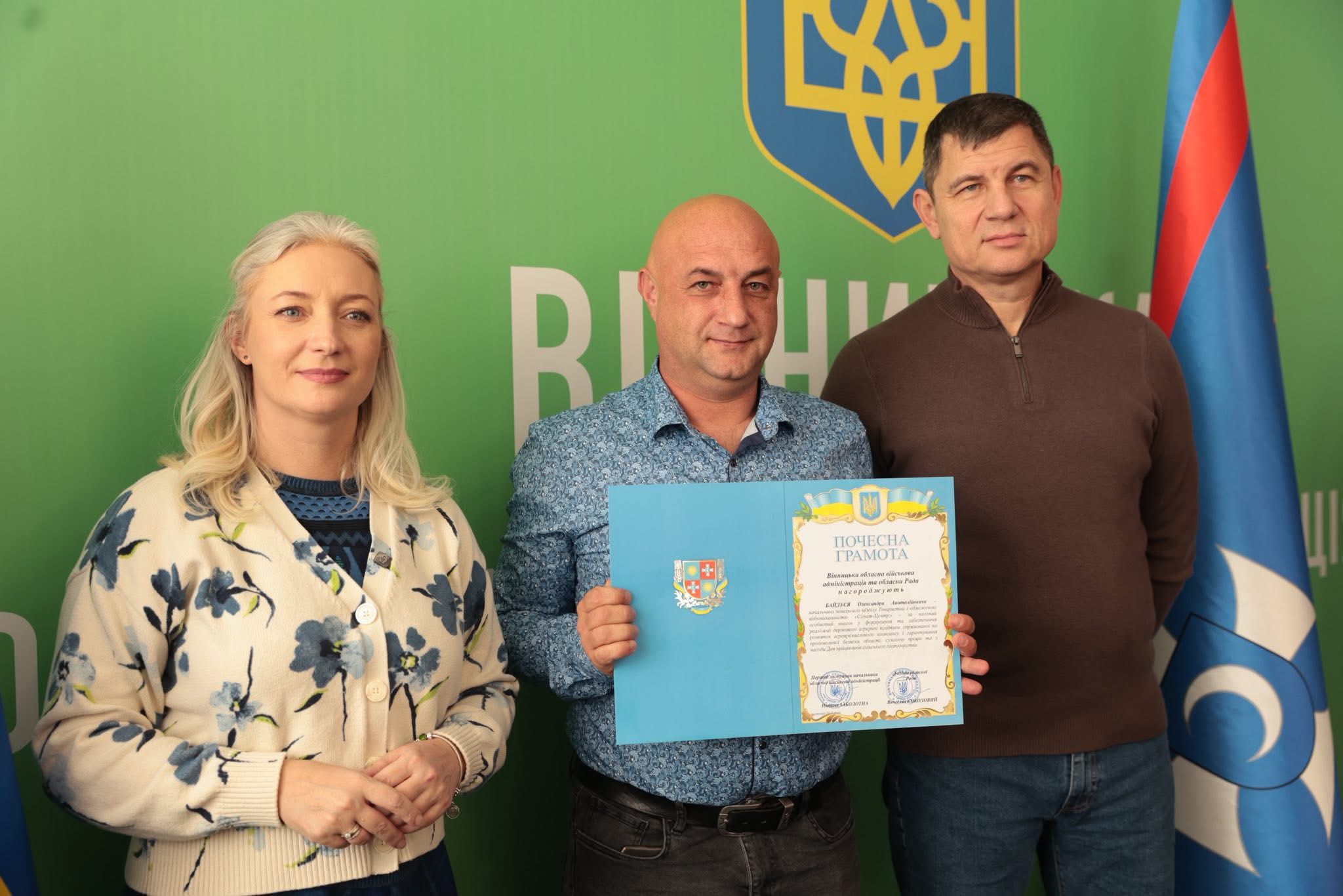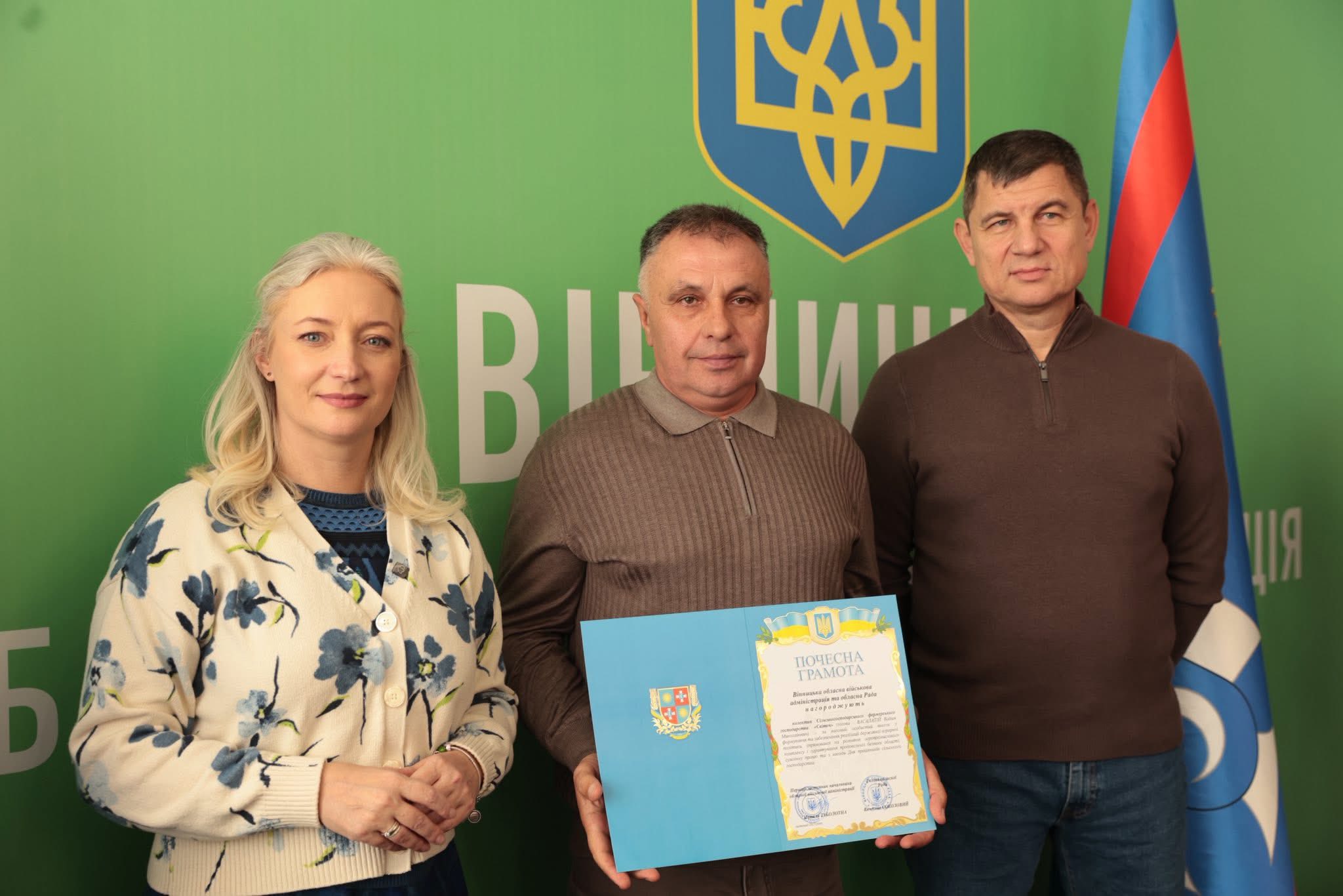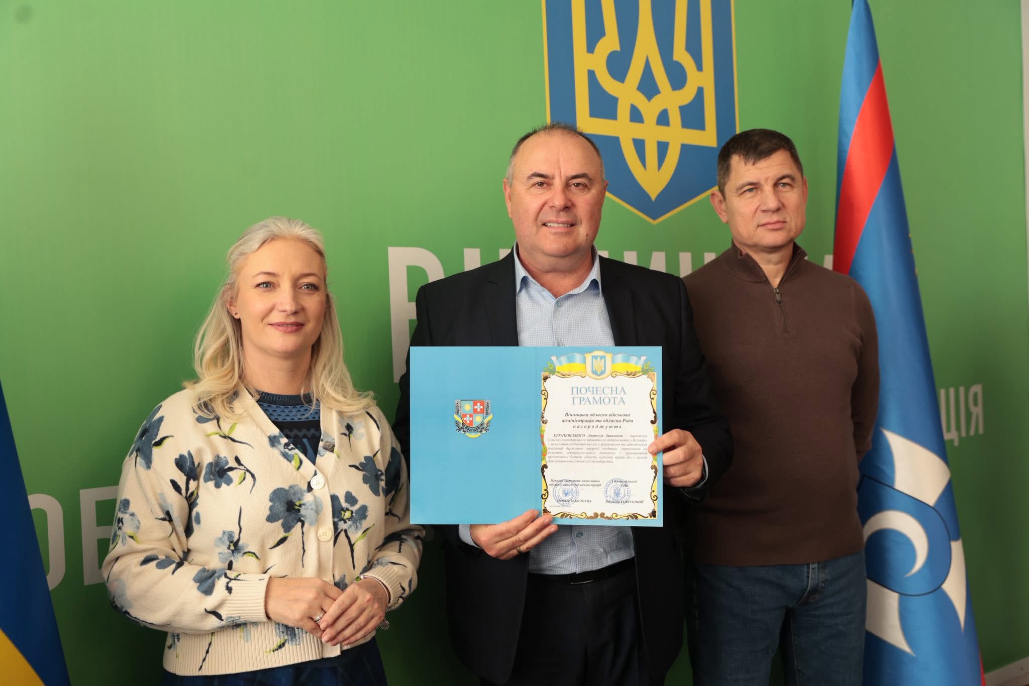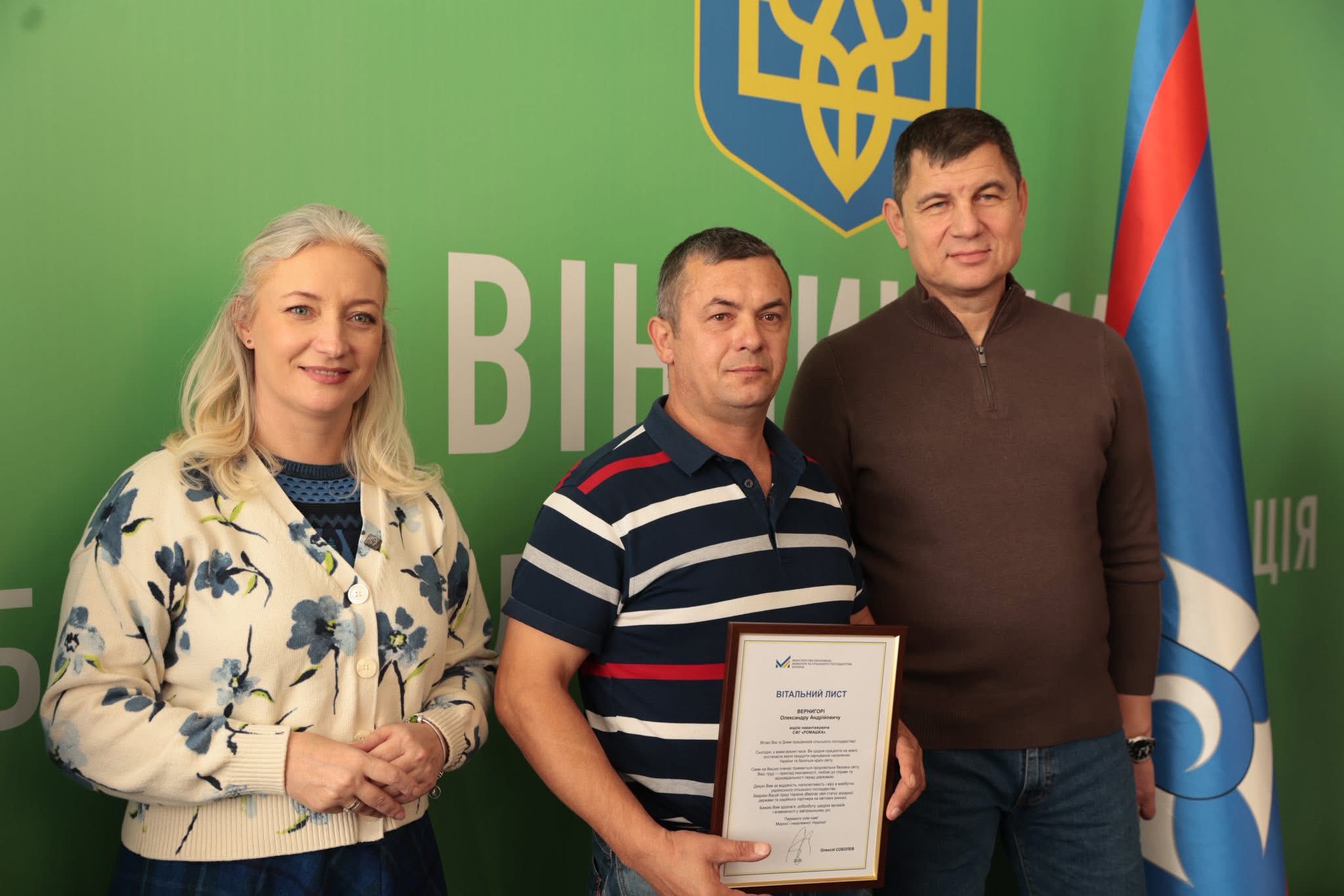 Щорічно у третю неділю листопада в Україні відзначають День працівників сільського господарства. З цієї нагоди Перша заступниця начальника ОВА Наталя Заболотна та заступник голови обласної Ради Анатолій Ткач вітальними листами Міністерства економіки, довкілля та сільського господарства України, а також почесними грамотами Вінницької обласної військової адміністрації та Вінницької обласної Ради нагородили сільськогосподарські колективи області. Також до заходу долучився заступник начальника ОВА Сергій Здітовецький.