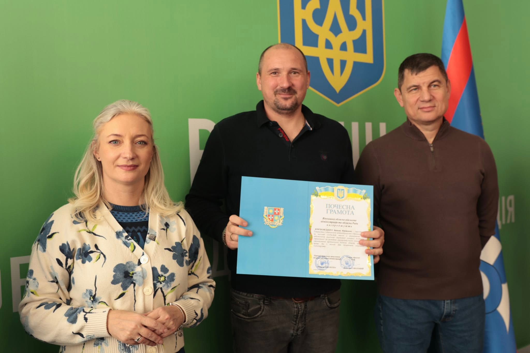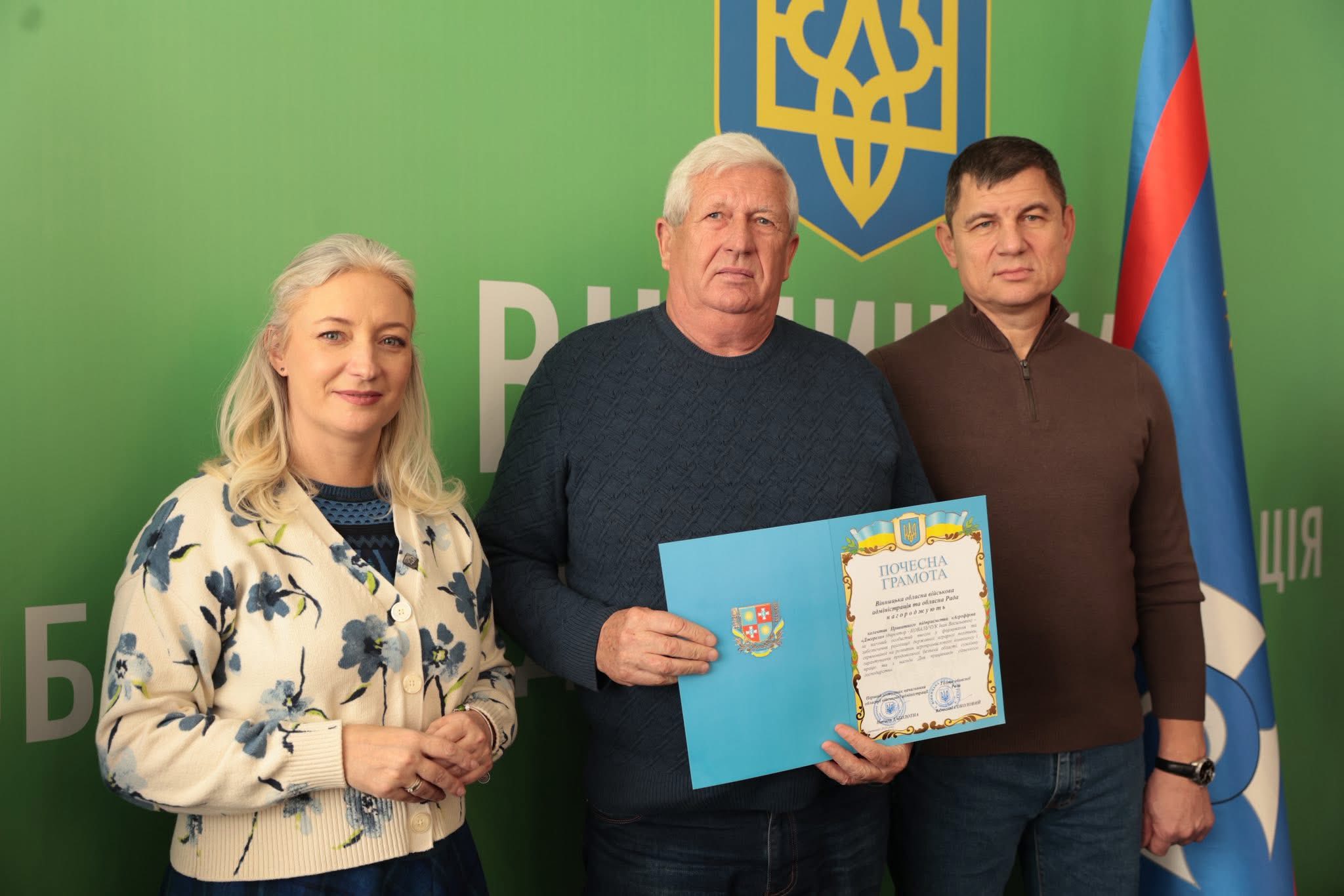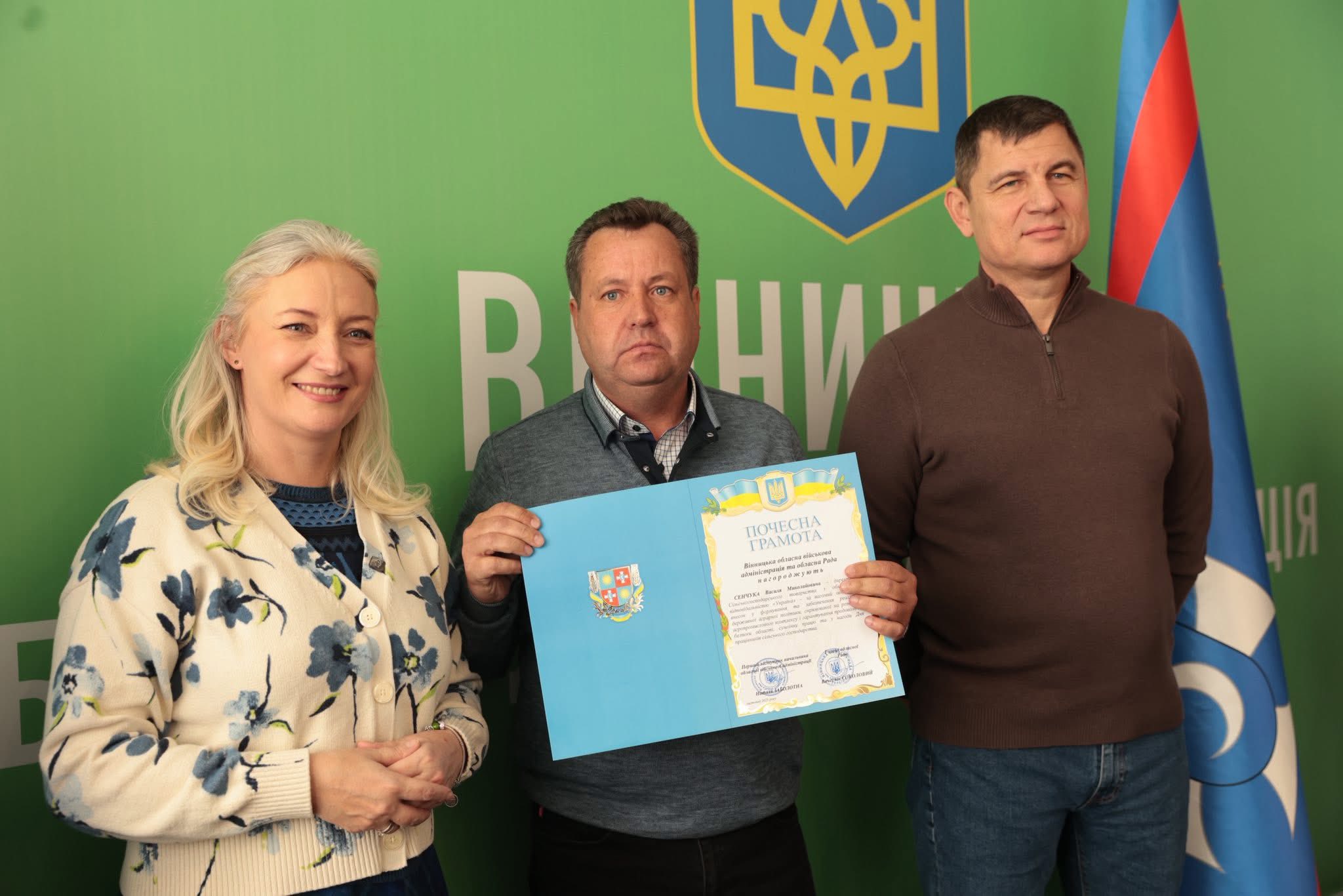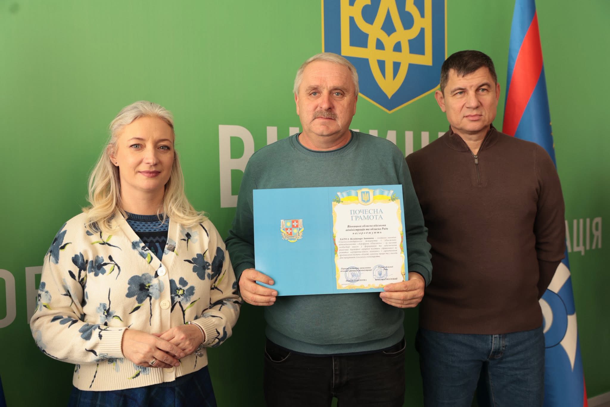 Щорічно у третю неділю листопада в Україні відзначають День працівників сільського господарства. З цієї нагоди Перша заступниця начальника ОВА Наталя Заболотна та заступник голови обласної Ради Анатолій Ткач вітальними листами Міністерства економіки, довкілля та сільського господарства України, а також почесними грамотами Вінницької обласної військової адміністрації та Вінницької обласної Ради нагородили сільськогосподарські колективи області. Також до заходу долучився заступник начальника ОВА Сергій Здітовецький.