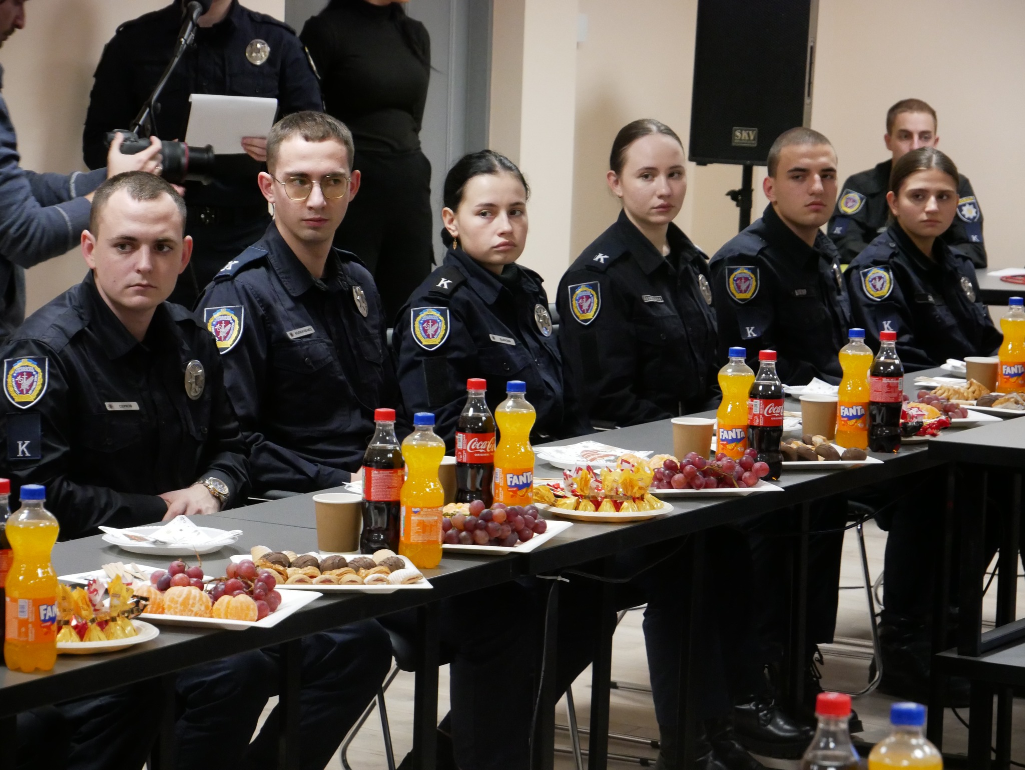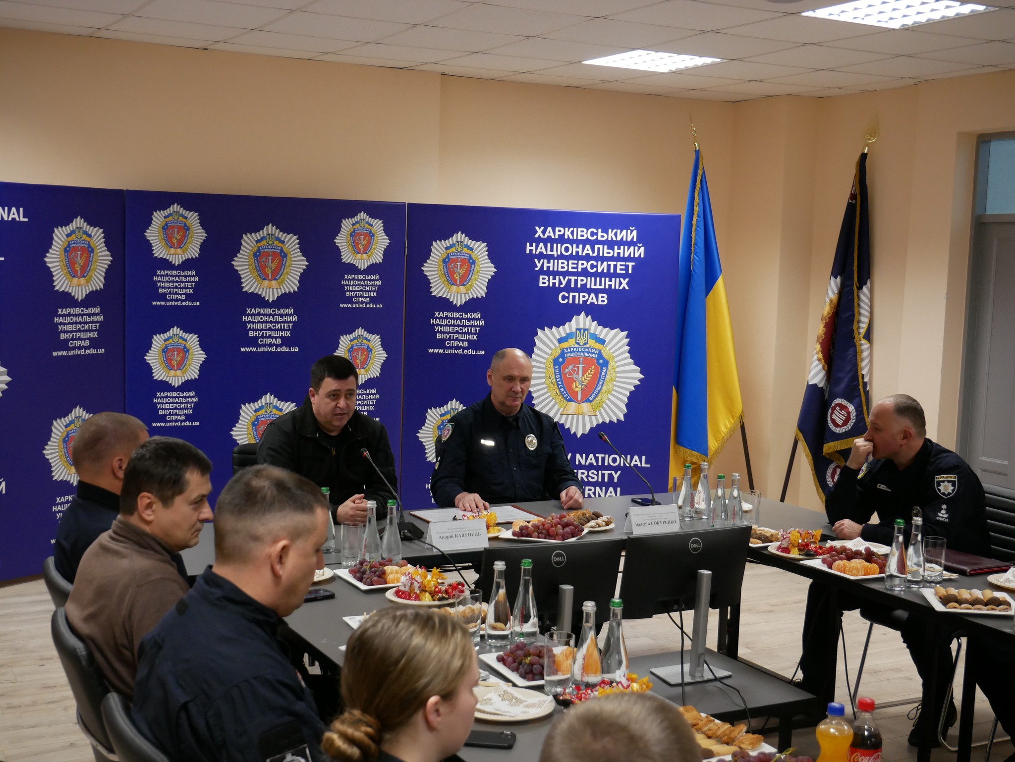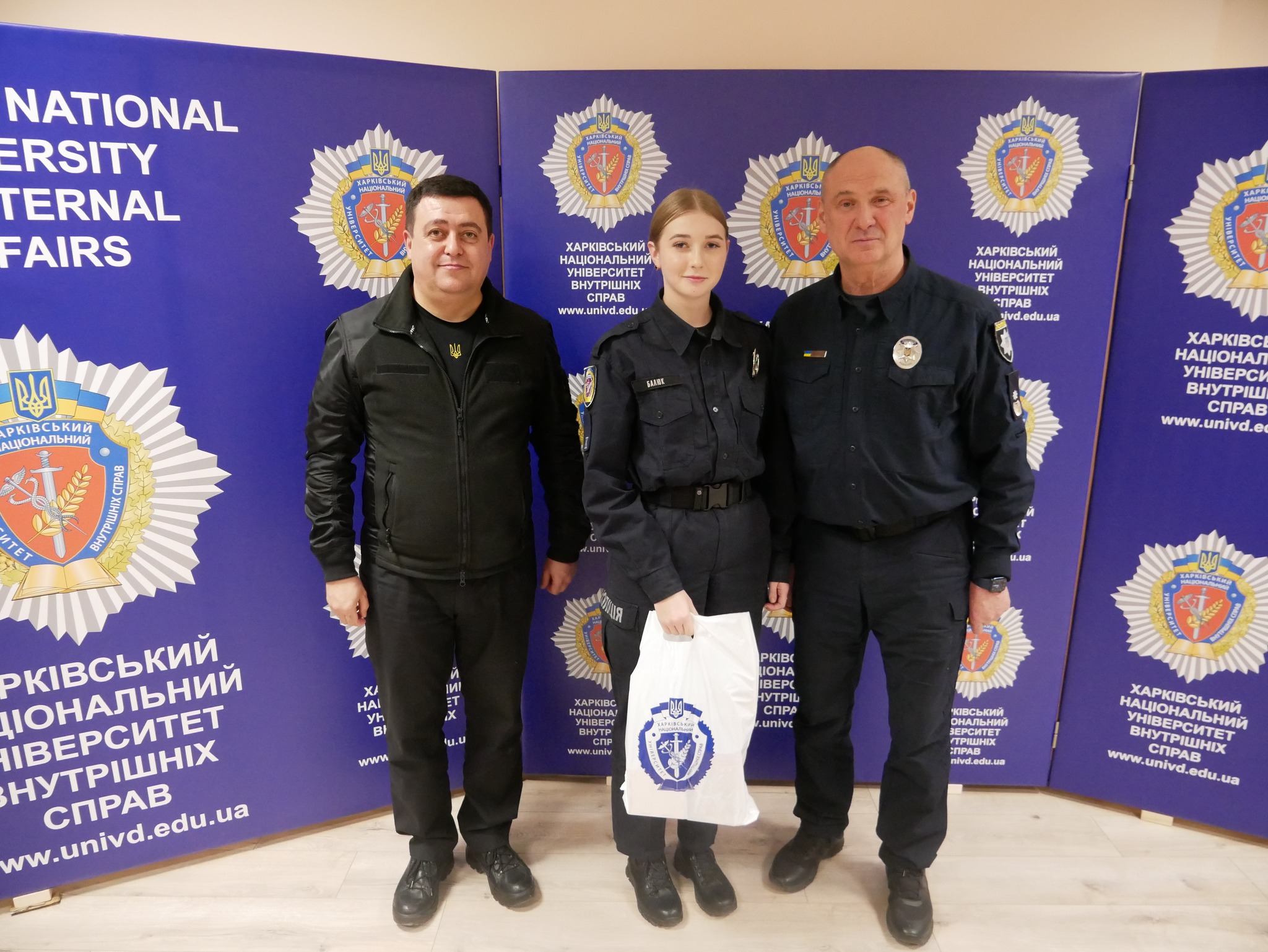Заступник начальника ОВА (CDTO) Андрій Кавунець разом із ректором ХНУВС, генералом поліції третього рангу Валерієм Сокуренком, вручили дітям подарунки — маленькі символи турботи, які зігріватимуть їх у зимові дні.