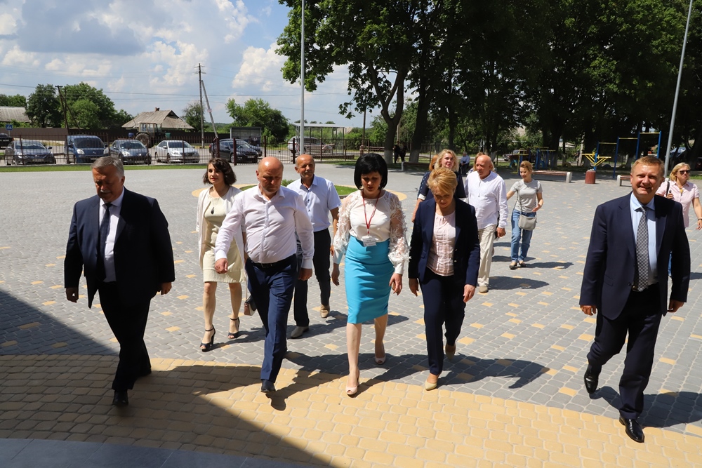 Міністр освіти поспілкувалась з вчителями, оглянула приміщення новозбудованої школи, сучасні шкільні кабінети, обладнані відповідно до стандартів НУШ і вимог часу, аби процес навчання був цікавим і захоплюючим.