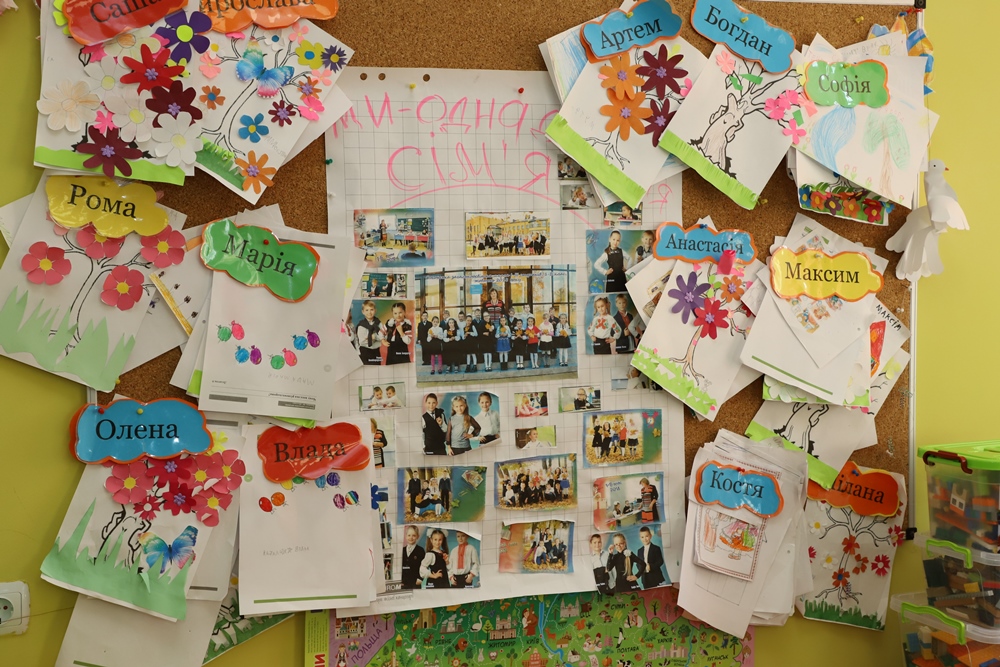 В класах для наймолодших учнів – більш ігрова та дитяча атмосфера. Тут більше немає рядів парт, вони згруповані по чотири, аби діти сиділи обличчями один до одного. Є іграшки, лего, «прапорці настрою», а також багато милих табличок, які закликають школярів бути охайними, ділиться один з одним, поступатися, не нервуватися і побільше посміхатися.