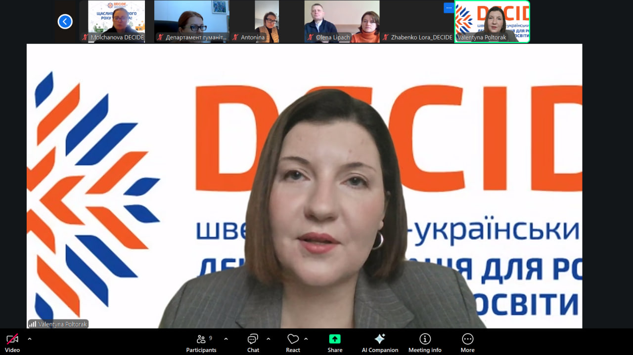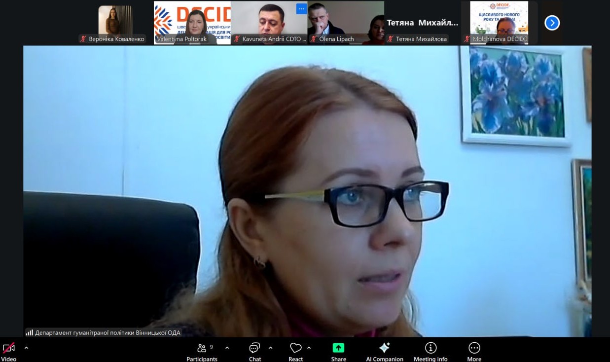 Вінницька область долучилася до обговорення участі регіону у ІІ етапі конкурсного відбору партнерських областей у межах реалізації Швейцарсько-українського проєкту DECIDE «Децентралізація для розвитку демократичної освіти».