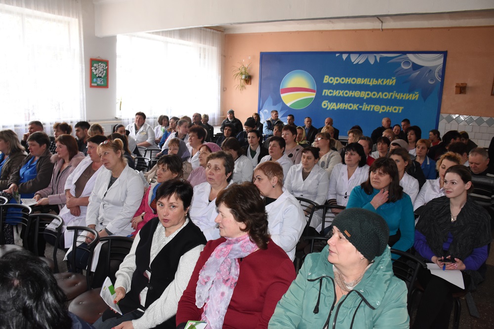 До зустрічі долучилися начальник управління праці та соціального захисту населення райдержадміністрації Надія Ходацька, перший заступник начальника Вінницького приміського об’єднаного управління пенсійного фонду України Вінницької області Тетяна Свиридович, директор КУ "Обласний пансіонат для осіб з інвалідністю та осіб похилого віку» Сергій Якубовський, керівник Вороновицького психоневрологічного інтернату Лілія Комар.
