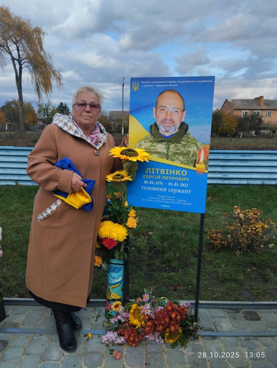Серед цих Героїв — її син, Сергій Петрович Літвінко. Головний сержант, стрілець-помічник гранатометника 2 мотопіхотного відділення 3 мотопіхотного взводу 3 мотопіхотної роти військової частини А2962.