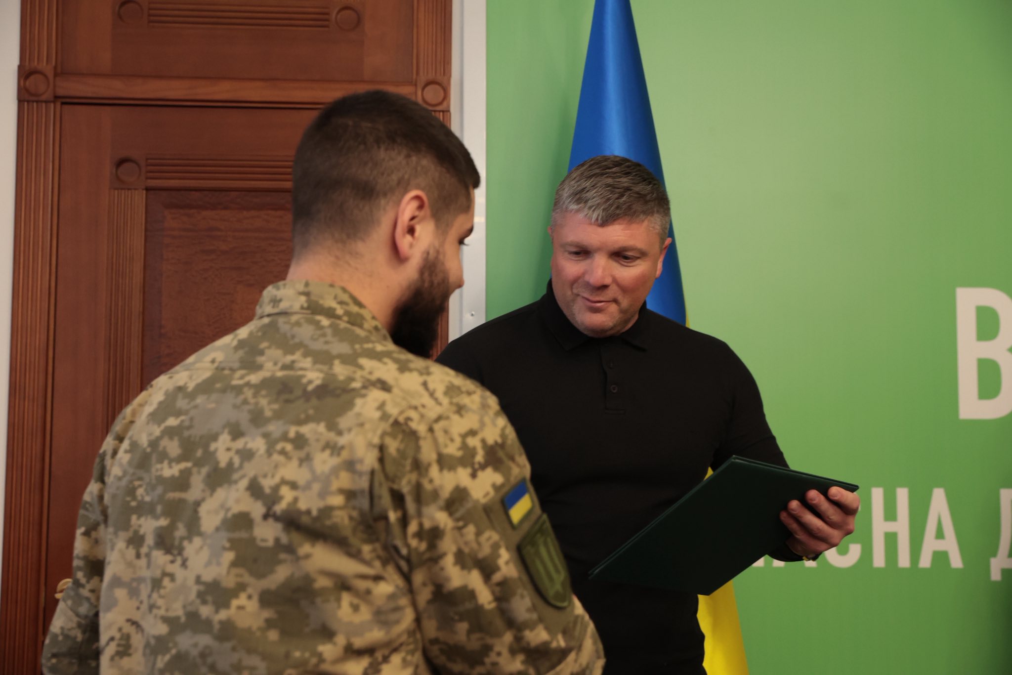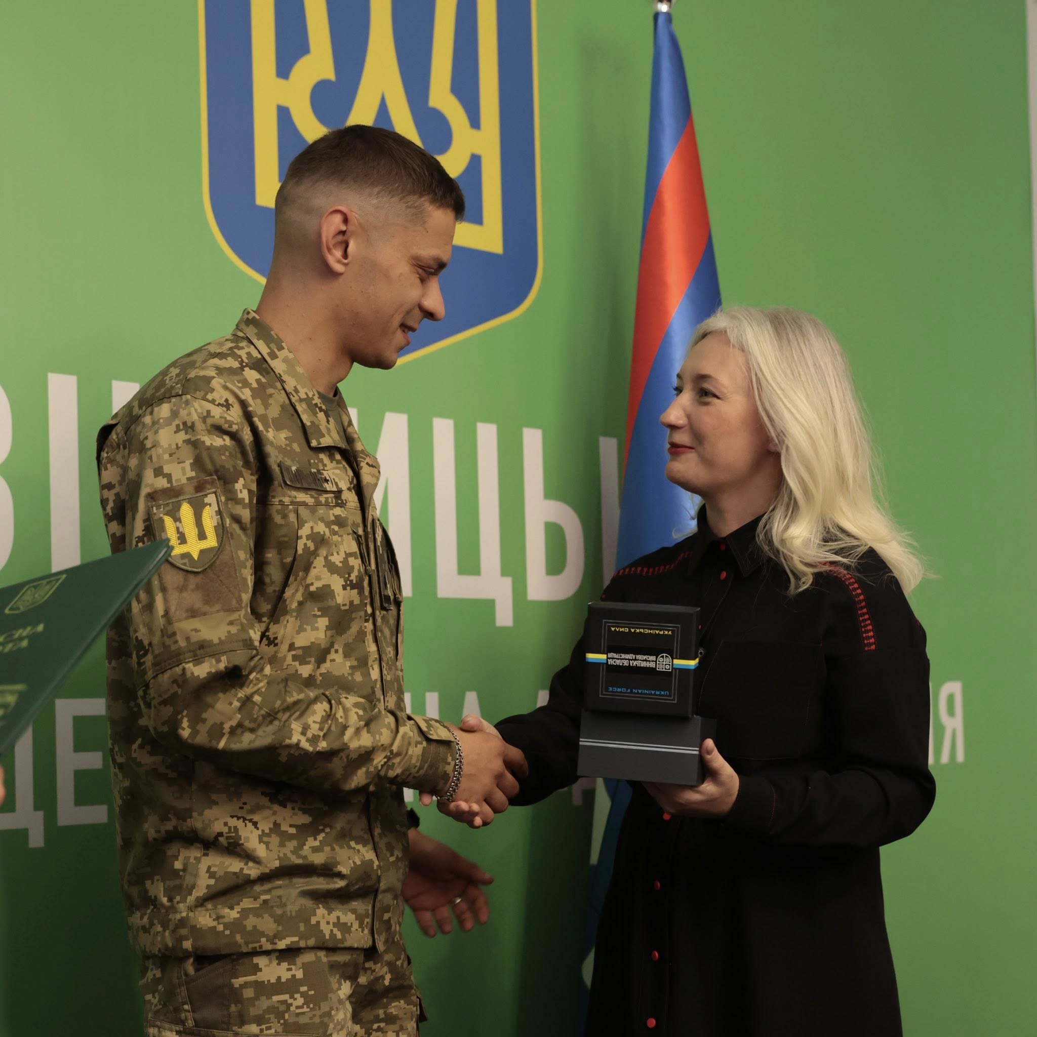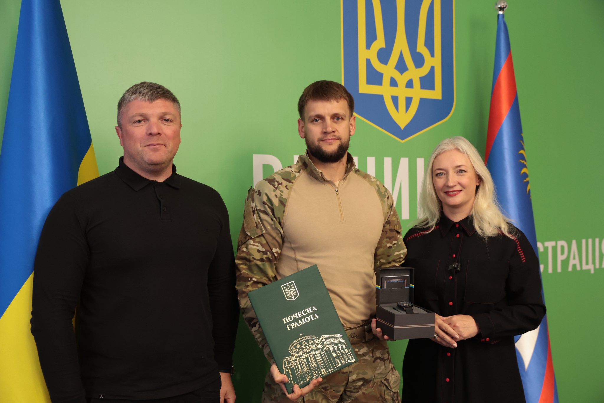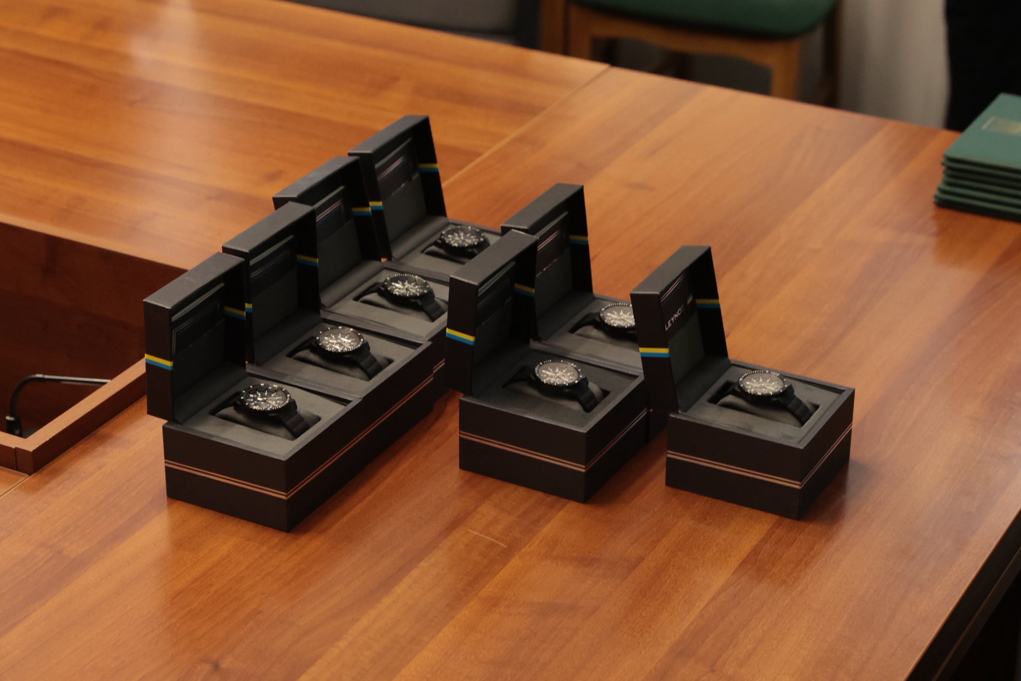 За самовіддану службу Перша заступниця начальника ОВА Наталя Заболотна та заступник начальника ОВА Олександр Піщик вручили військовим годинники з написом «Українська сила».