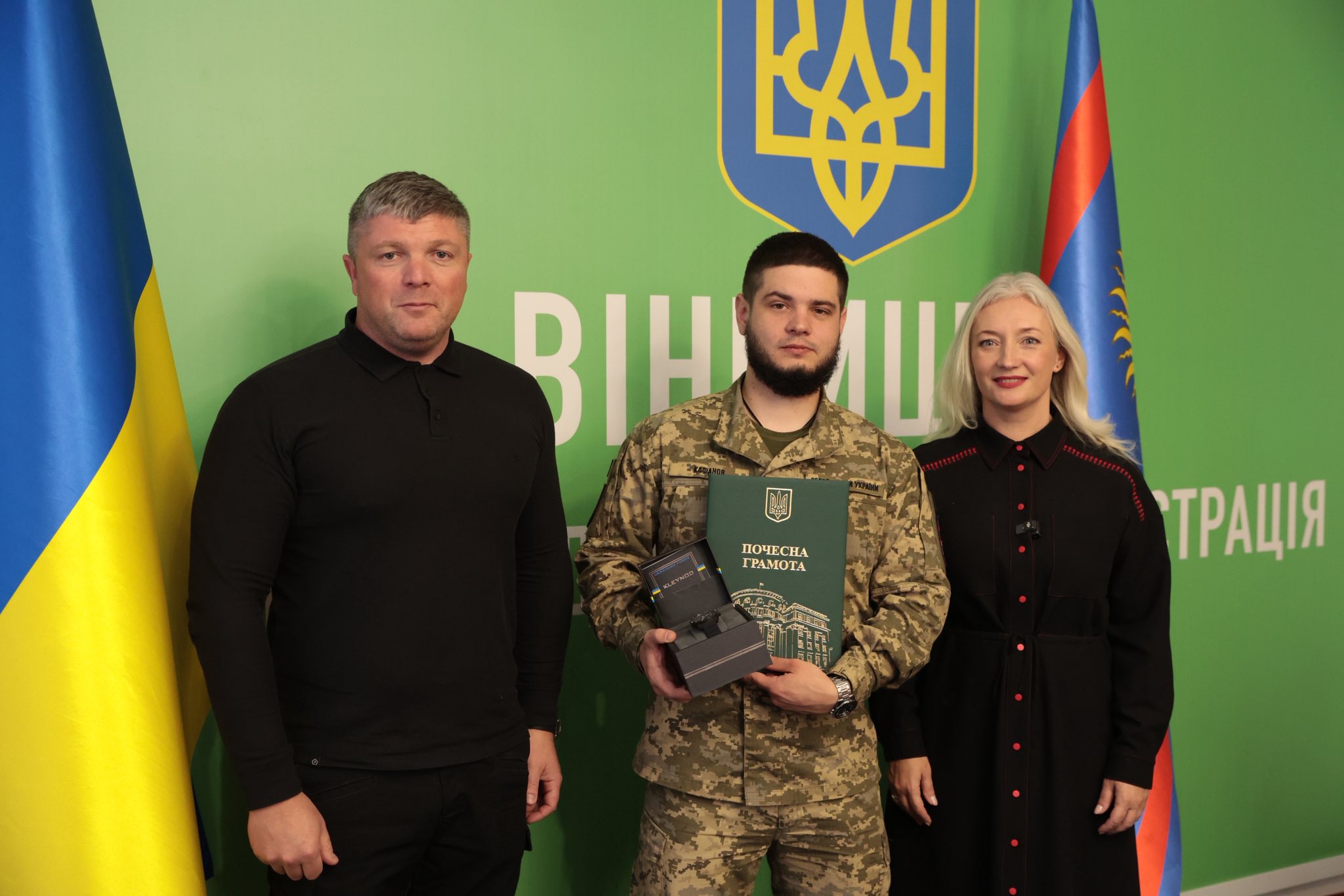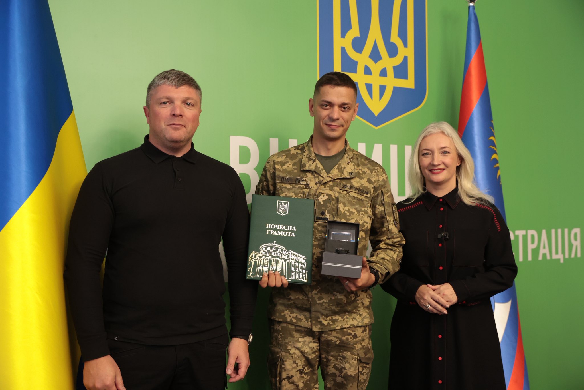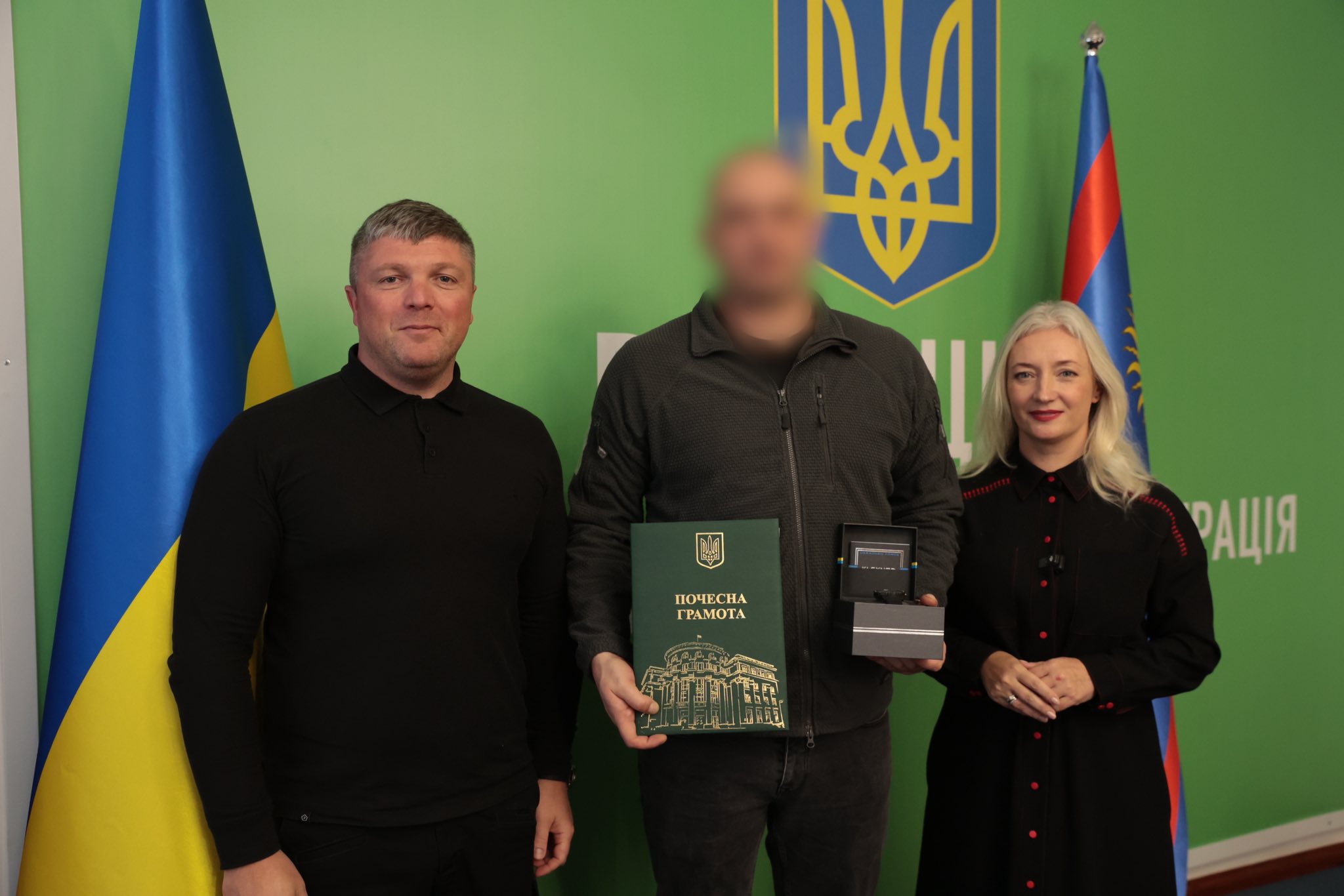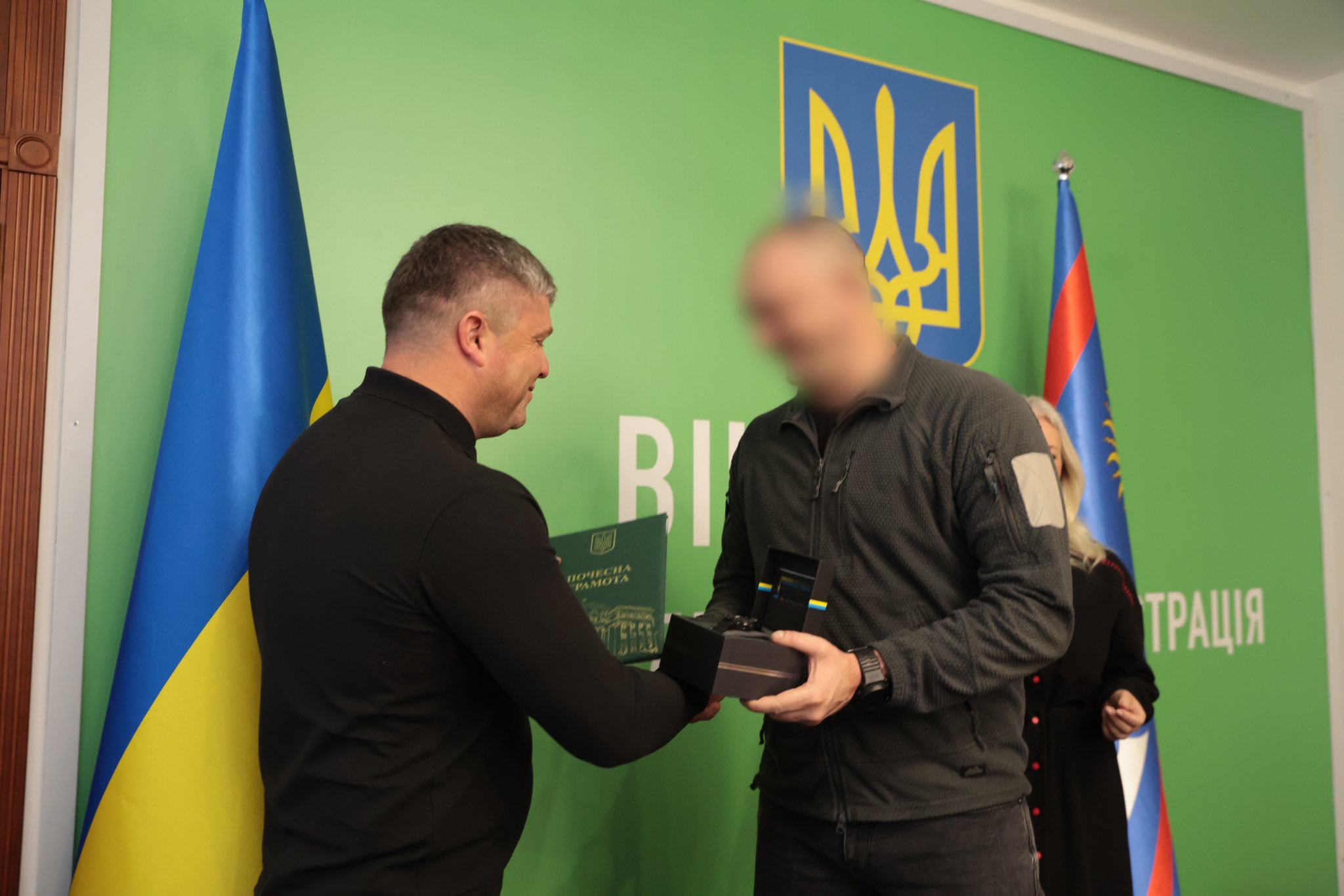 За самовіддану службу Перша заступниця начальника ОВА Наталя Заболотна та заступник начальника ОВА Олександр Піщик вручили військовим годинники з написом «Українська сила».