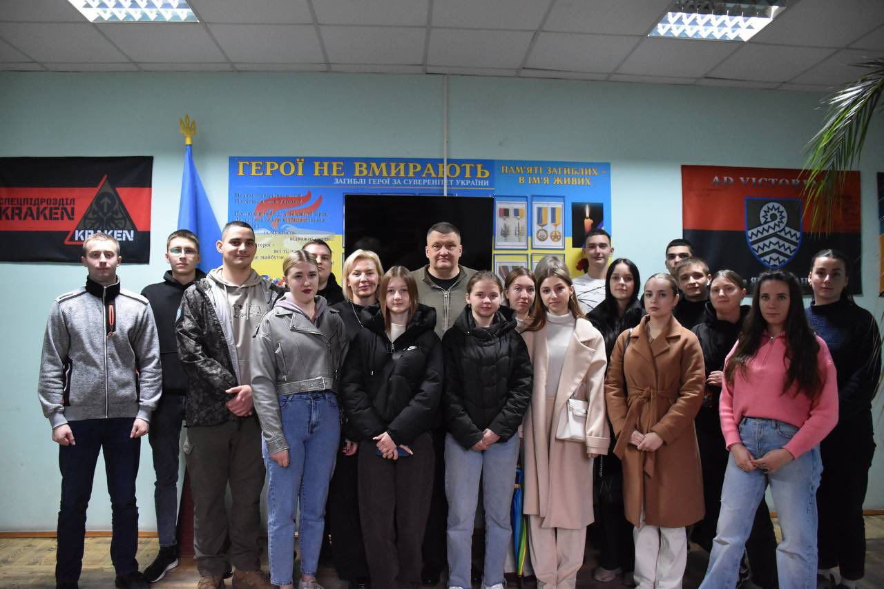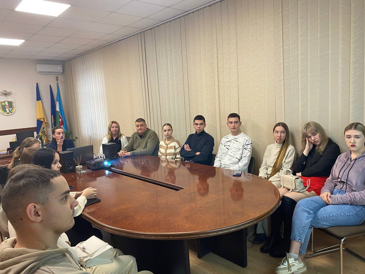 Під час зустрічі студенти ознайомилися зі структурою та особливостями роботи адміністрації, дізналися про щоденну діяльність підрозділів, основні напрямки роботи та ключові завдання у період воєнного стану.