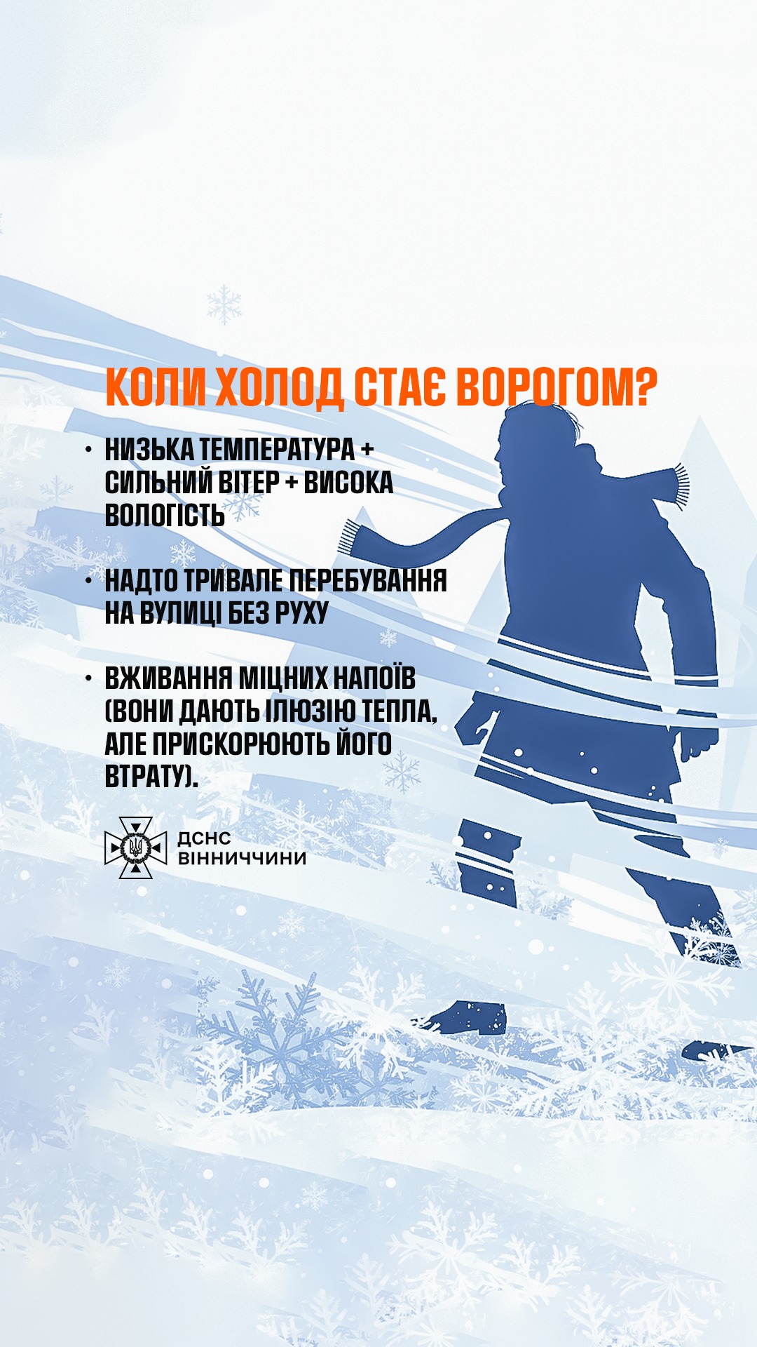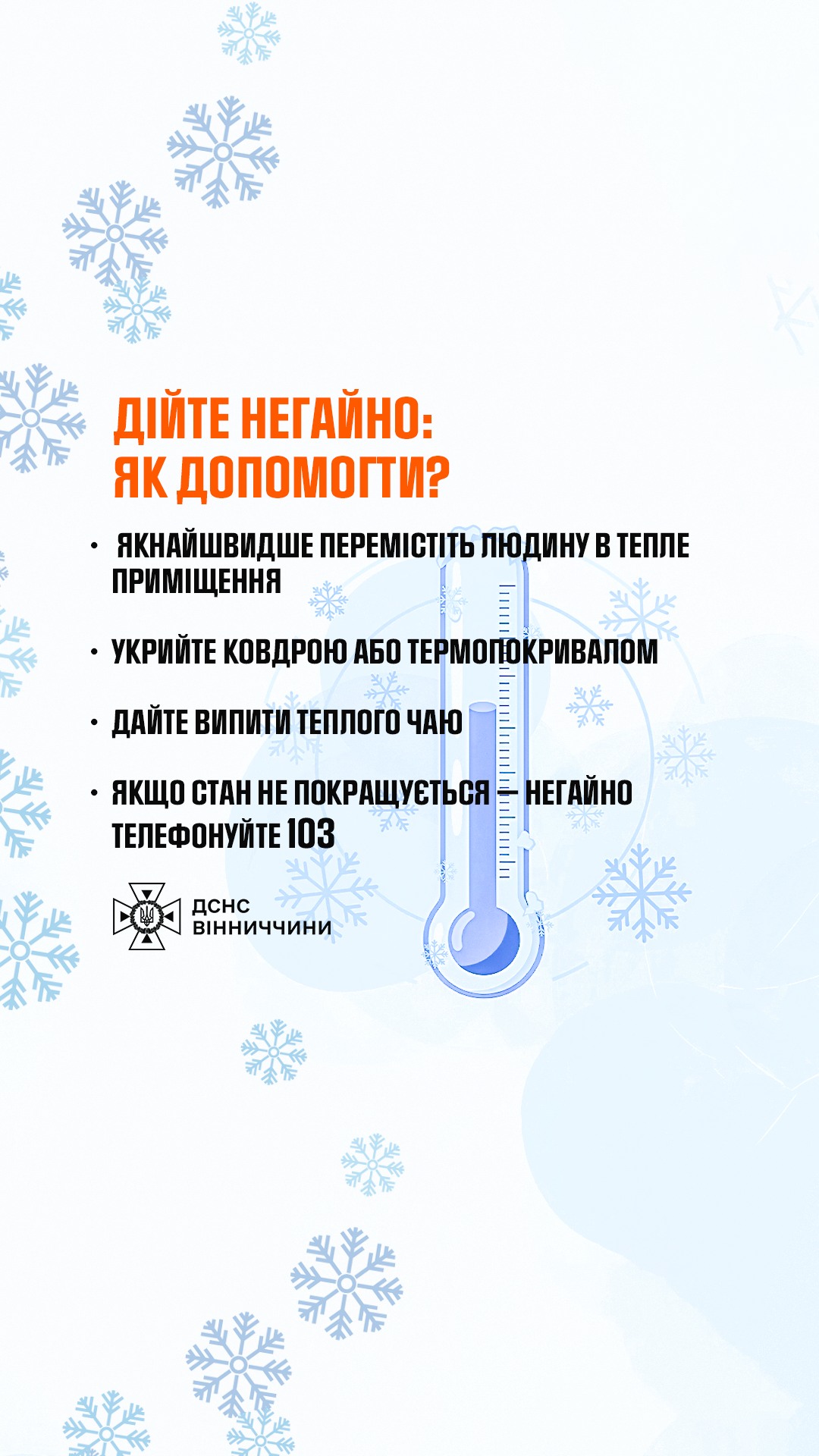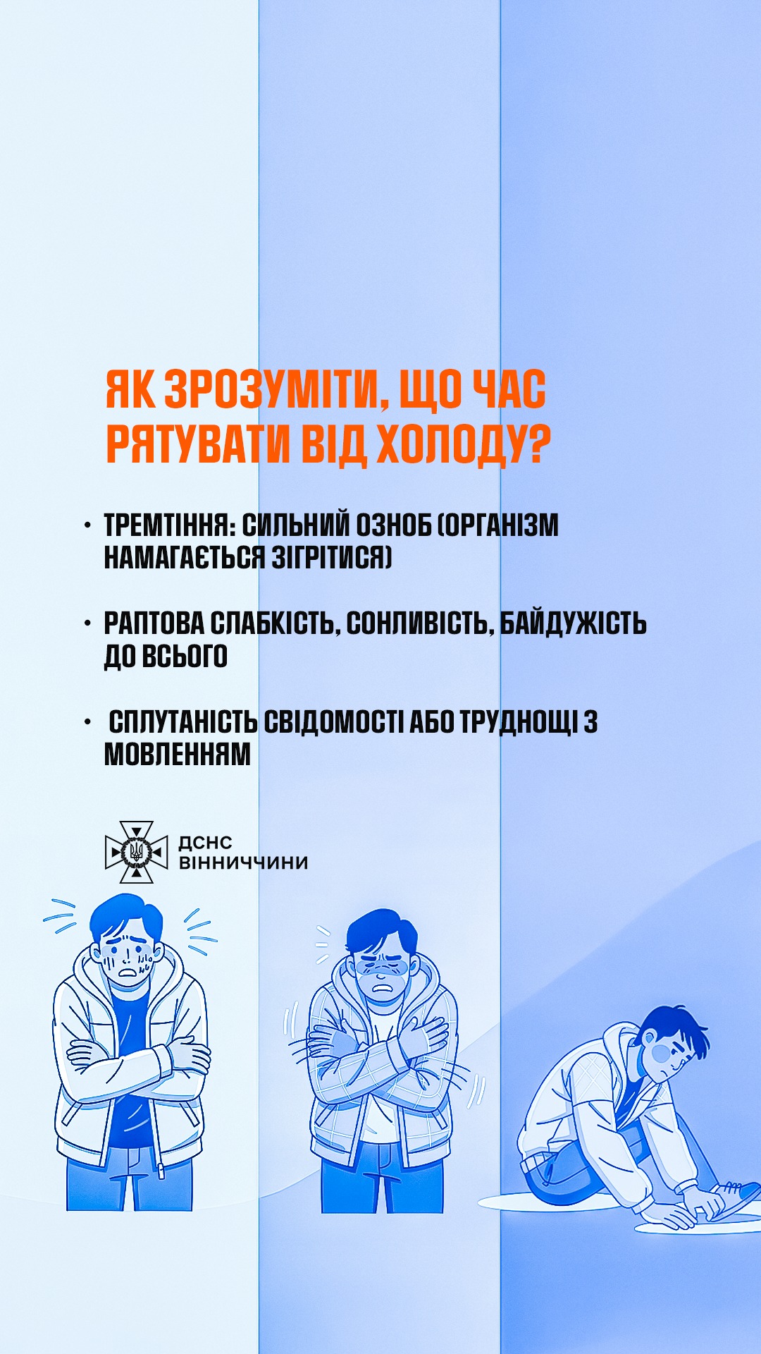Як повідомляють надзвичайники Вінниччини, переохолодження може настати непомітно. Тому важливо вчасно зігрітися та зробити перерву.