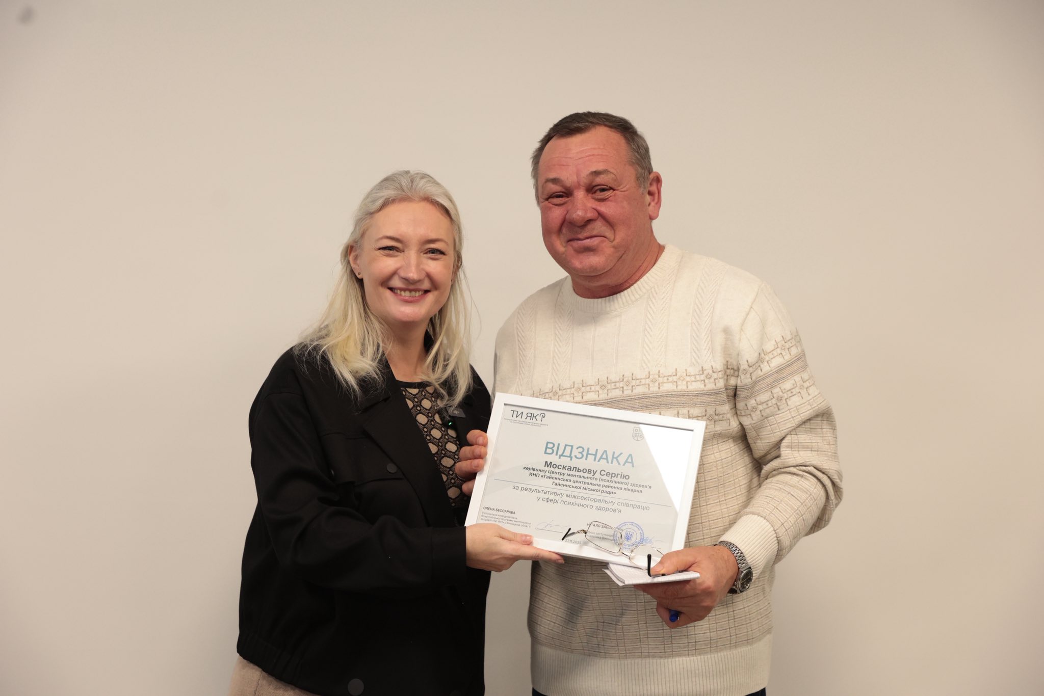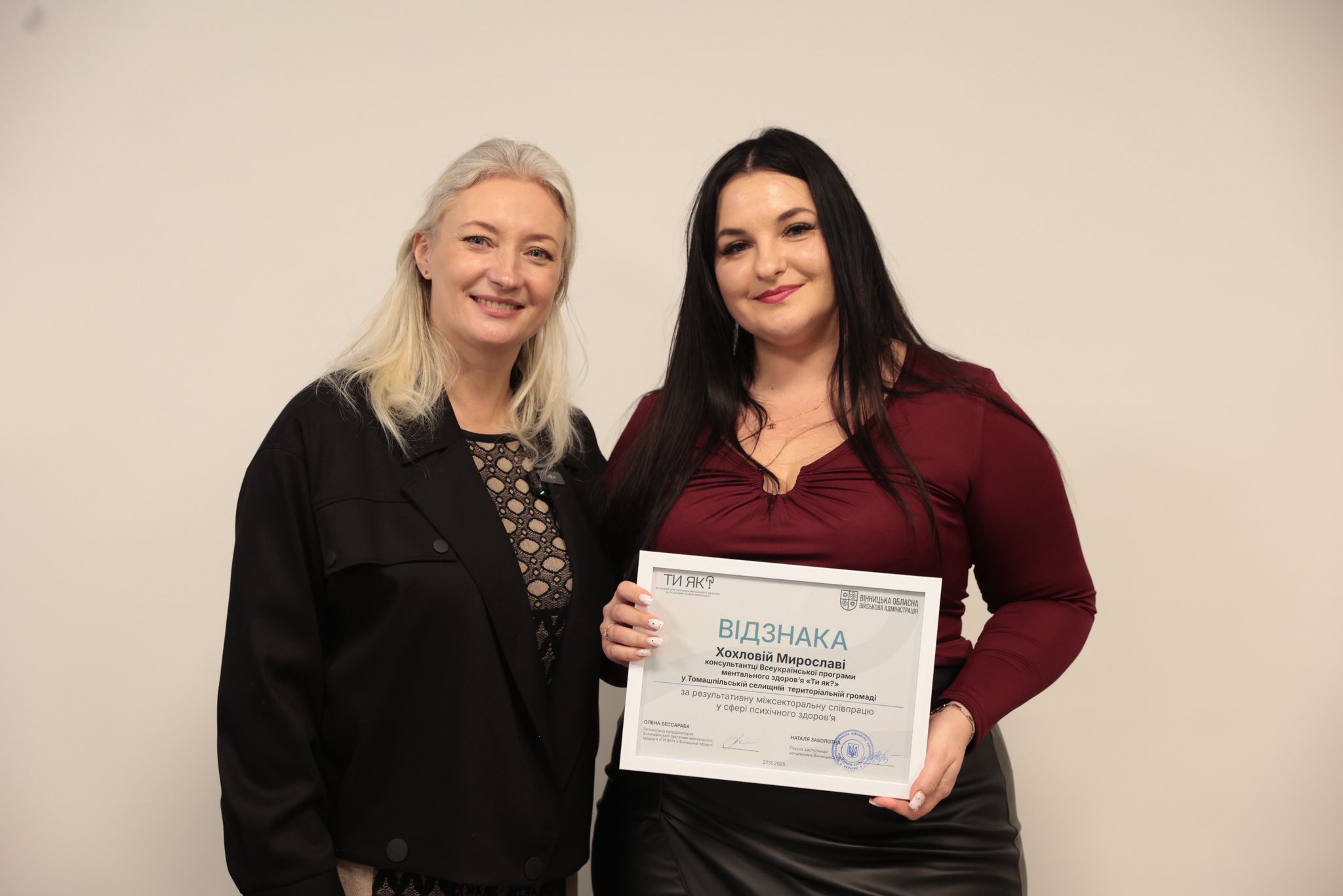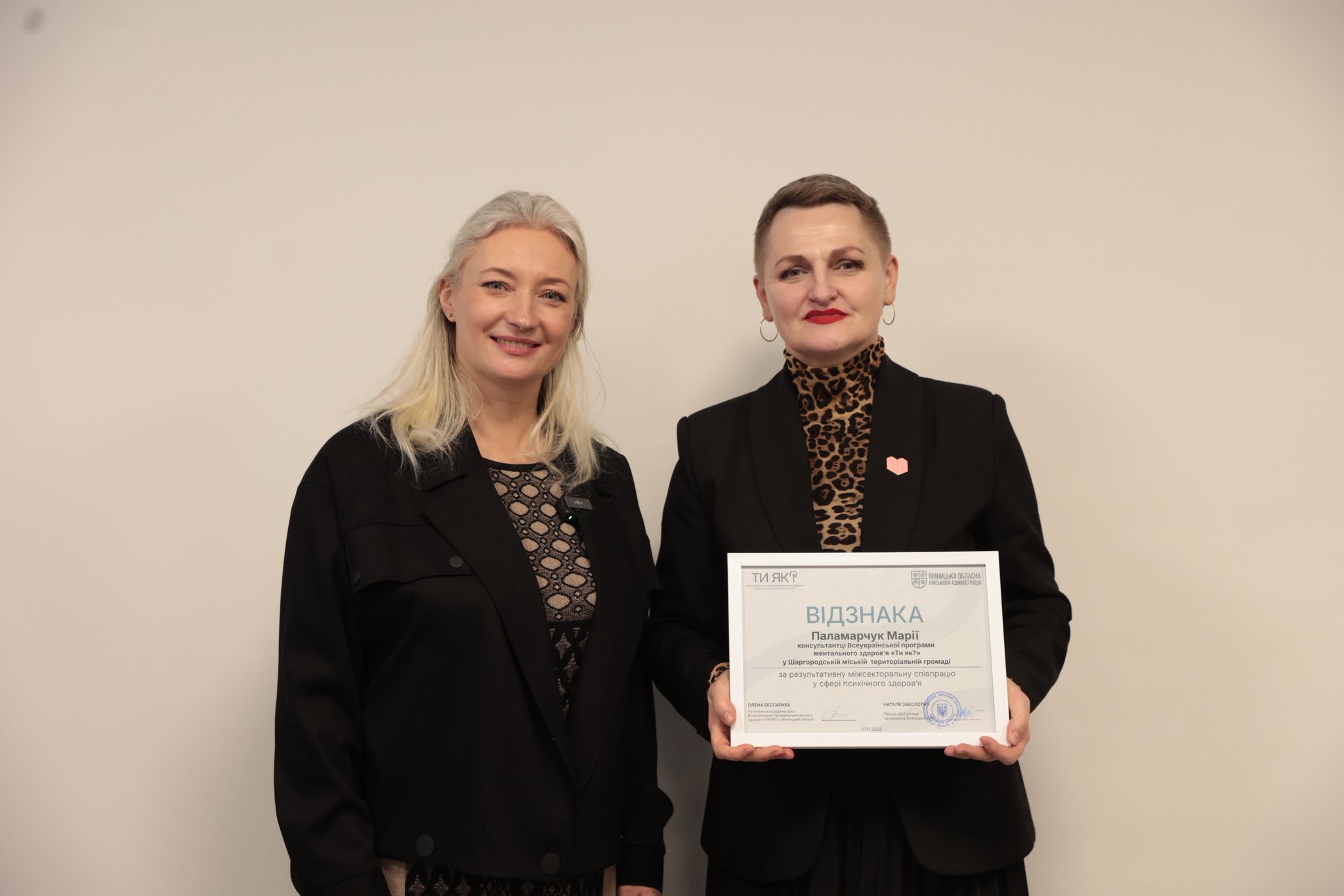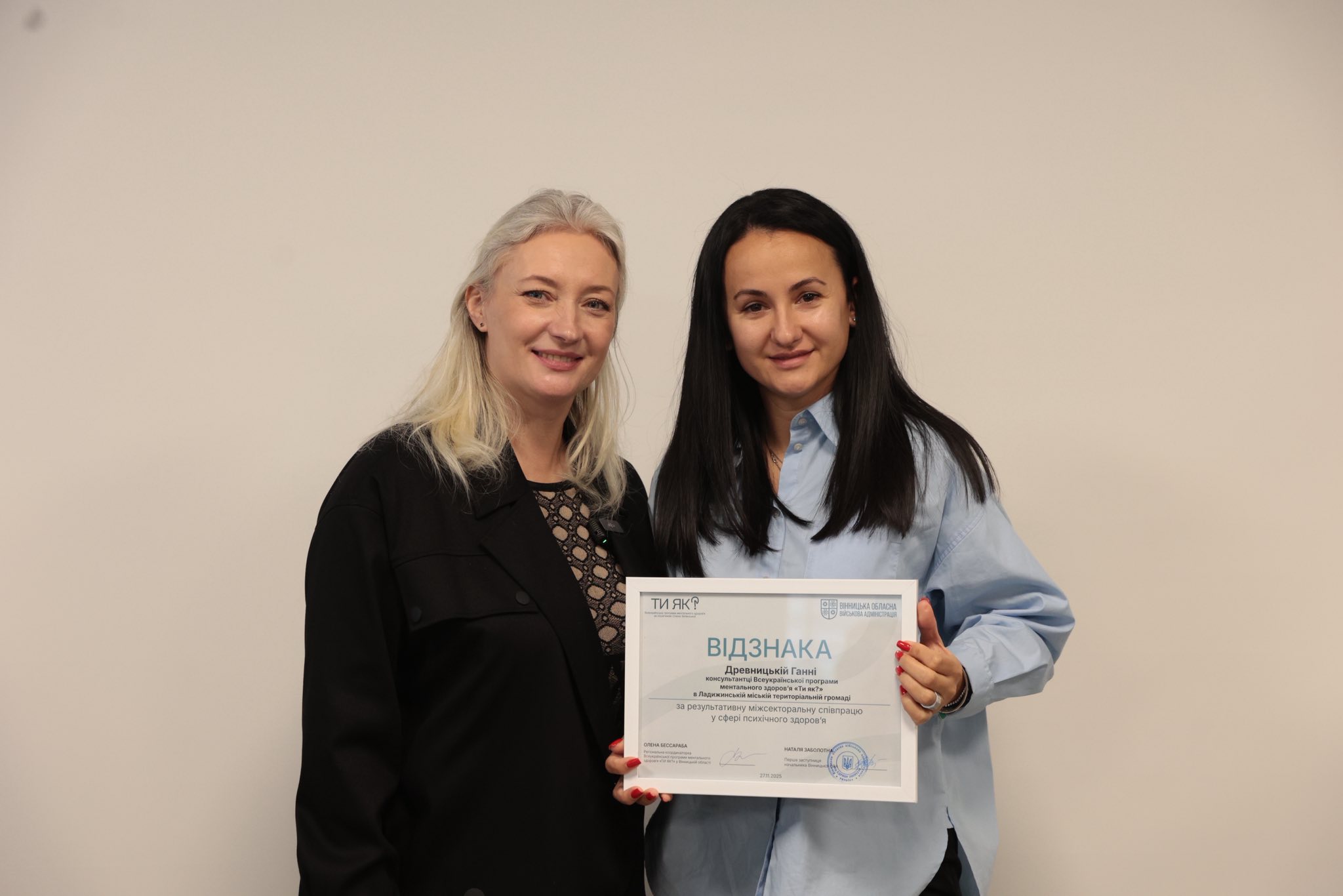 Під час зустрічі Наталя Заболотна вручила відзнаки «Сила вдячності» Координаційного центру з психічного здоров’я при Кабінеті Міністрів України та обласні відзнаки тим, хто щодня робить програму «Ти як?» живою і дієвою.