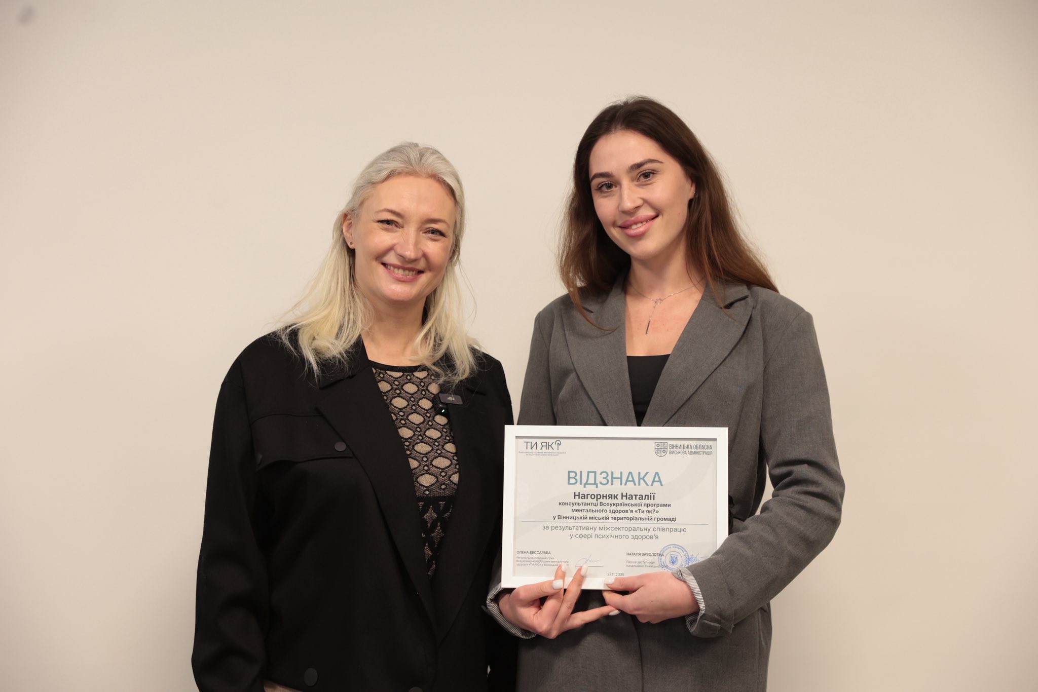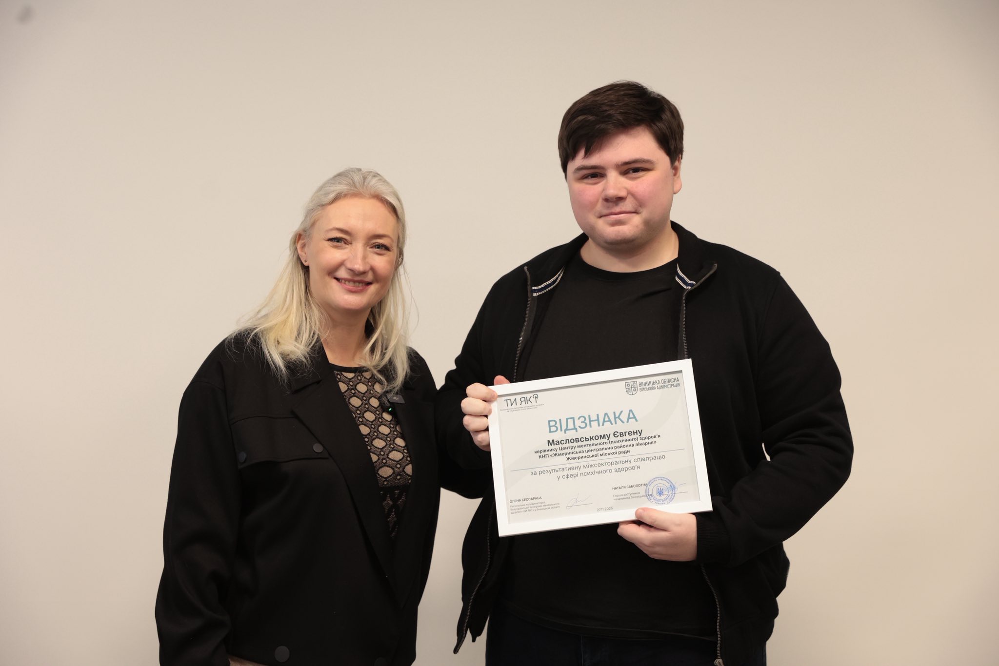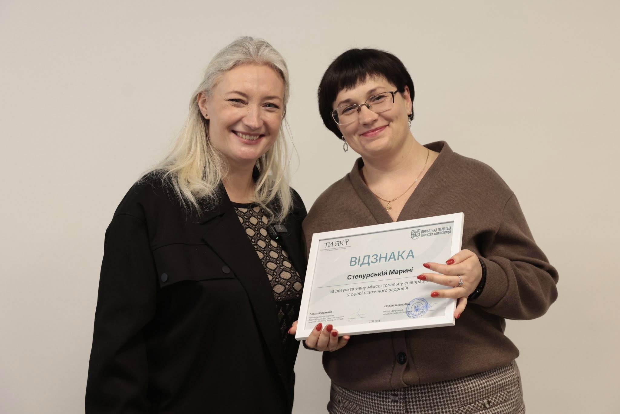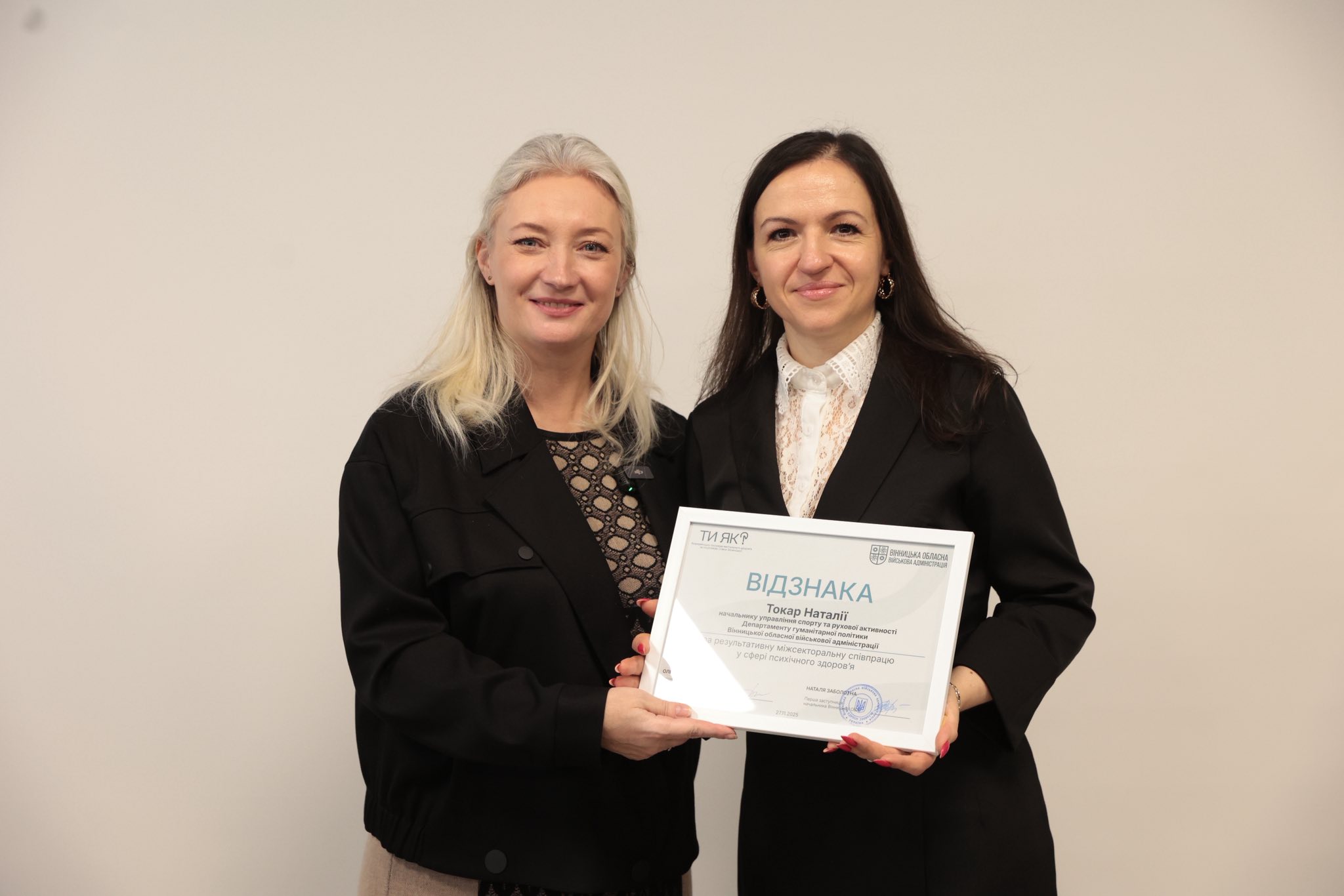 Під час зустрічі Наталя Заболотна вручила відзнаки «Сила вдячності» Координаційного центру з психічного здоров’я при Кабінеті Міністрів України та обласні відзнаки тим, хто щодня робить програму «Ти як?» живою і дієвою.