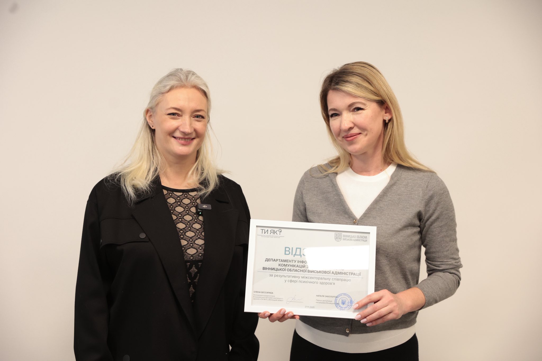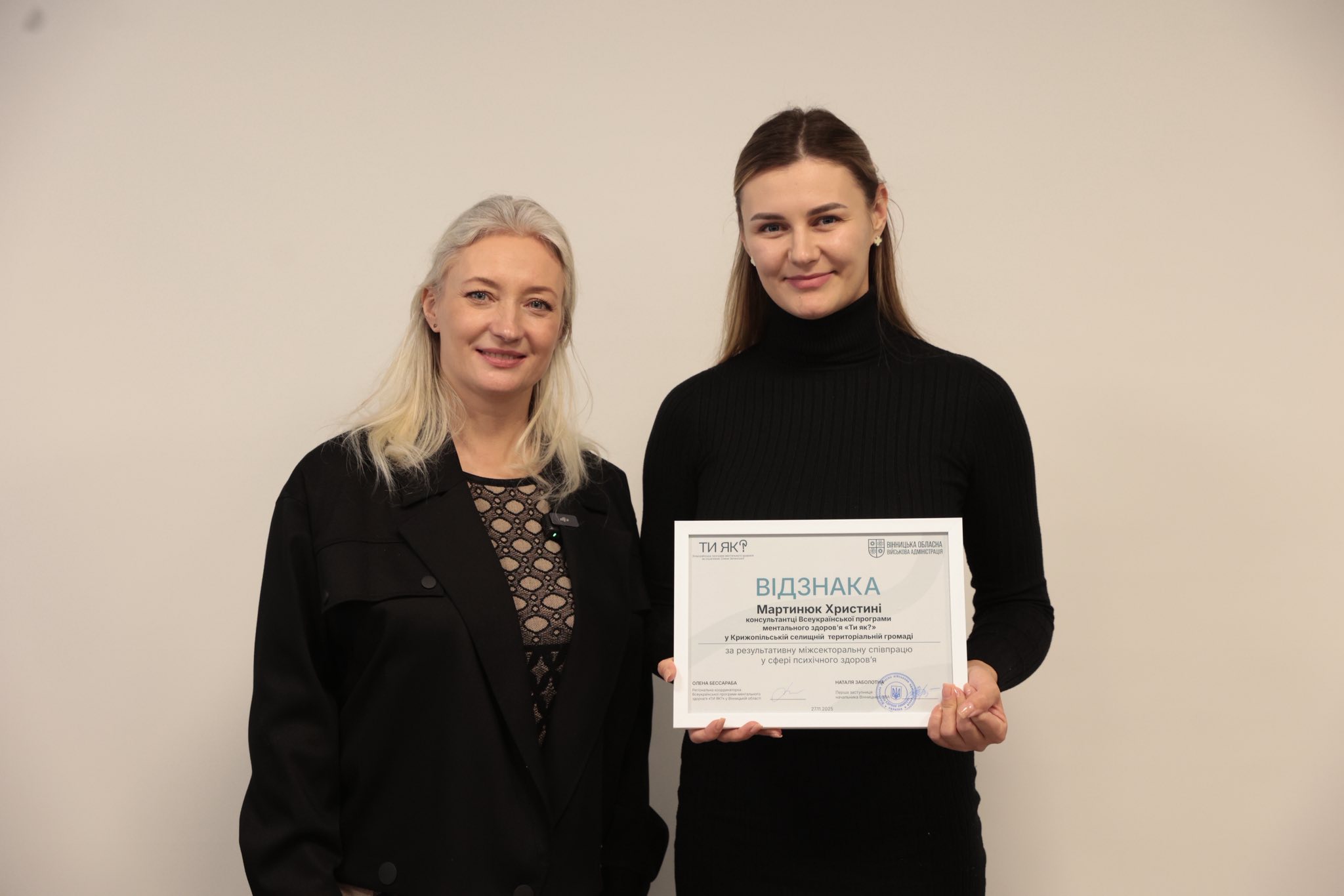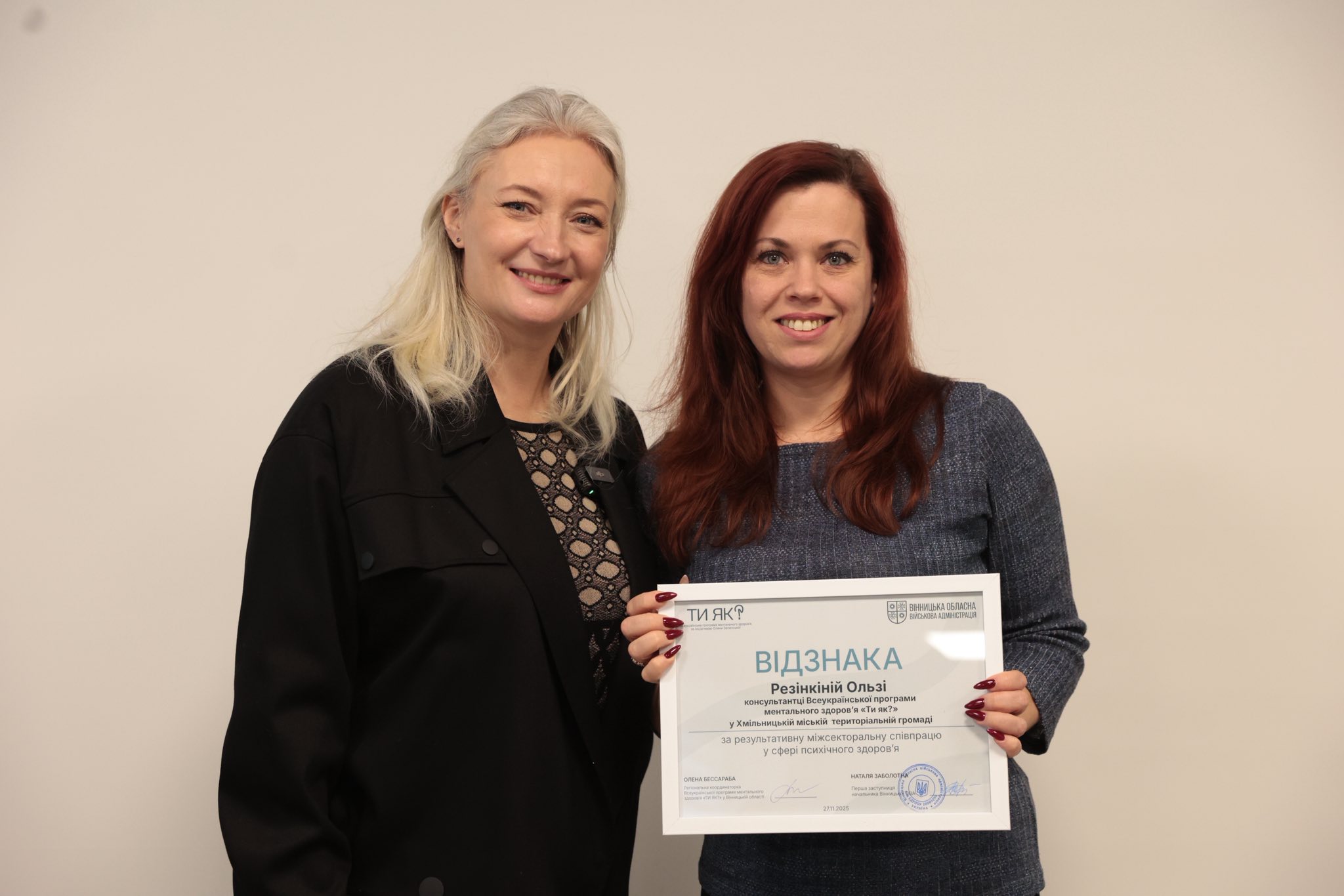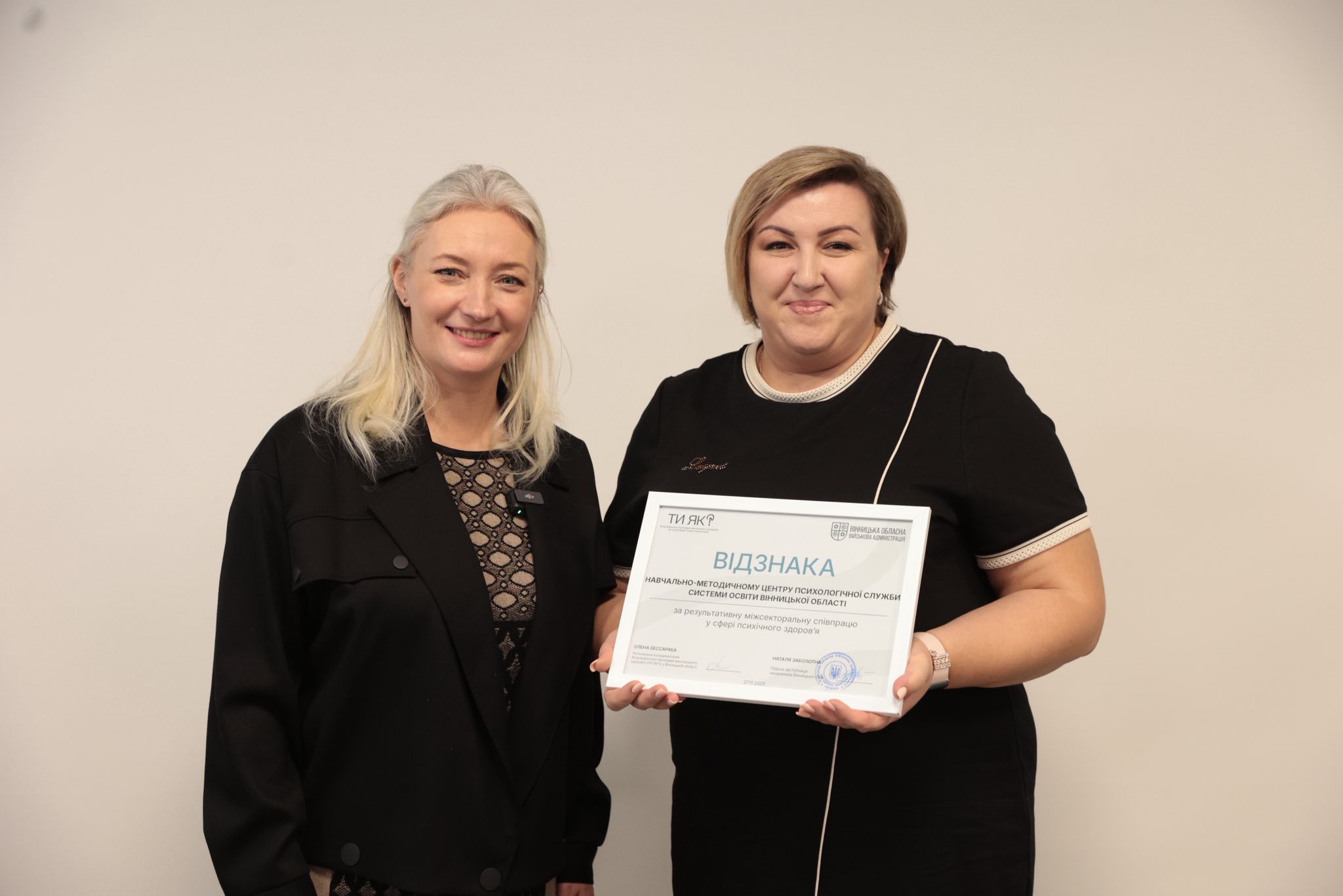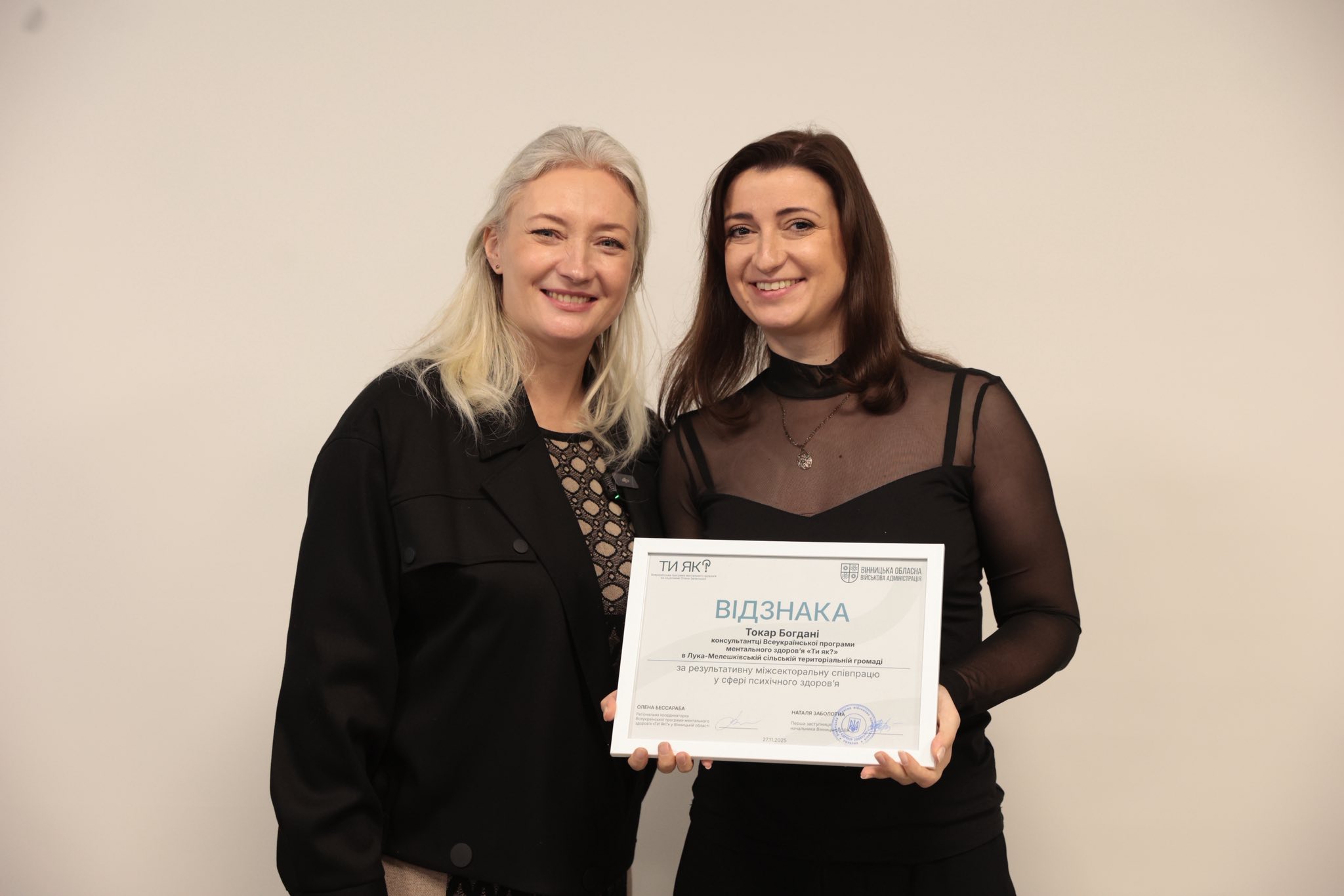 Під час зустрічі Наталя Заболотна вручила відзнаки «Сила вдячності» Координаційного центру з психічного здоров’я при Кабінеті Міністрів України та обласні відзнаки тим, хто щодня робить програму «Ти як?» живою і дієвою.