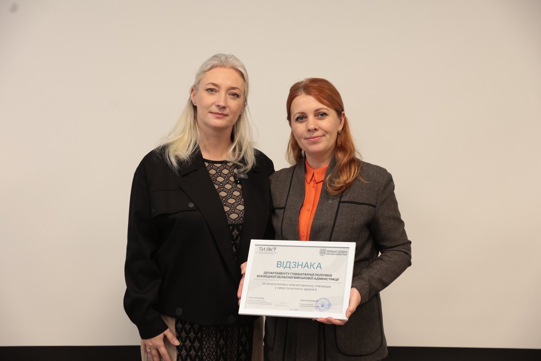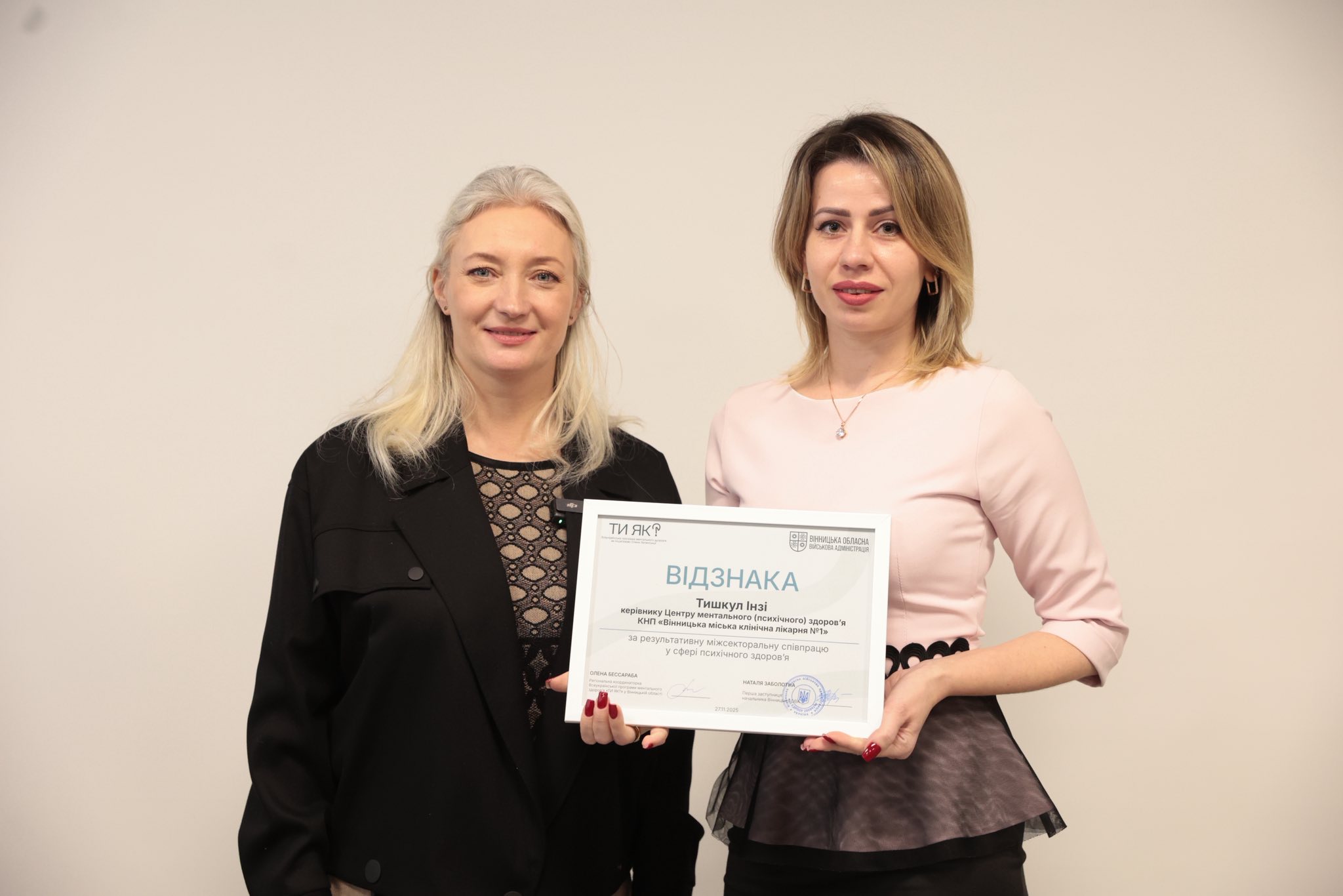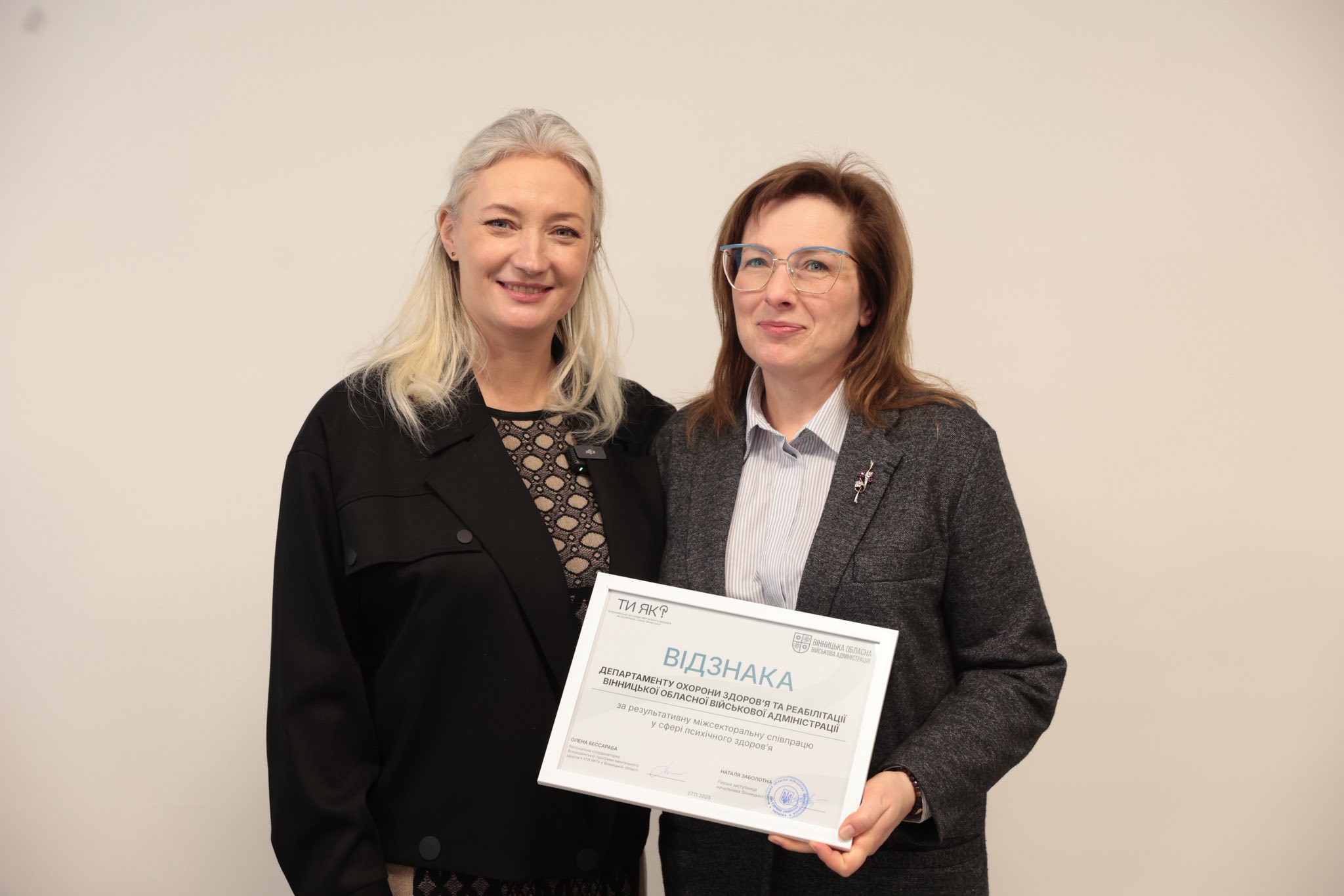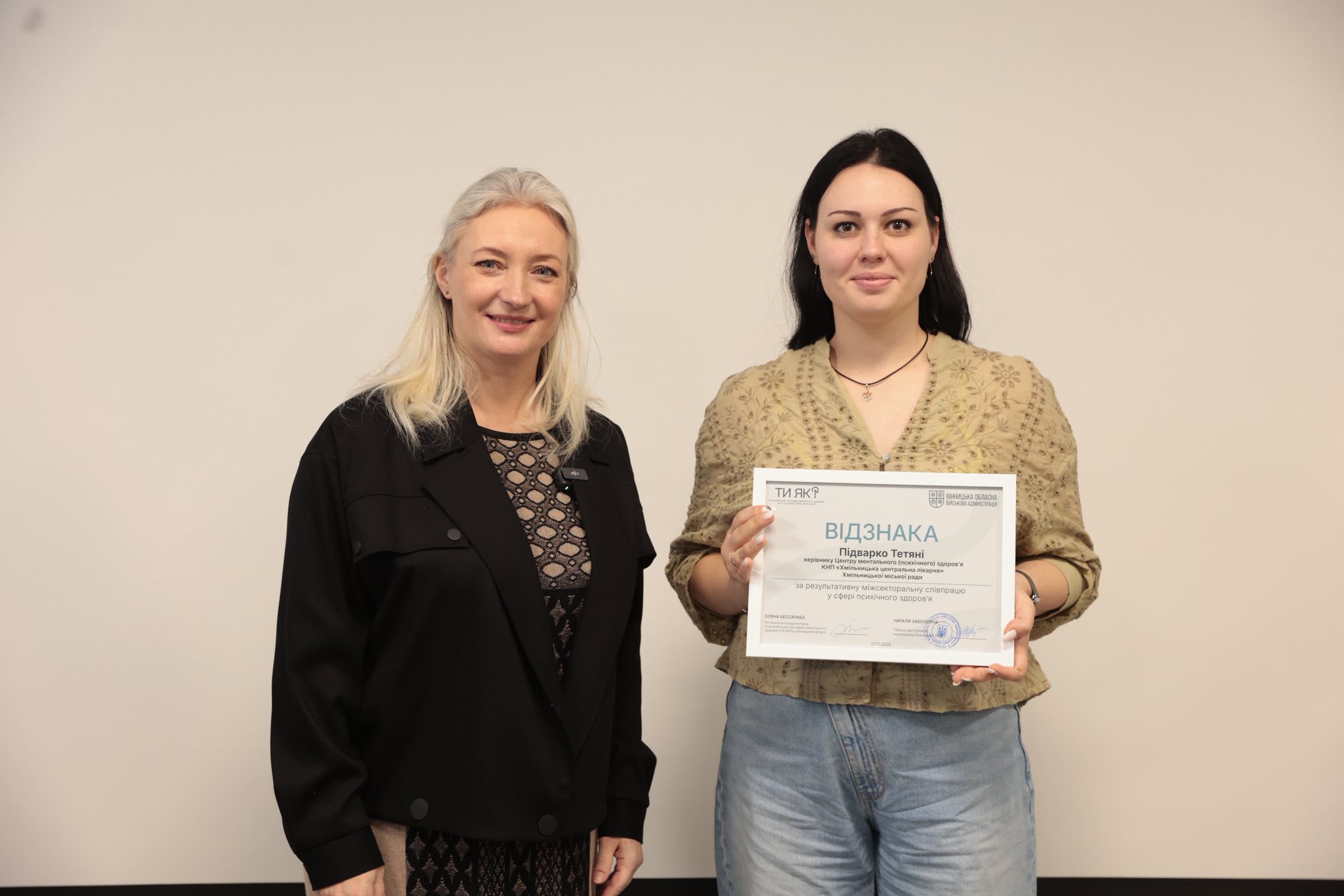 Під час зустрічі Наталя Заболотна вручила відзнаки «Сила вдячності» Координаційного центру з психічного здоров’я при Кабінеті Міністрів України та обласні відзнаки тим, хто щодня робить програму «Ти як?» живою і дієвою.