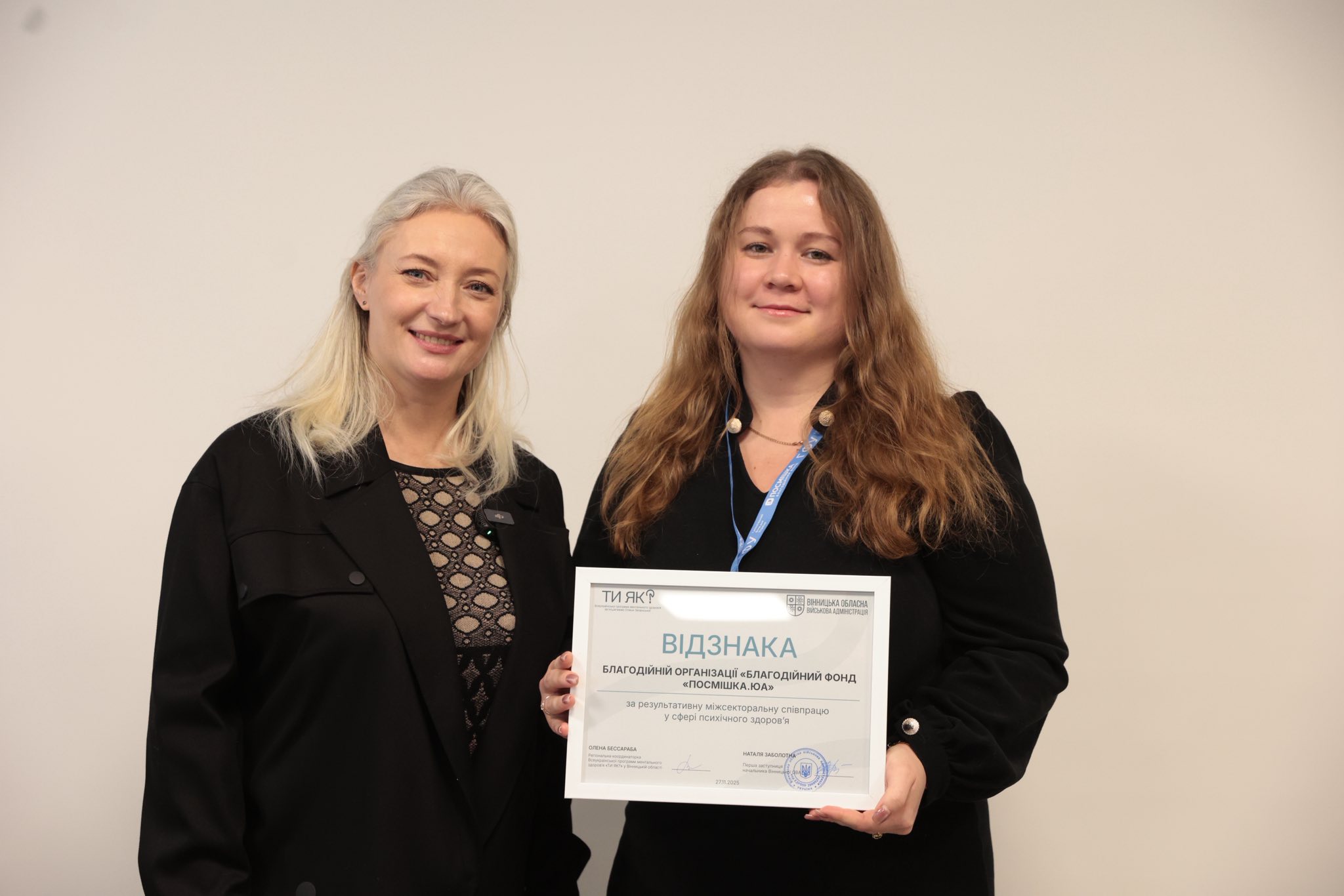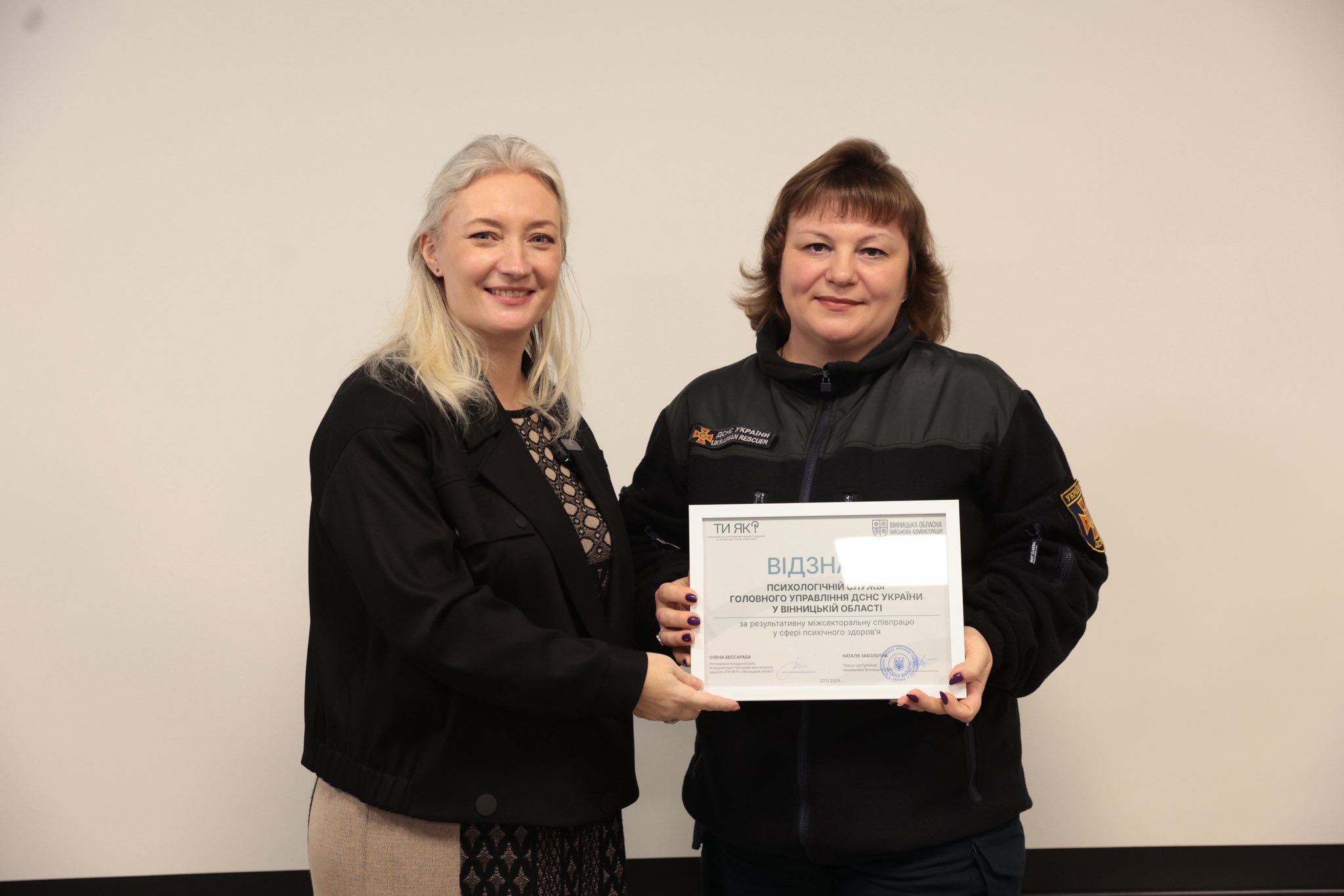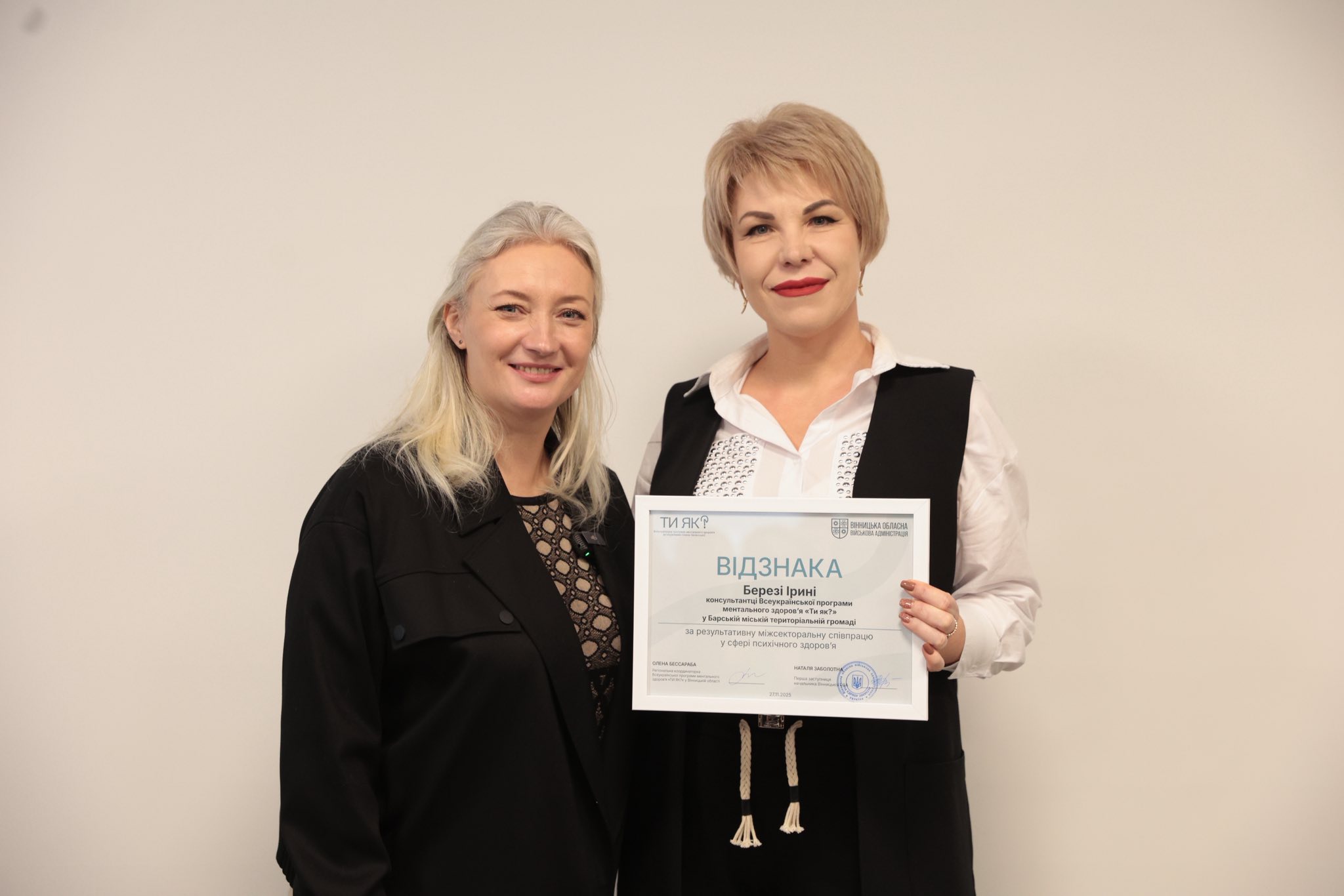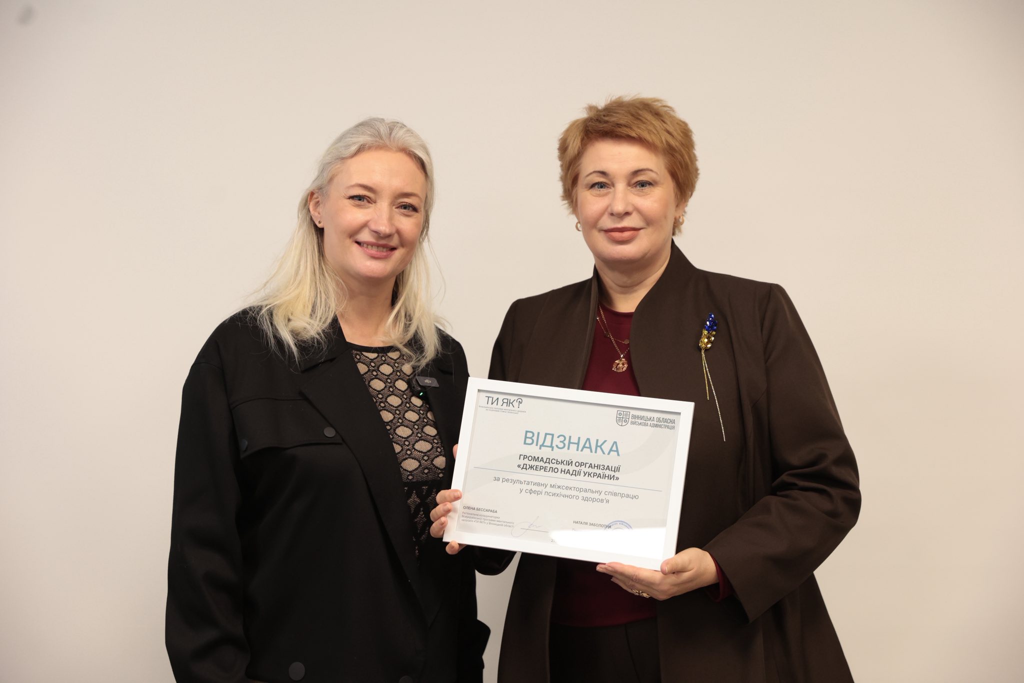 Під час зустрічі Наталя Заболотна вручила відзнаки «Сила вдячності» Координаційного центру з психічного здоров’я при Кабінеті Міністрів України та обласні відзнаки тим, хто щодня робить програму «Ти як?» живою і дієвою.