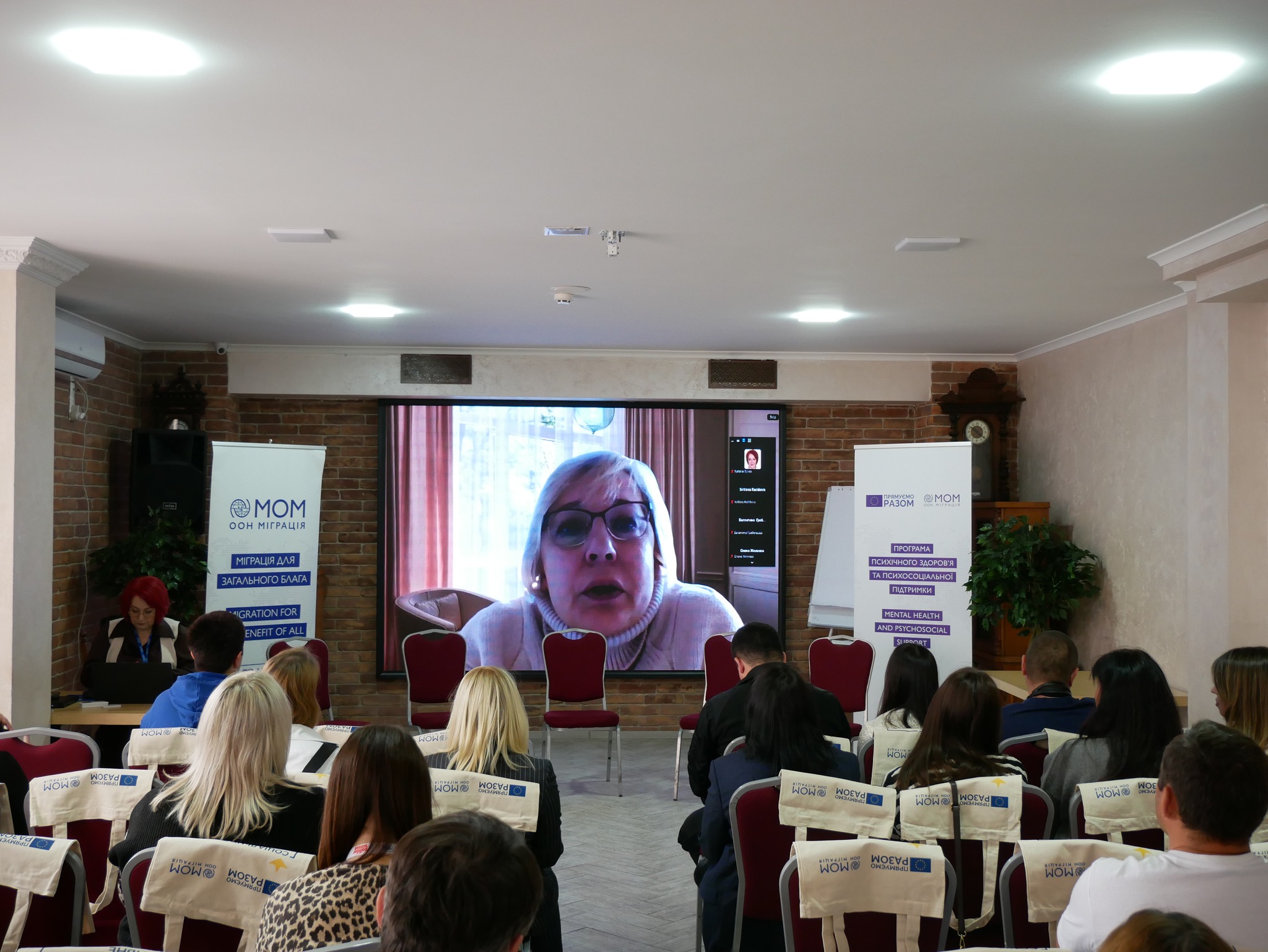 Захід організовано за підтримки представництва Міжнародної організації з міграції (МОМ) в Україні. Координаторка програм ПЗПСП МОМ Ірене М. Заддах наголосила на важливості тематики зустрічі, підкресливши, що сьогодні вкрай необхідно мінімізувати вплив негативних чинників і забезпечити комплексну підтримку ветеранів — як на інституційному, так і на людському рівнях.